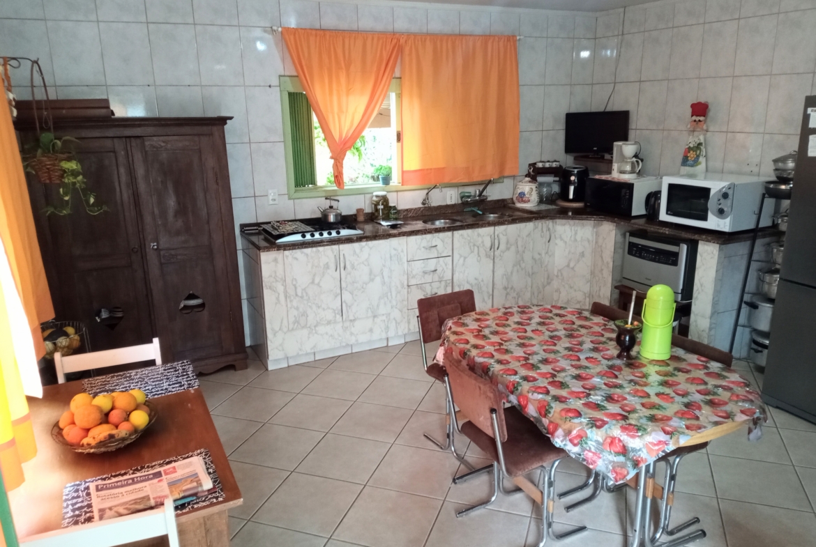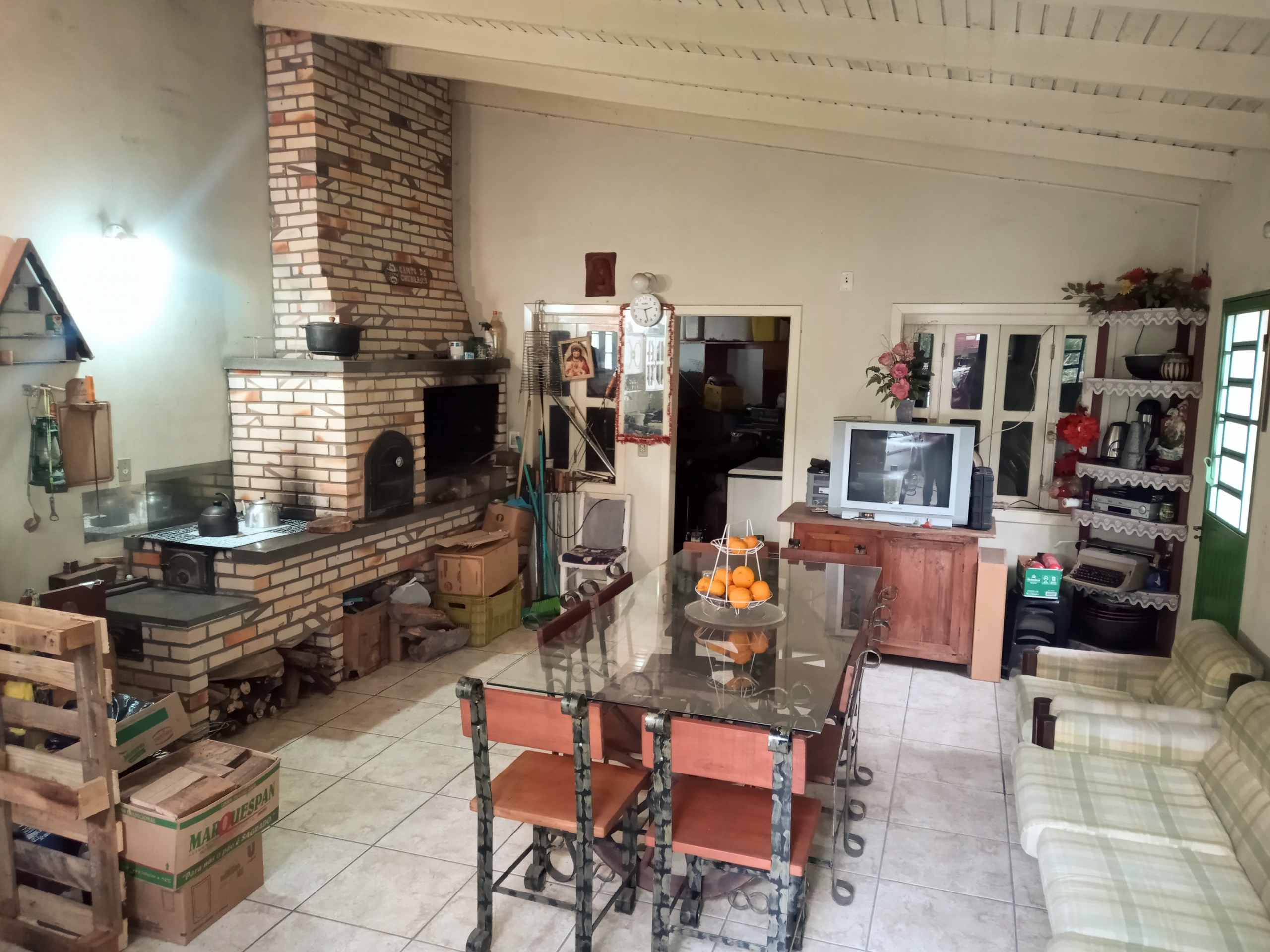 Quiosque rústico com churrasqueira, fogão campeiro e forno com termostato