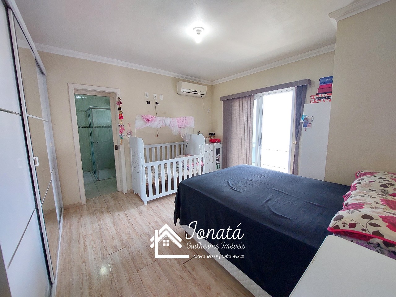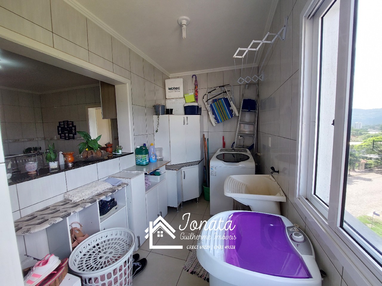 O apartamento é uma cobertura, com 200m², composto de 2 dormitórios, sendo um suíte, 1 banheiro social, sala e cozinha amplas. Sacadas em todos os dormitórios, inclusive na sala. Área de serviço, churrasqueira e um box de garagem coberto.