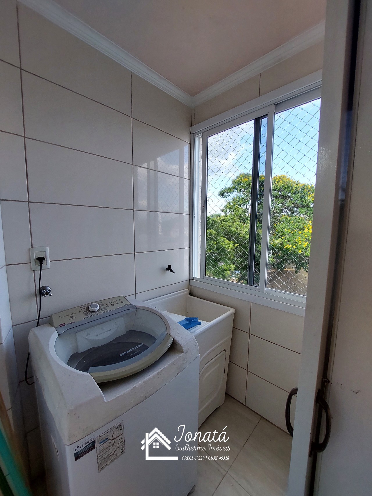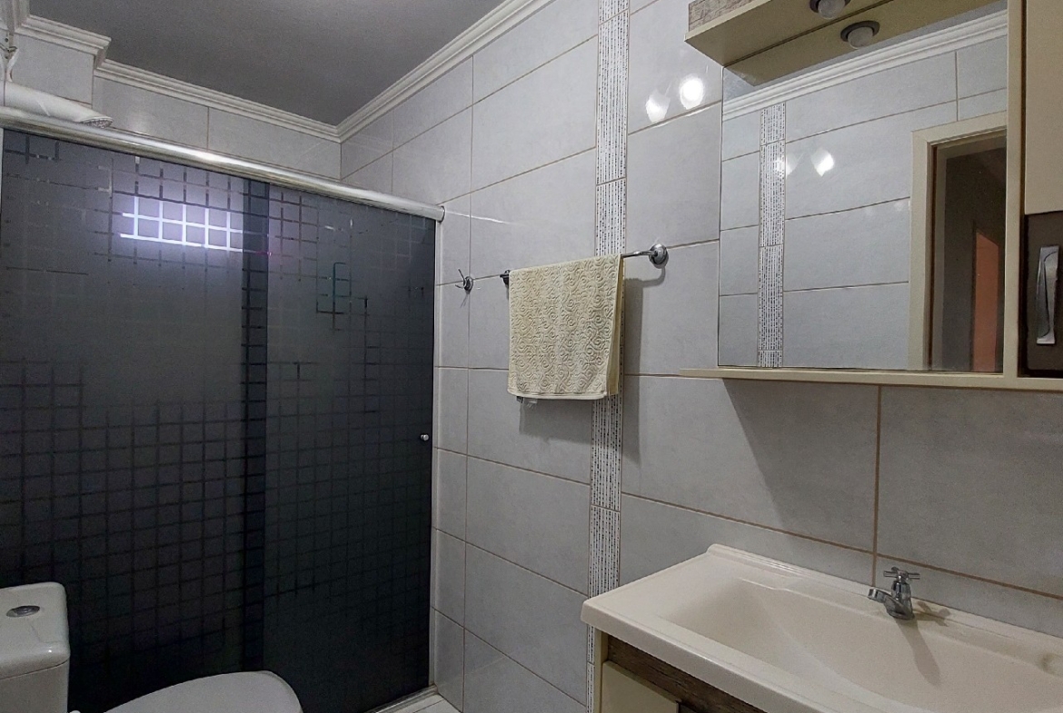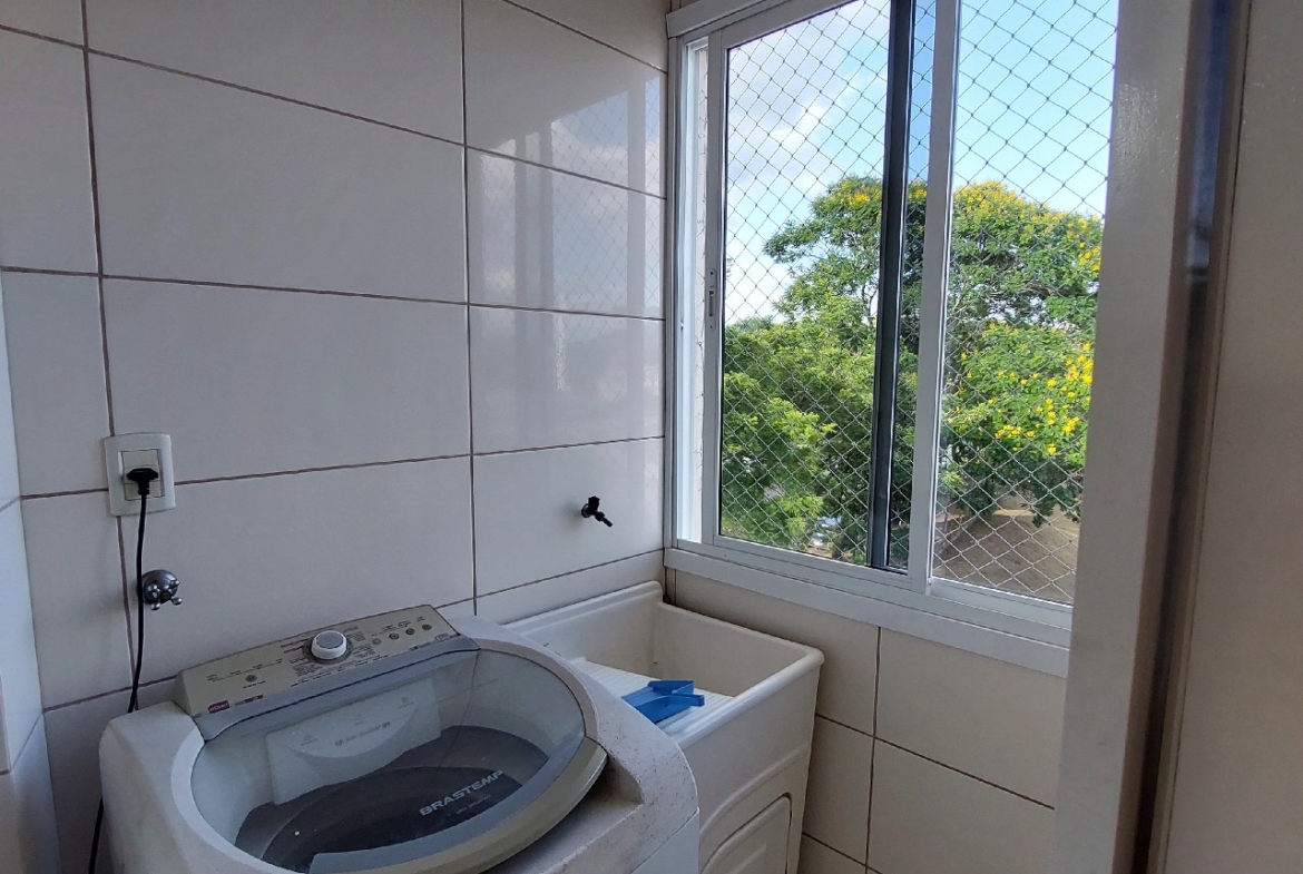 Possui 2 dormitórios, banheiro social, sala ampla e com sacada, cozinha ampla e área de serviço. Um box de garagem coberto.