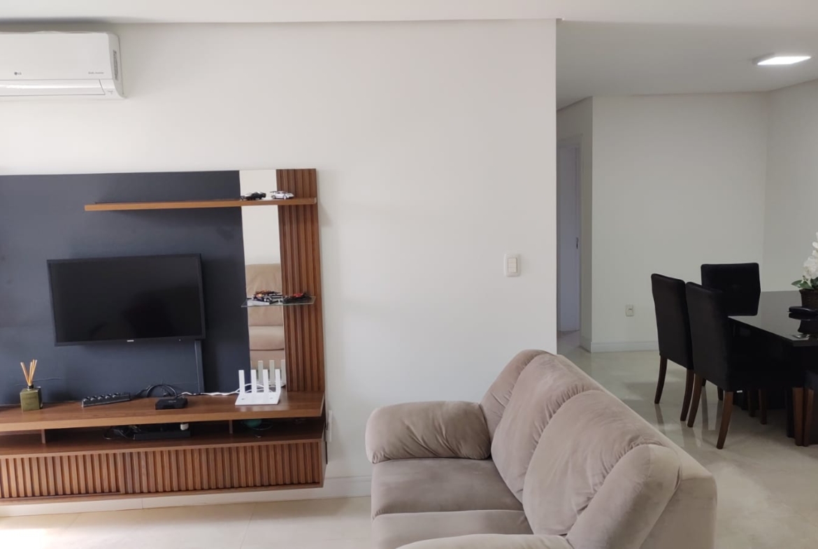 o apartamento tem 130,78m2 de área privativa e 169,15m2 de área total, é composto de= 3 dormitórios(uma suíte), sala de estar e jantar, cozinha, área de serviço, 2 sacadas(uma com churrasqueira) e uma vaga dupla de garagem.