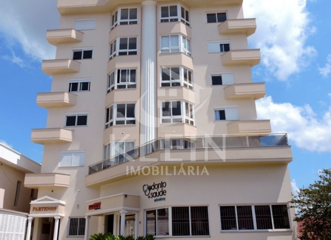 Apartamento semi mobiliado no edifício Partenon. Possui 2 dormitórios sendo 1 suíte, banheiro social, sala de estar, cozinha, área de serviço, churrasqueira e box de estacionamento. Prédio conta com elevador, salão de festas e uma ótima localização, à 50m da praça principal