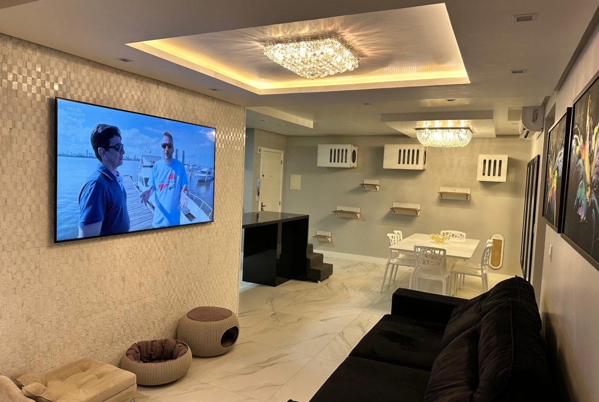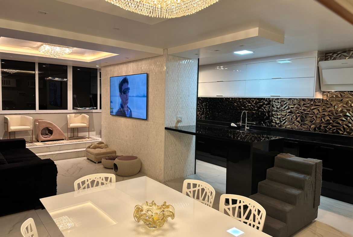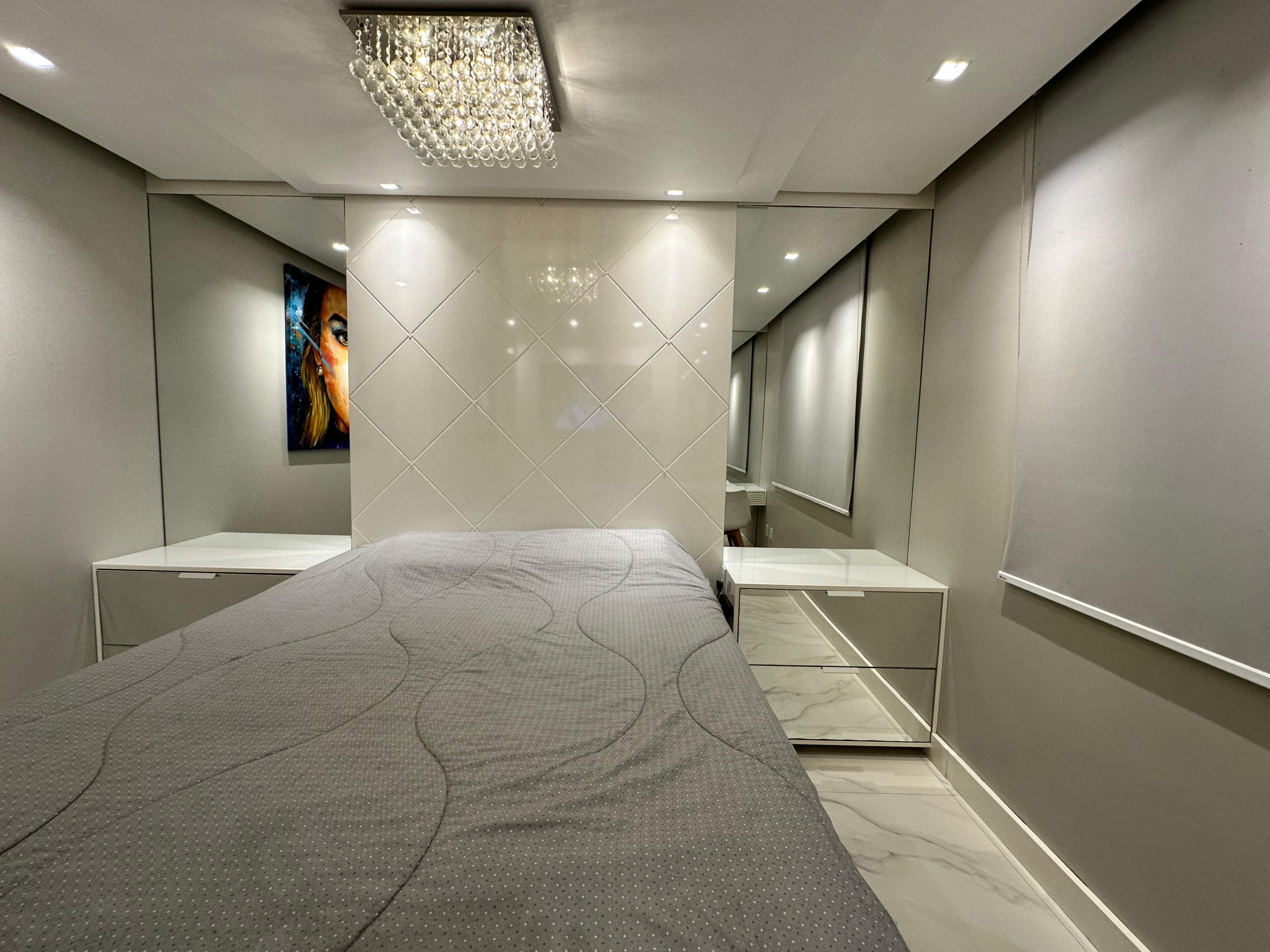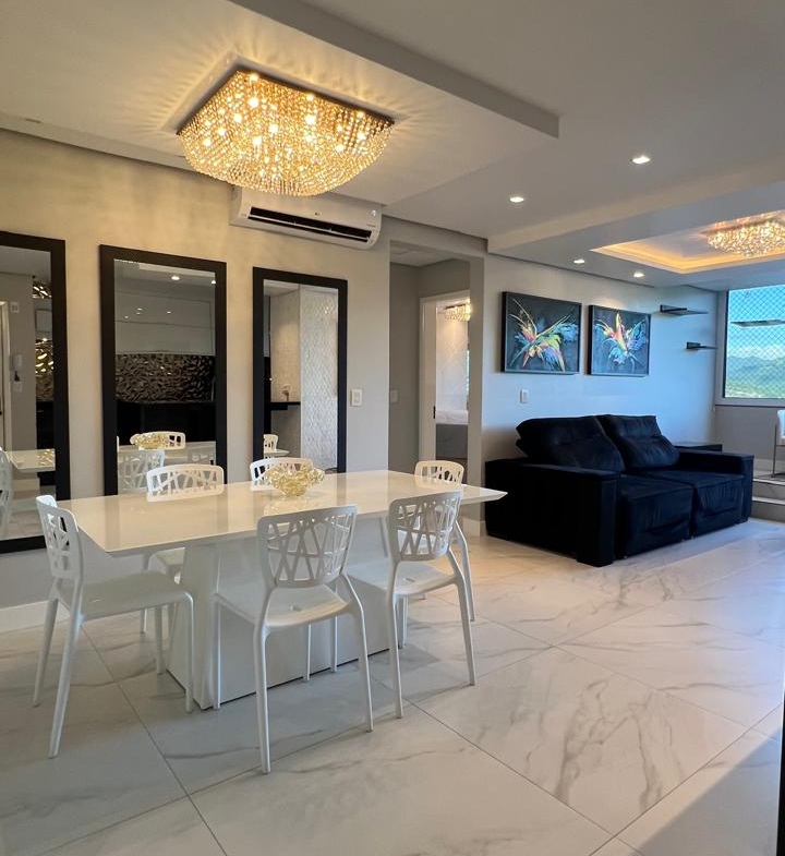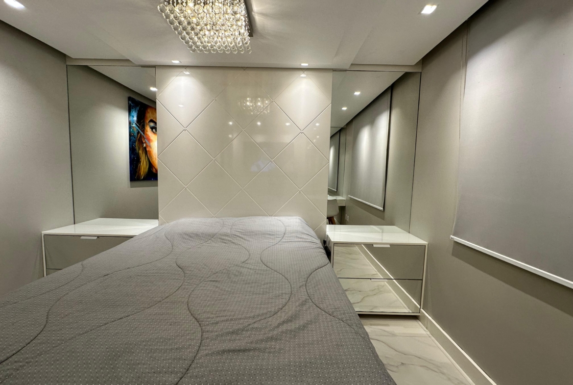 Impecável apartamento no Vale Real com fino acabamento no Bairro Morro Paris. Apartamento com 2 vagas de garagem. Possui ampla área de viver com sala e cozinha conjugada, ambientes mobiliados, planejados e lindamente decorados, ficam móveis sob medida em todos os ambientes, possui também revestimento em porcelanato como parede da sala, parte da cozinha, na churrasqueira e no banheiro. Todo em piso porcelanato, gesso e distribuição luminotécnica em todo o apartamento. São 2 dormitórios e banheiro social, um dos dormitórios foi transformado para um closet. Fica também eletro (solicite mais informações). A vista do apartamento é de tirar o folego.