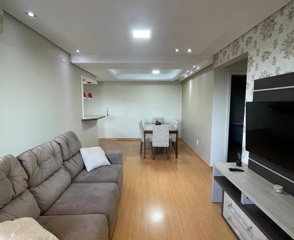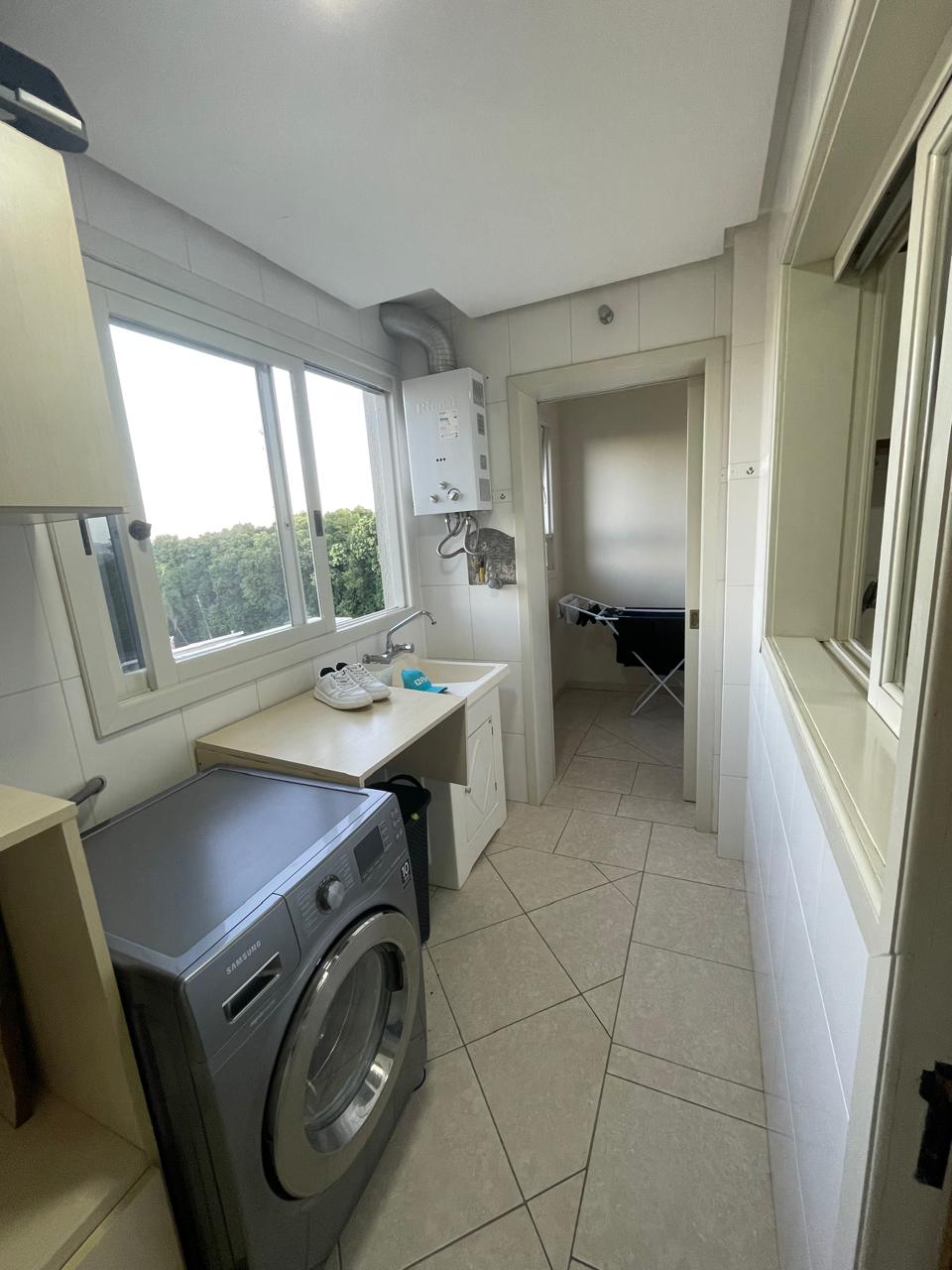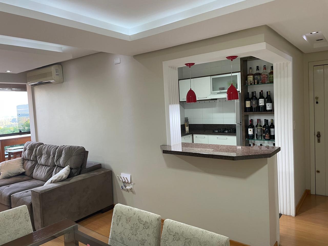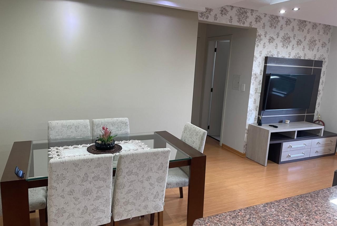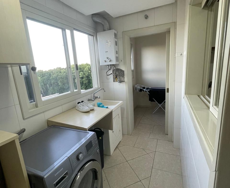 Imóvel com dois dormitórios com armários planejados e cama de casal no quarto principal , iluminação e papel de parede. Banheiro social mobiliado, agua quente através de gás central. Sala de estar e jantar integradas, com ar Split, mesas e cadeiras, sofá, móvel tipo adega aberta. A cozinha completa com móveis planejados e eletros. Lavanderia equipada com máquina de lavar/secar e móveis. Box de garagem incluso na venda.