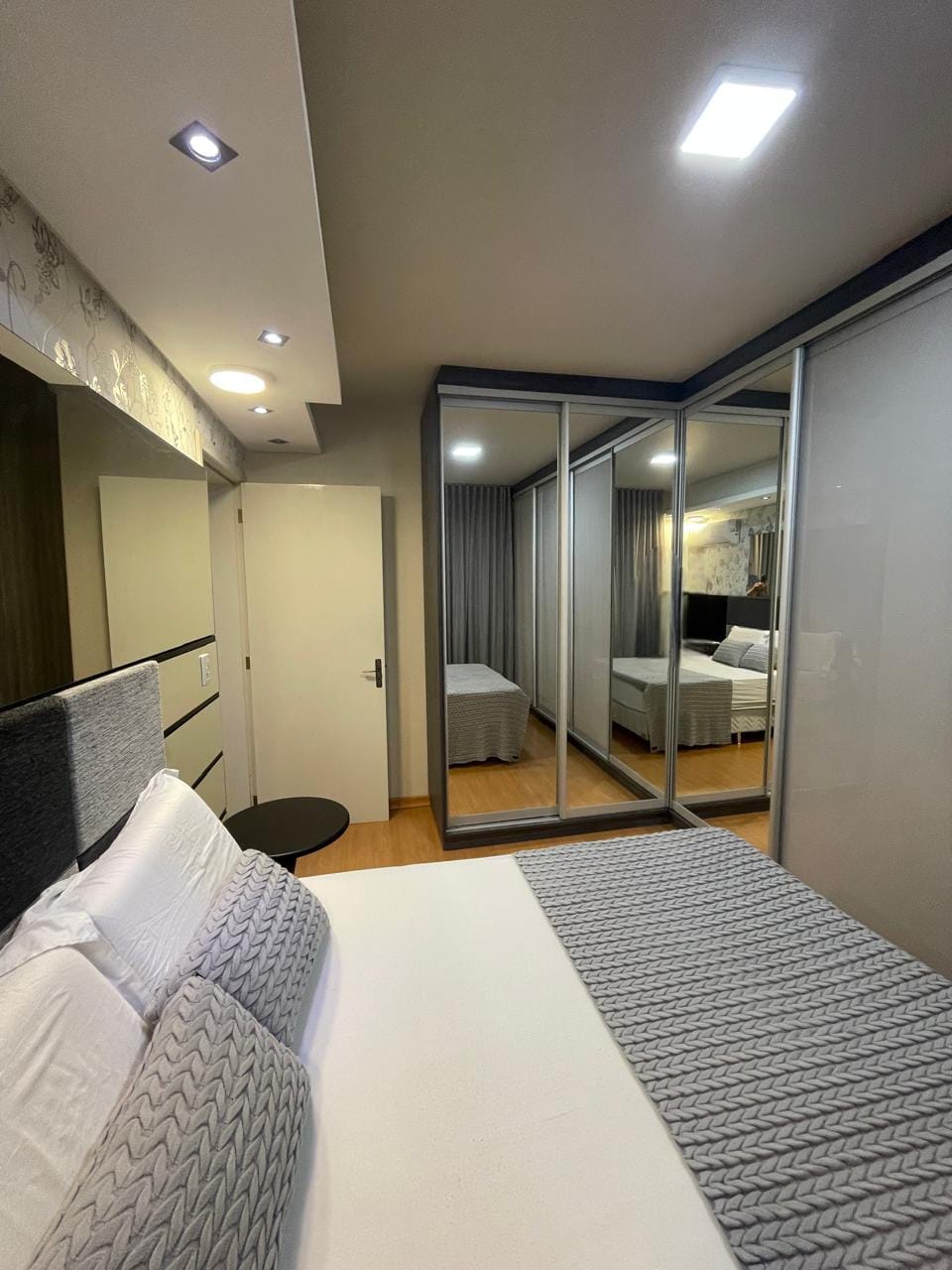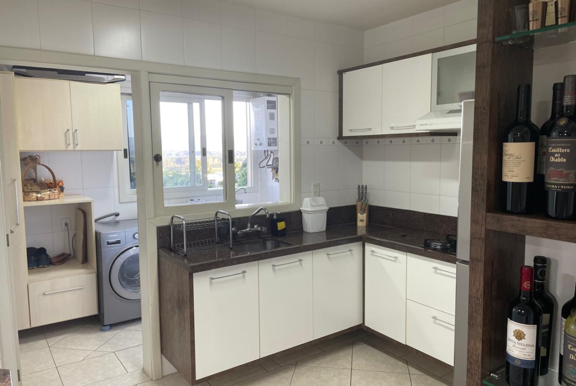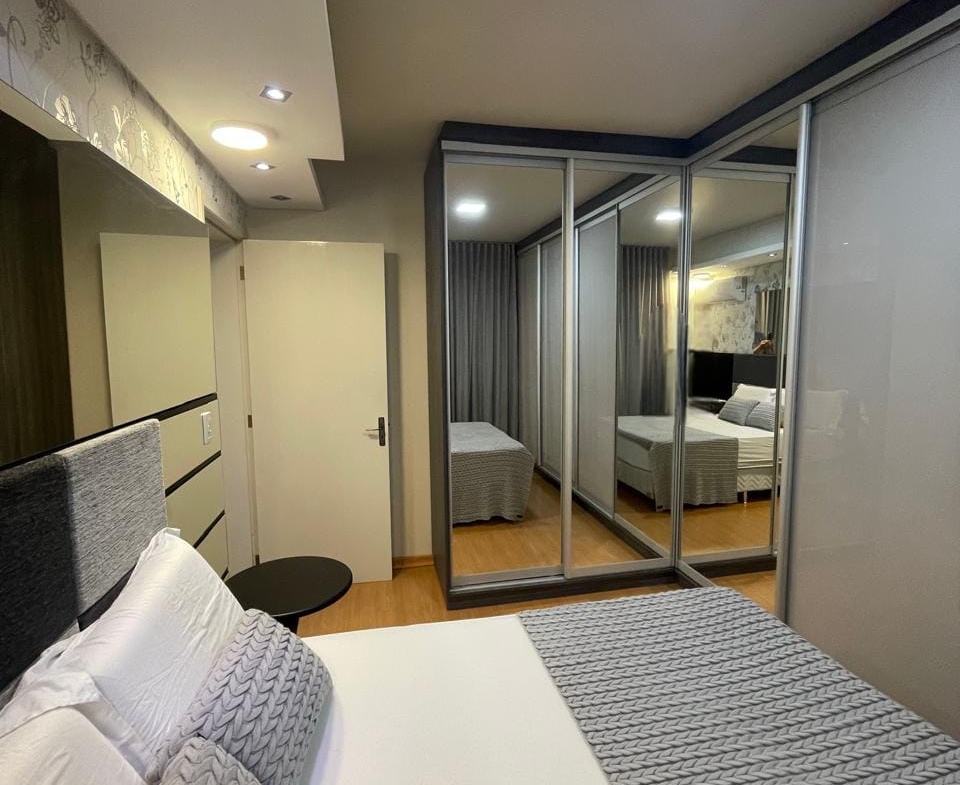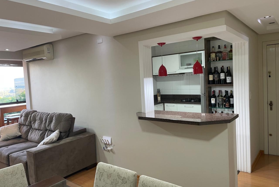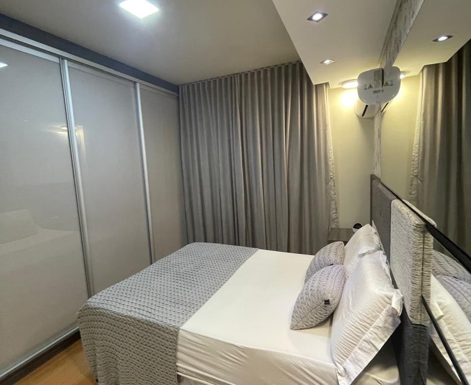 Imóvel com dois dormitórios com armários planejados e cama de casal no quarto principal , iluminação e papel de parede. Banheiro social mobiliado, agua quente através de gás central. Sala de estar e jantar integradas, com ar Split, mesas e cadeiras, sofá, móvel tipo adega aberta. A cozinha completa com móveis planejados e eletros. Lavanderia equipada com máquina de lavar/secar e móveis. Box de garagem incluso na venda.