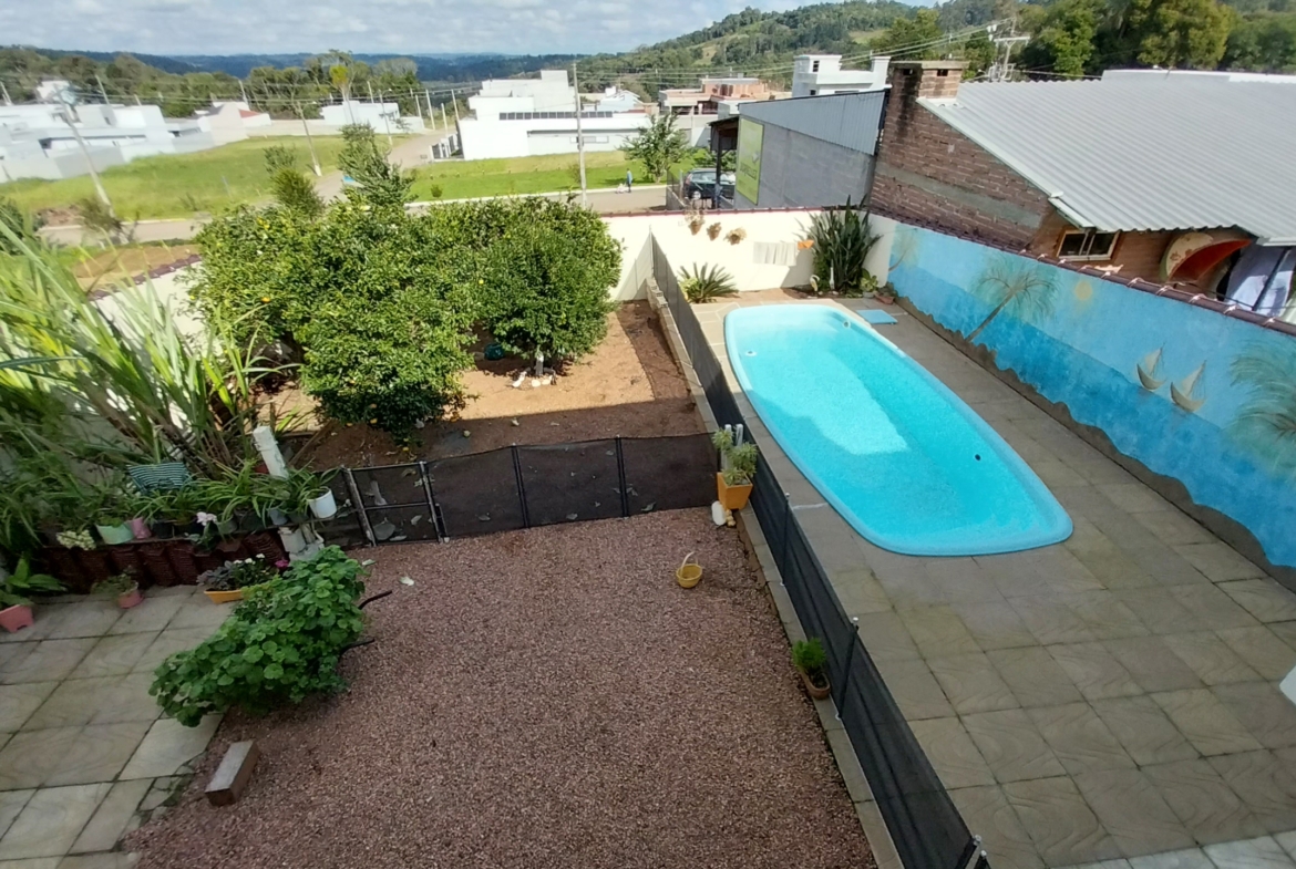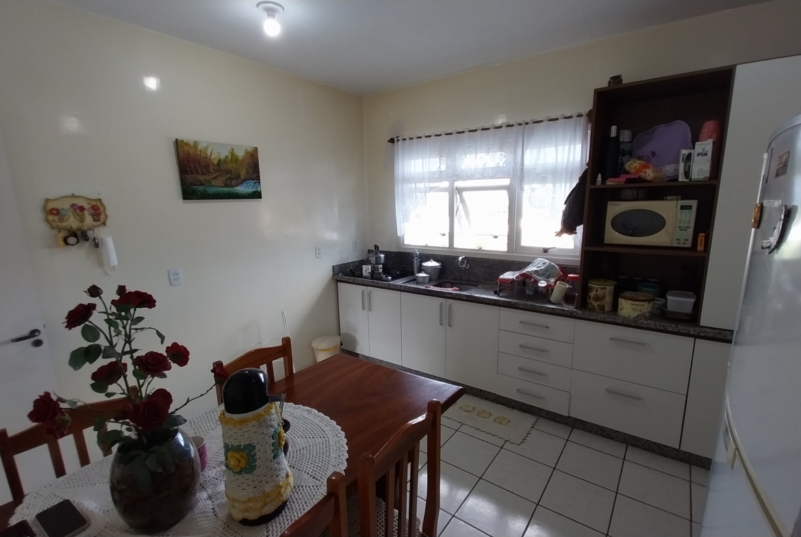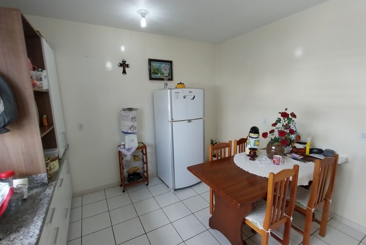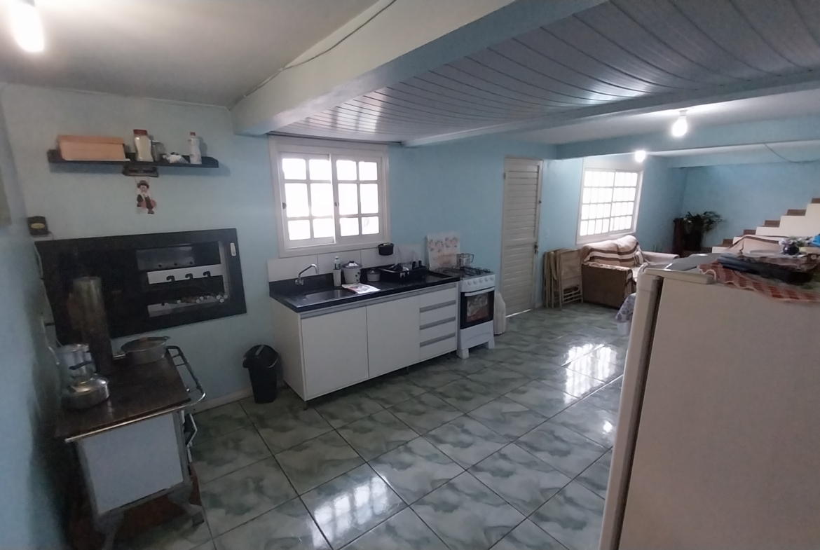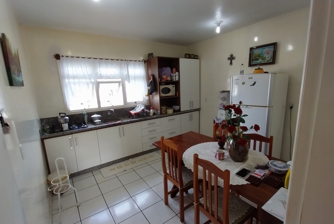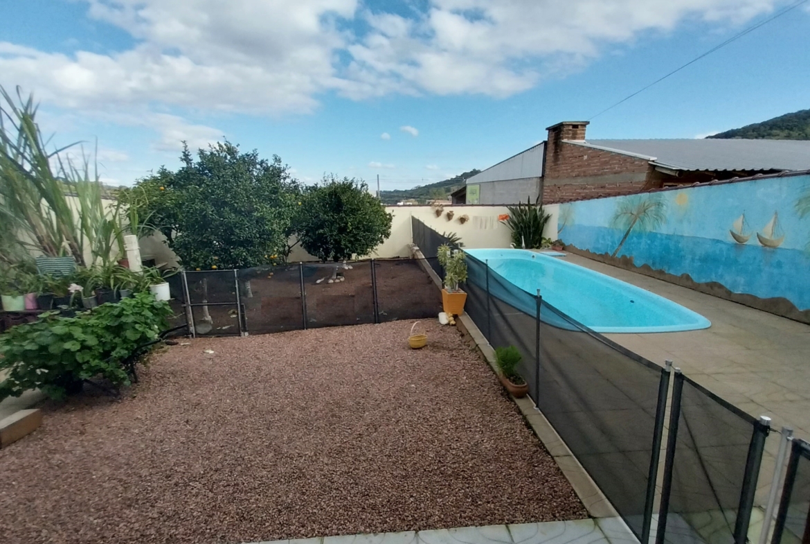 Imóvel em alvenaria com aprox. 174,00m². Possui 3 dormitórios, 2 banheiros, sala de estar, sala de jantar, cozinha, área de serviço, garagem e churrasqueira. Terreno possui 360,00m² com pátio fechado.