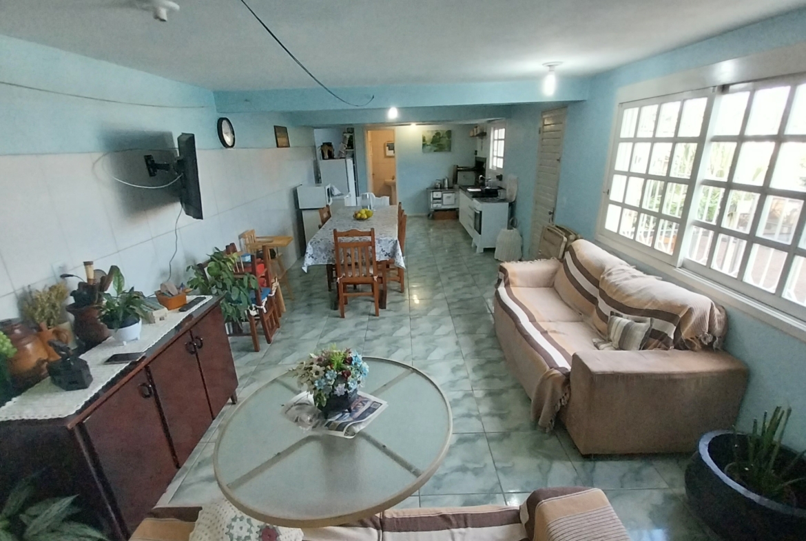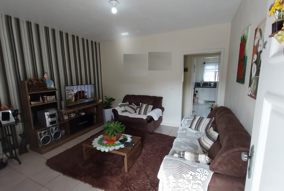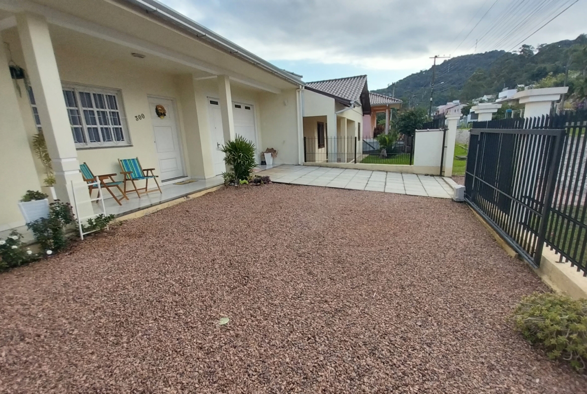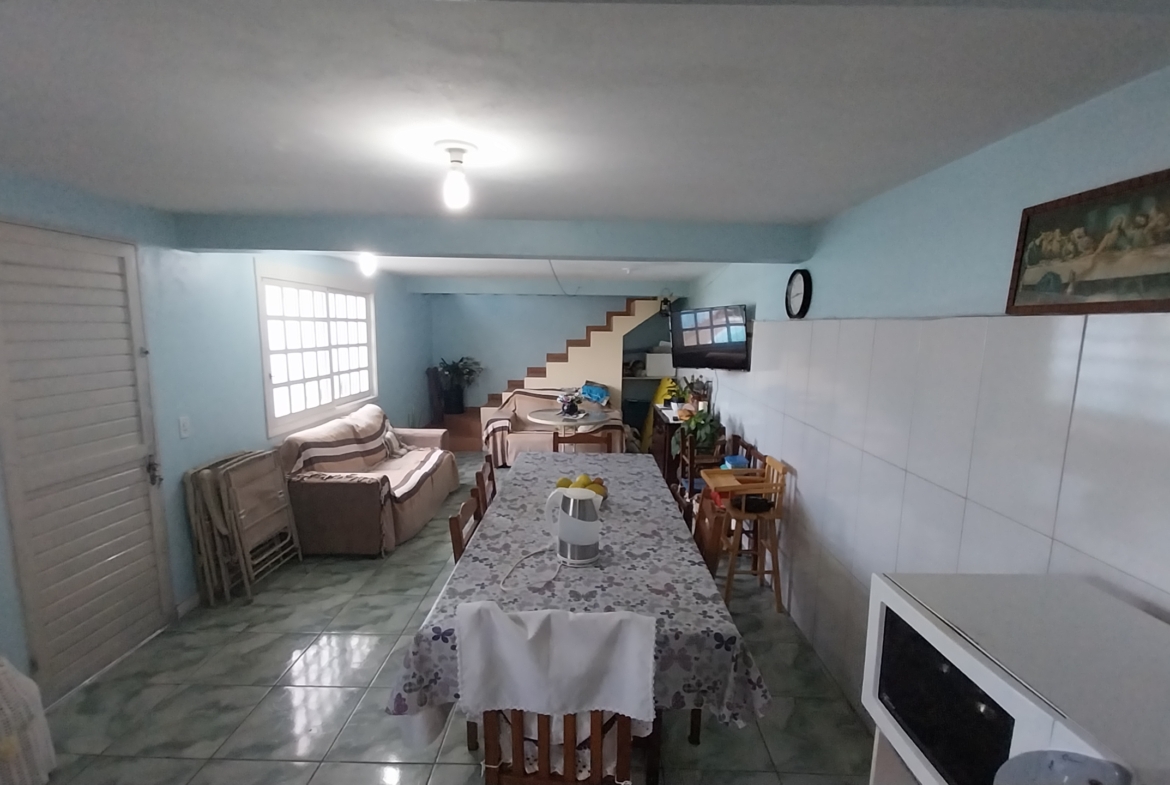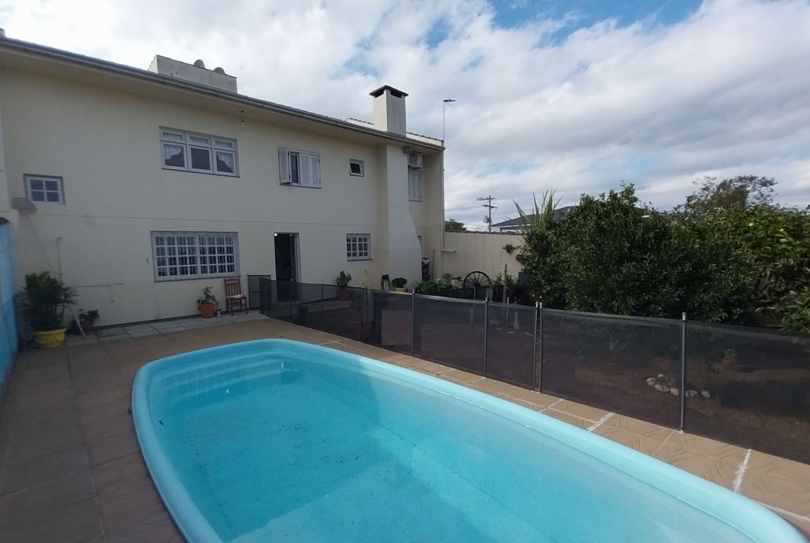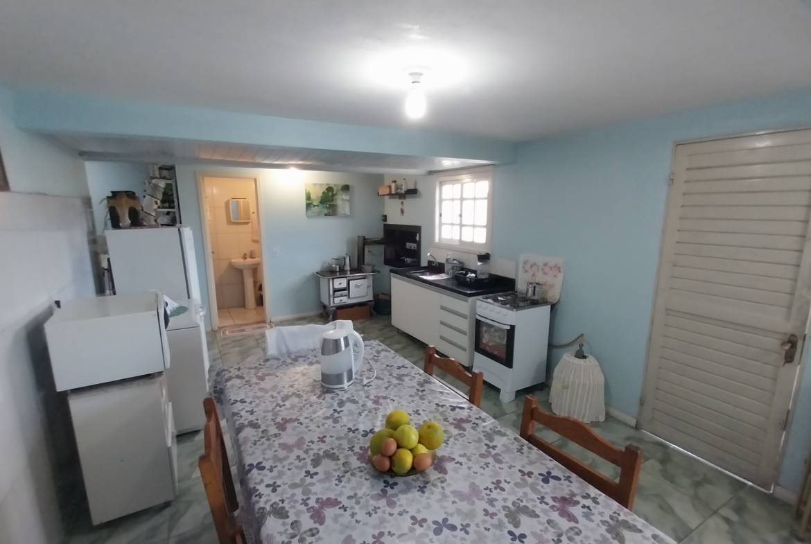 Imóvel em alvenaria com aprox. 174,00m². Possui 3 dormitórios, 2 banheiros, sala de estar, sala de jantar, cozinha, área de serviço, garagem e churrasqueira. Terreno possui 360,00m² com pátio fechado.