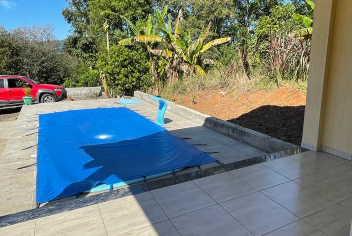 Casa linda na Feliz perto dos Pneus Ost, com 158,17m² de área construída e tem quiosque com piscina aquecida. É de frente para RS 452, no Bairro Bom Fim. Residência com sala de estar, varanda com linda vista, cozinha ampla, garagem com amplo espaço com churrasqueira, despensa, área de serviço. Possui 3 dormitórios, sendo um suíte, e banheiro social. Tem área de aproximadamente 1 hectare. Está dentro de área maior. Tem um pavilhão de aproximadamente 120m² com 5 m de altura.