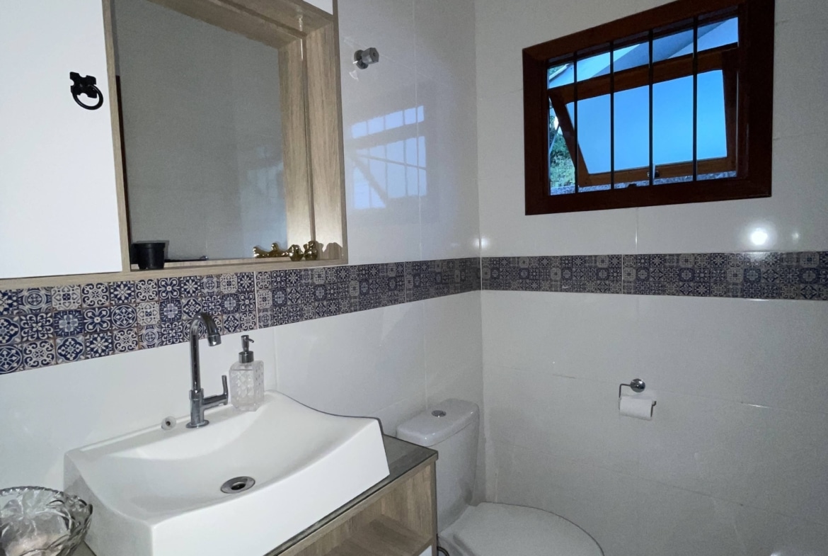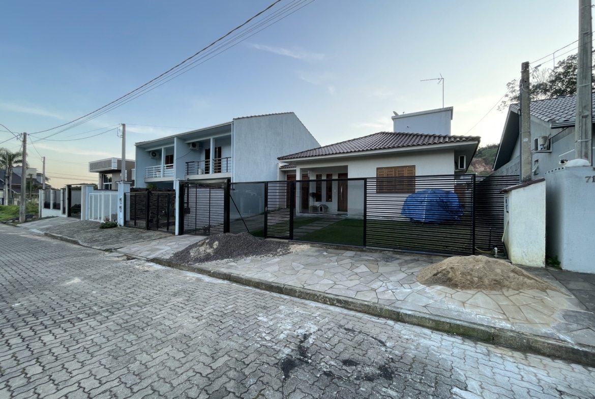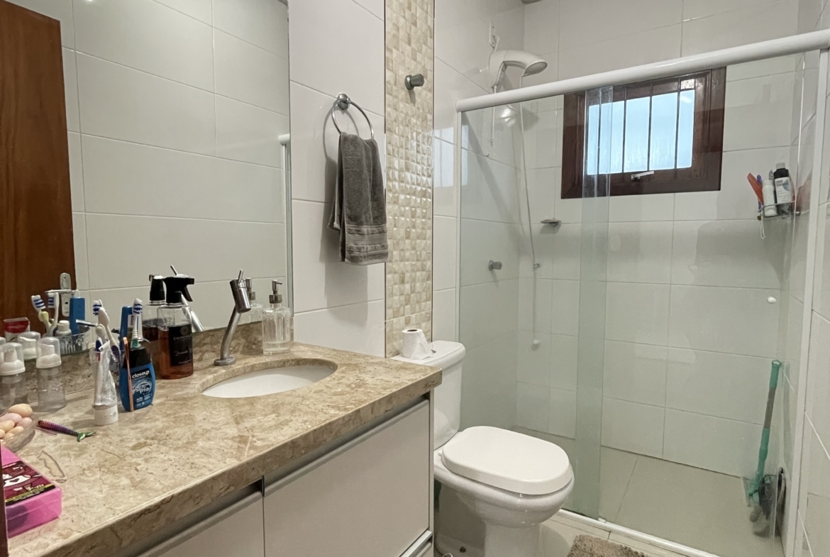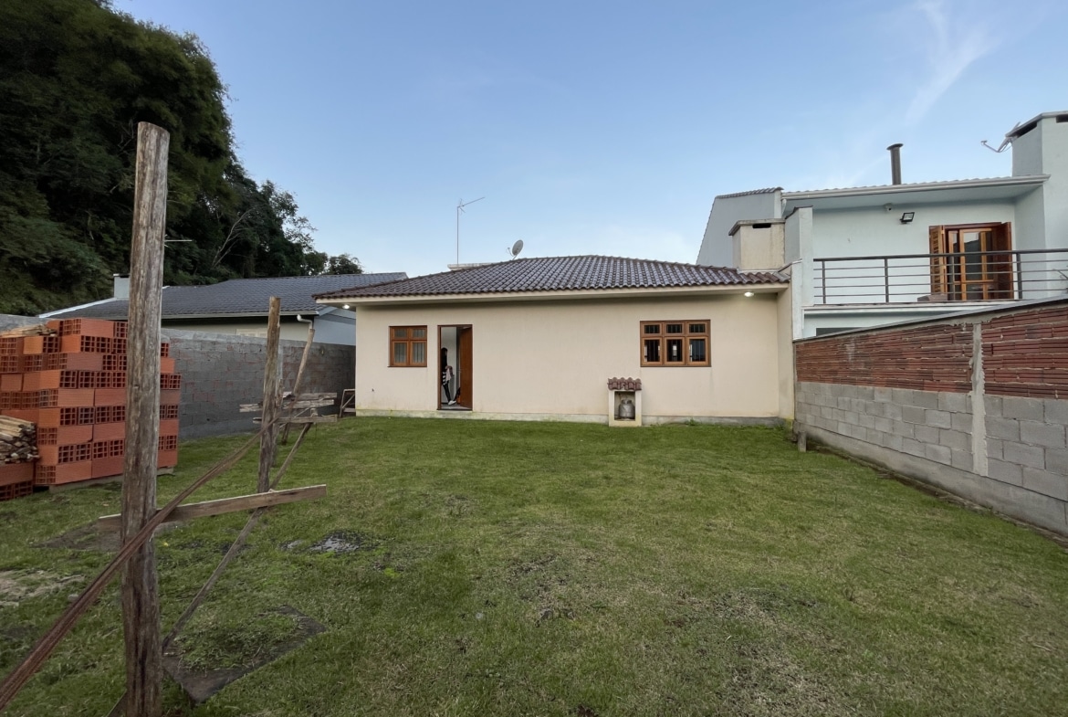 Casa completa à venda no bairro Santa Teresinha na cidade de Bom Princípio, conta com dois dormitórios, sala de estar, cozinha, lavabo, área de serviço, garagem com churrasqueira e fogão campeiro. Residência totalmente cercada e murada.