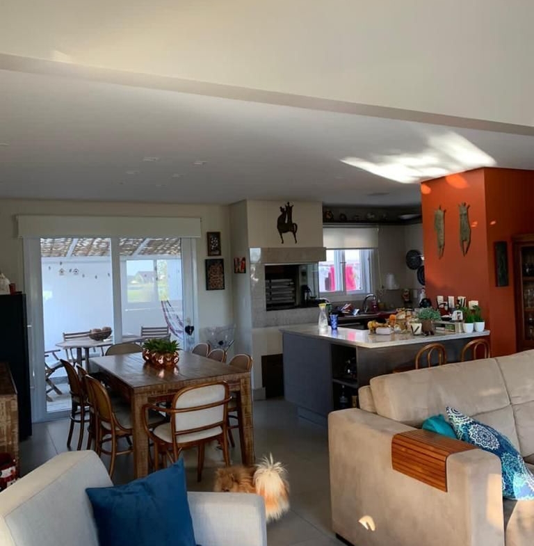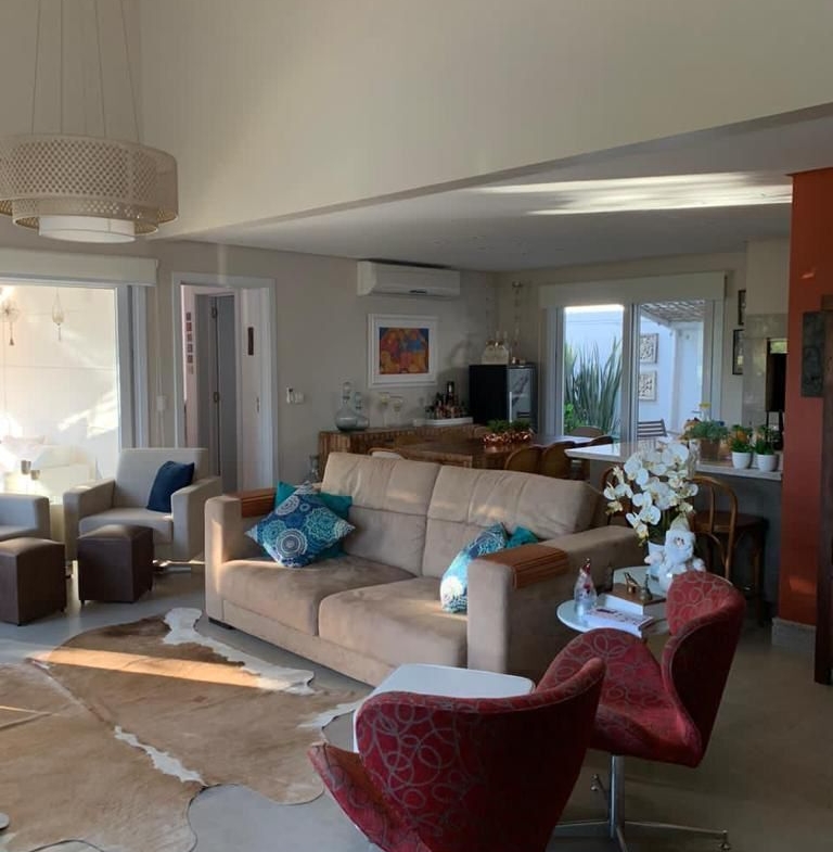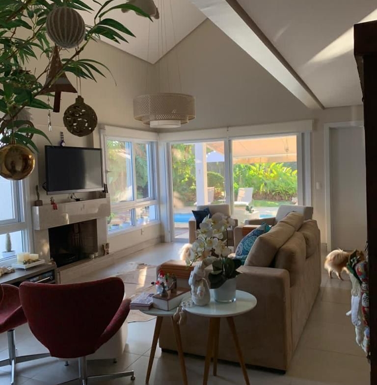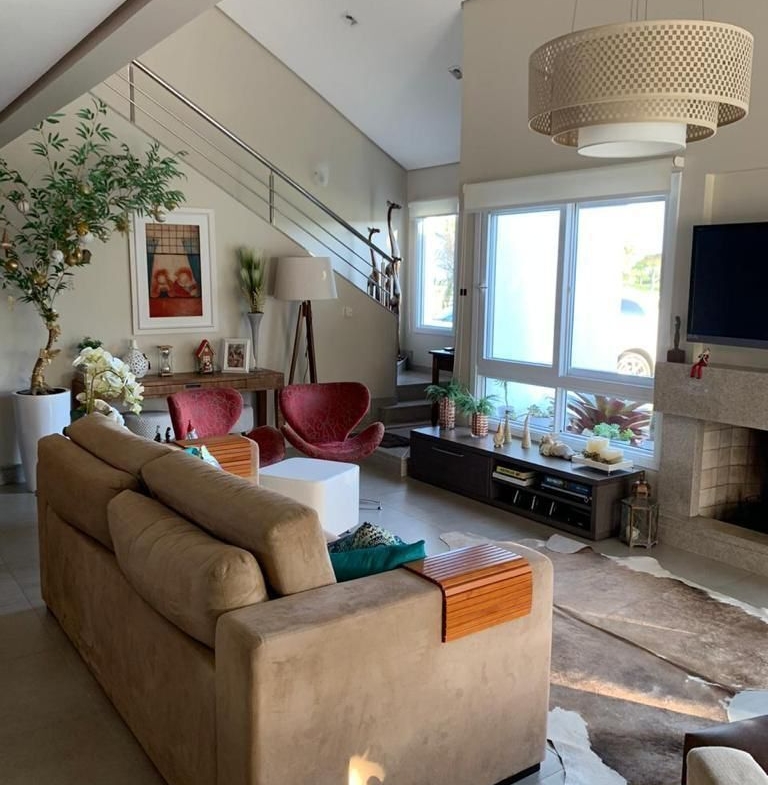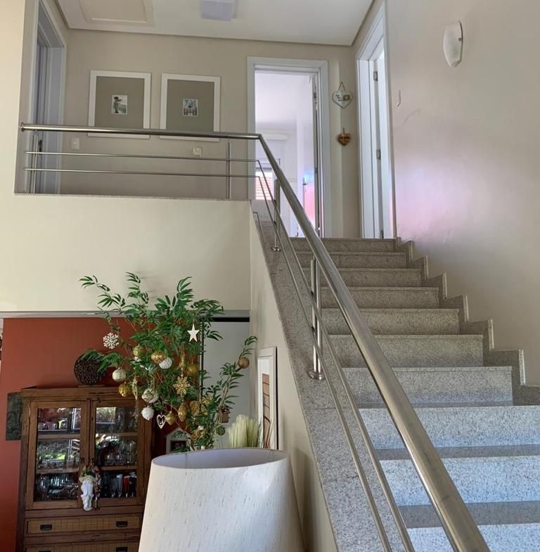 A casa possui 4 suítes, 1 lavabo, sala de estar, sala de jantar, cozinha, toda mobiliada, piso aquecido e ar condicionado em todos os ambientes, lareira, churrasqueira, (área integrada térreo), aquecimento na piscina, irrigação do pátio computadorizada, iluminação total do pátio arborizado, quadros elétricos individuais, proteção elétrica, garagem individual com porta e estacionamento, sistema de gás com dois bujões grandes, todas as portas e janelas com mosquiteiro.