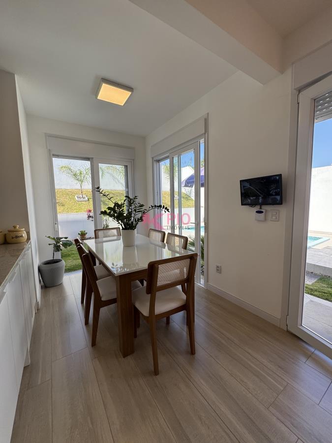 Apaixone-se por esta casa de alto padrão, situada em localização privilegiada e com ampla infraestrutura. Com 3 dormitórios, incluindo uma suíte espaçosa e um gabinete com acesso externo, além de ambientes integrados de sala de estar, jantar e cozinha mobiliada com churrasqueira integrada, ela oferece conforto e praticidade para sua rotina. O imóvel conta ainda com piscina de água salgada, sistema de alarme, câmeras digitais e aquecimento de água, garantindo segurança e bem-estar para toda a família.