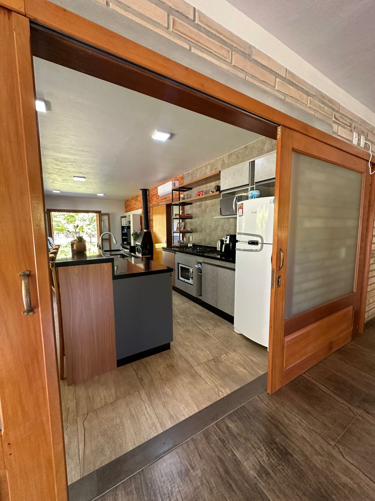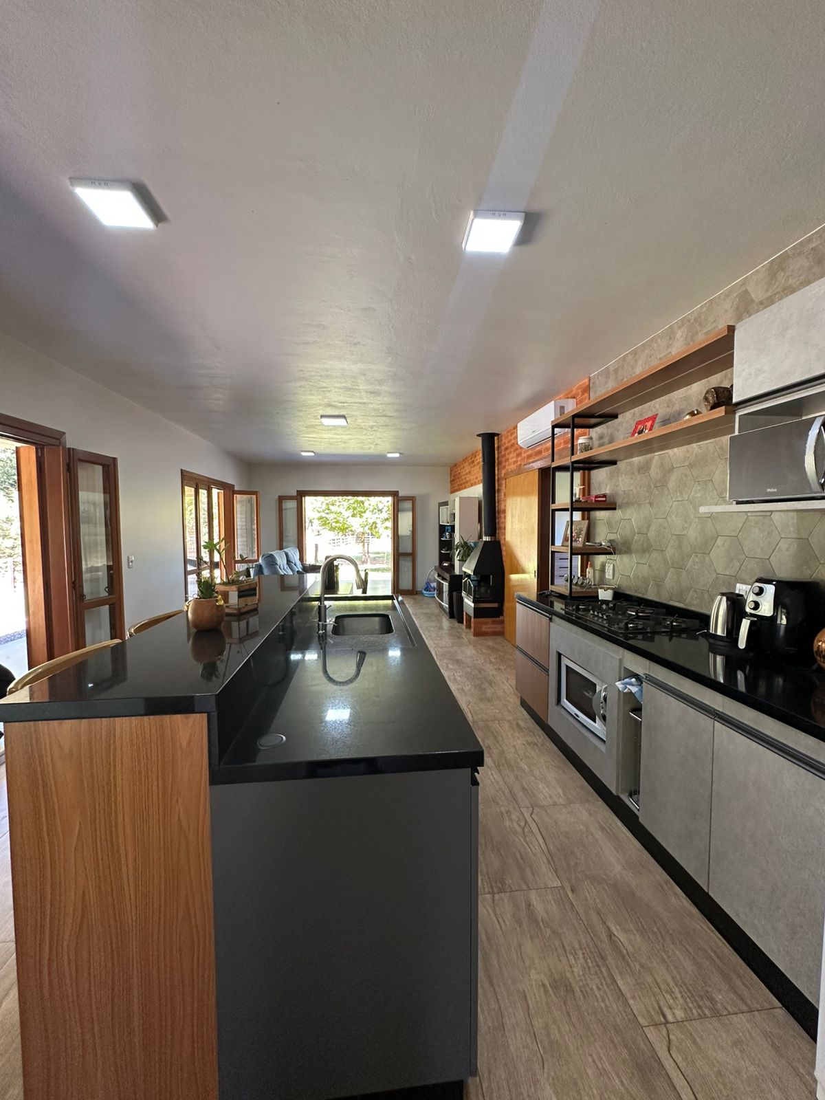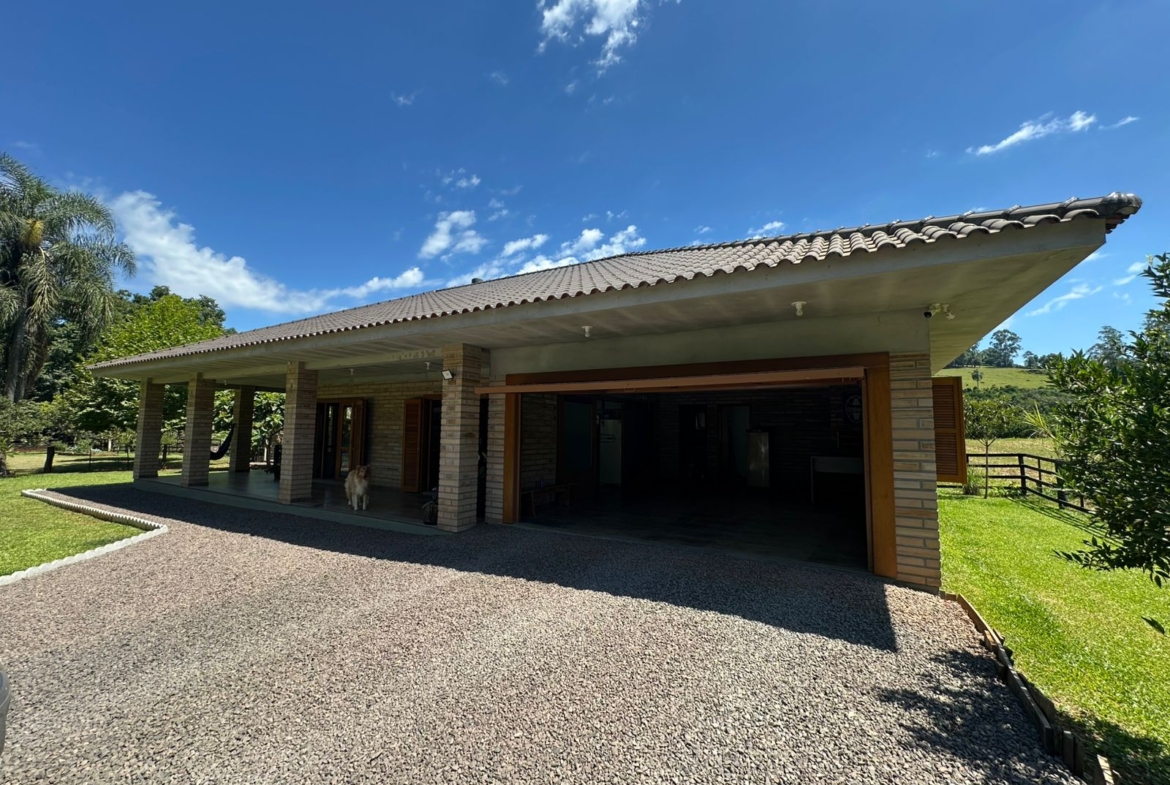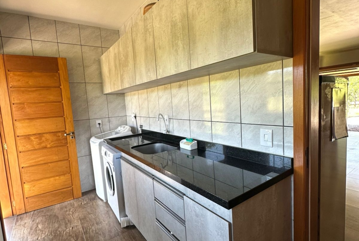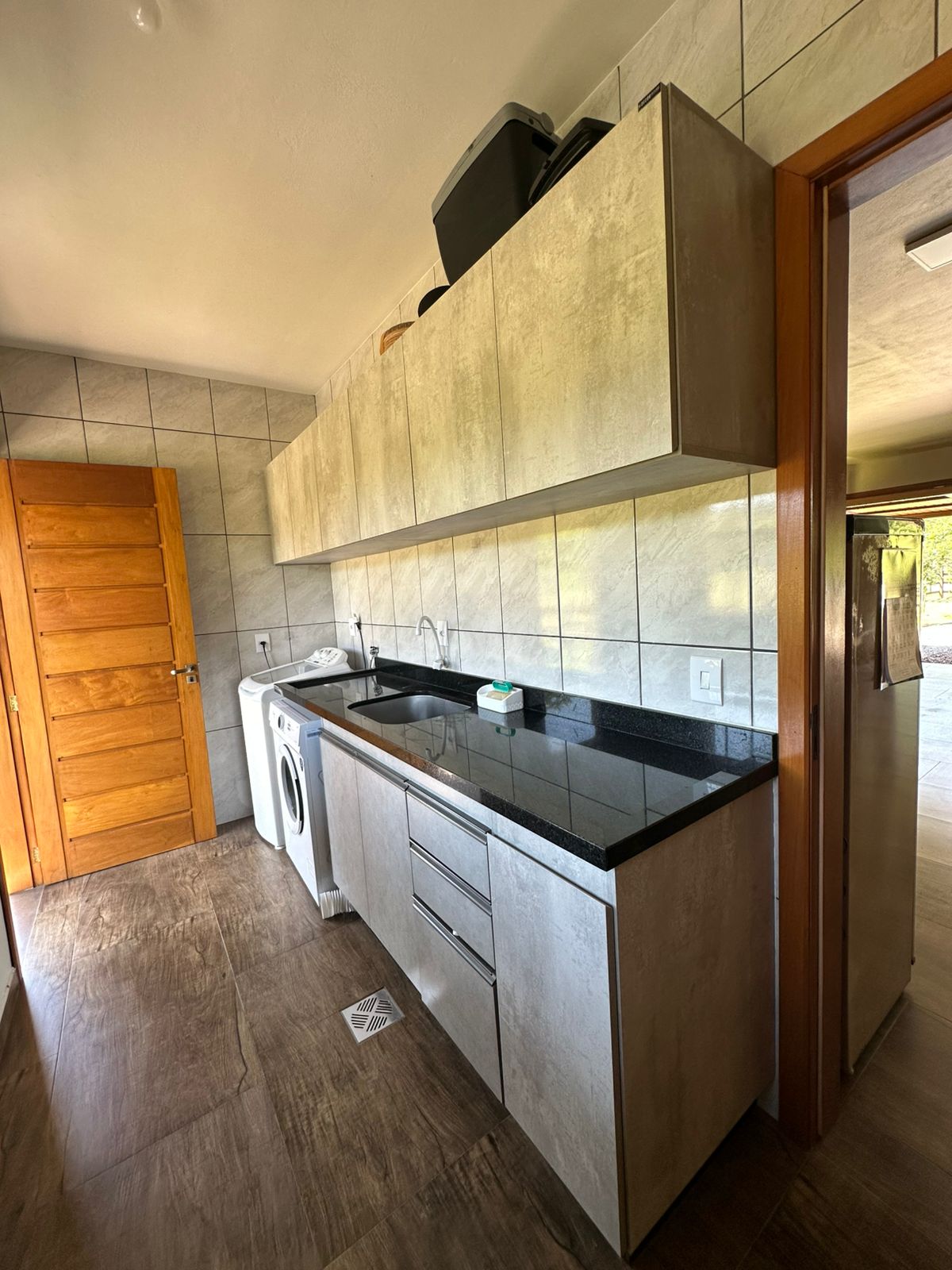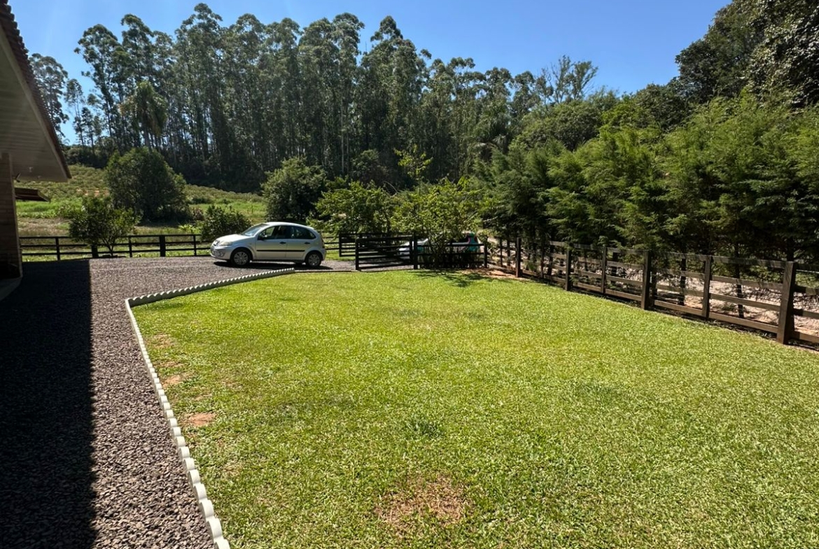Casa toda em pedra gres, porcelanato, abertura de madeira alto padrão, cozinha/espaço gourmet e sala de estar jantar, 02 dormitórios( sendo 01 suíte) garagem para 02 carros, com churrasqueira, pia e lavabo. Área na extensão de praticamente toda casa, lindo jardim arborizado, com árvores frutíferas, galpãozinho e canil.
