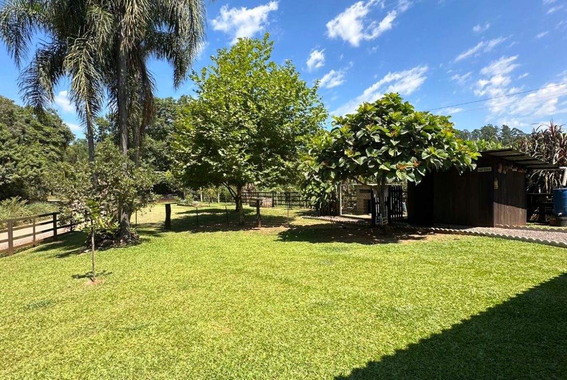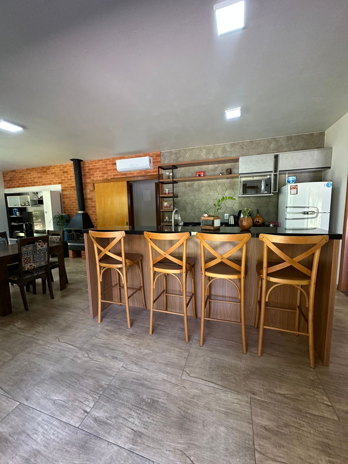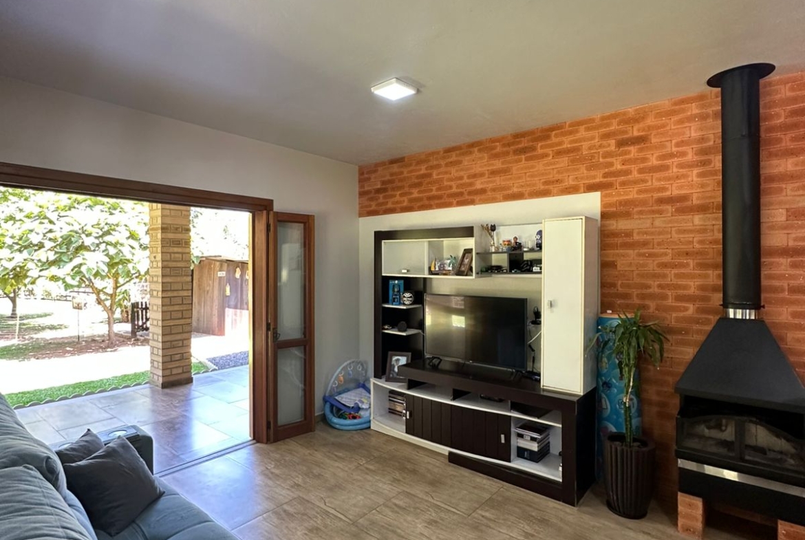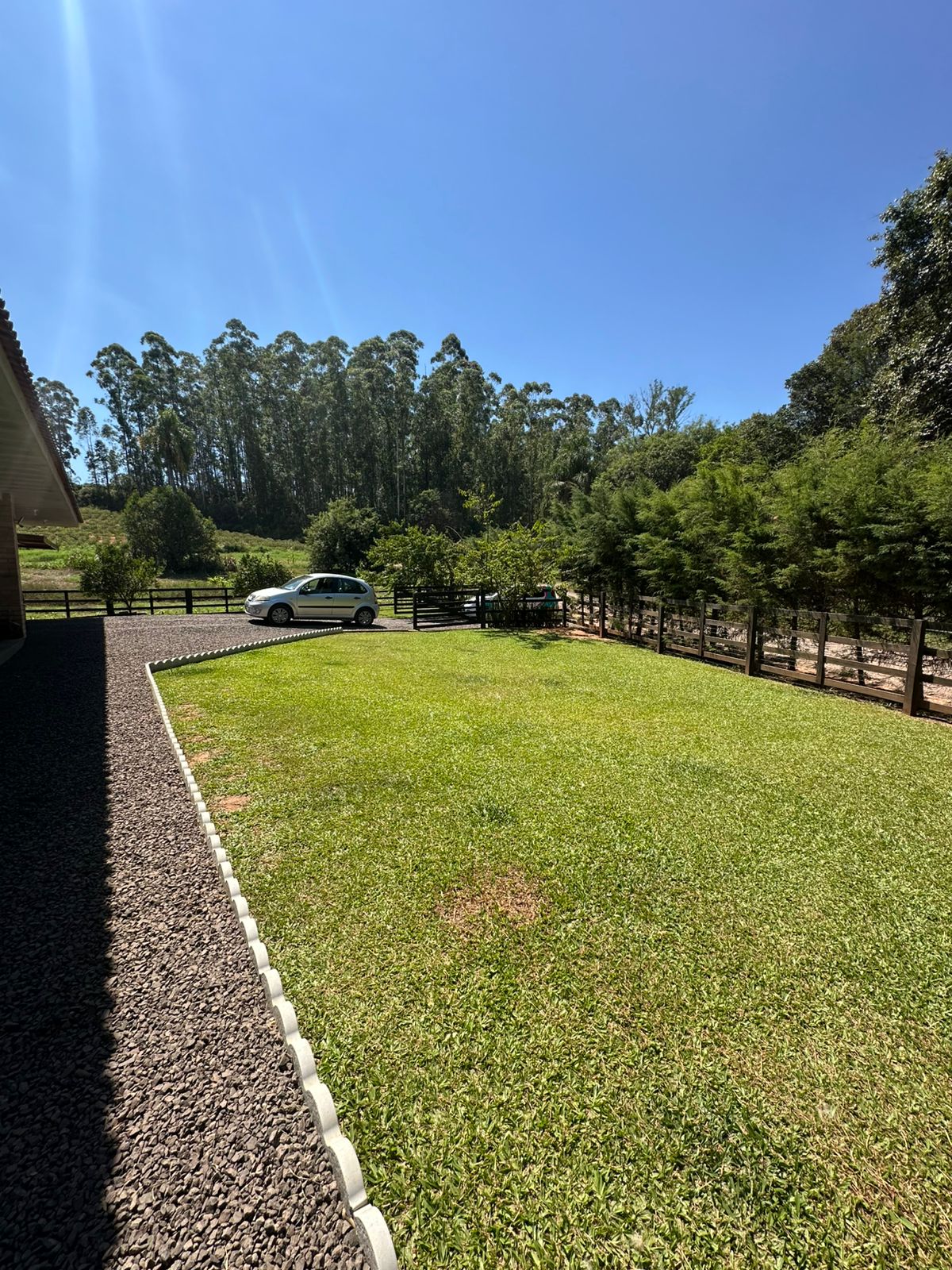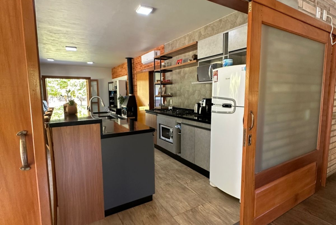 Casa toda em pedra gres, porcelanato, abertura de madeira alto padrão, cozinha/espaço gourmet e sala de estar jantar, 02 dormitórios( sendo 01 suíte) garagem para 02 carros, com churrasqueira, pia e lavabo. Área na extensão de praticamente toda casa, lindo jardim arborizado, com árvores frutíferas, galpãozinho e canil.