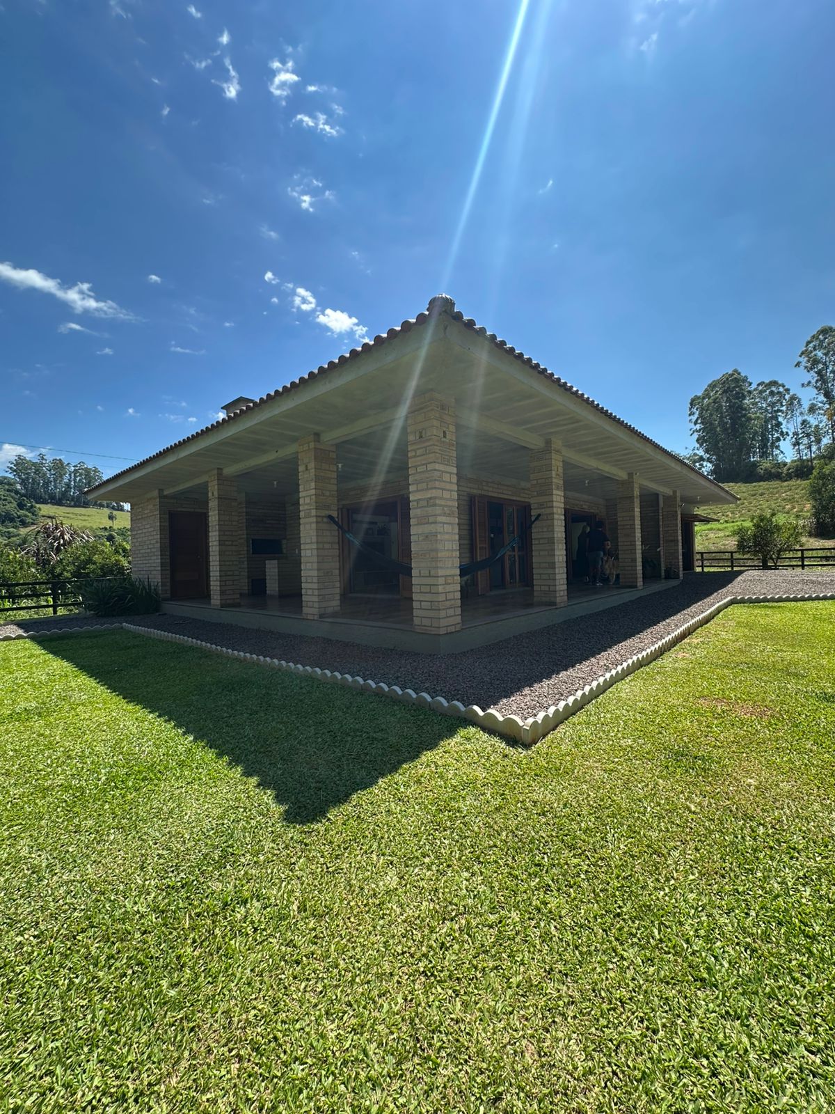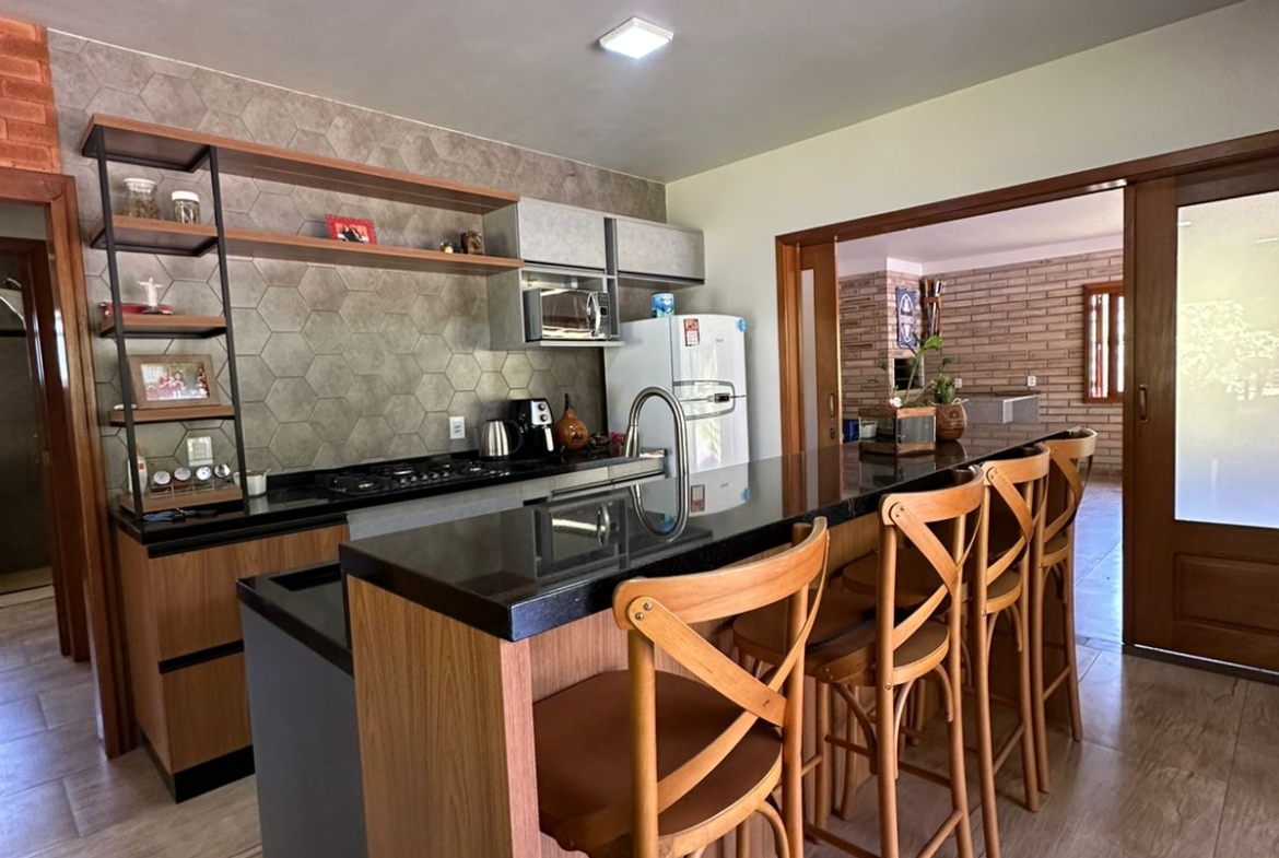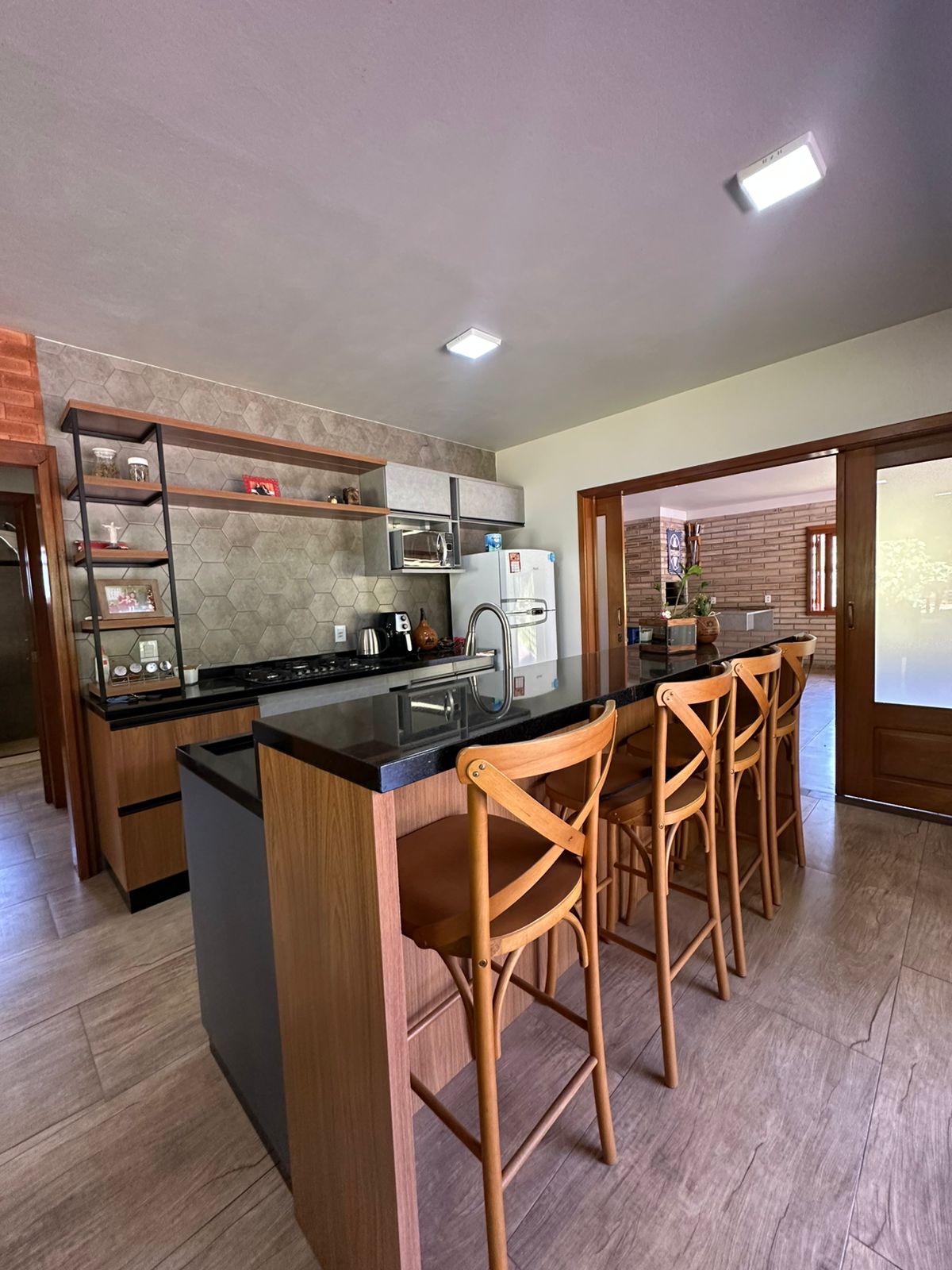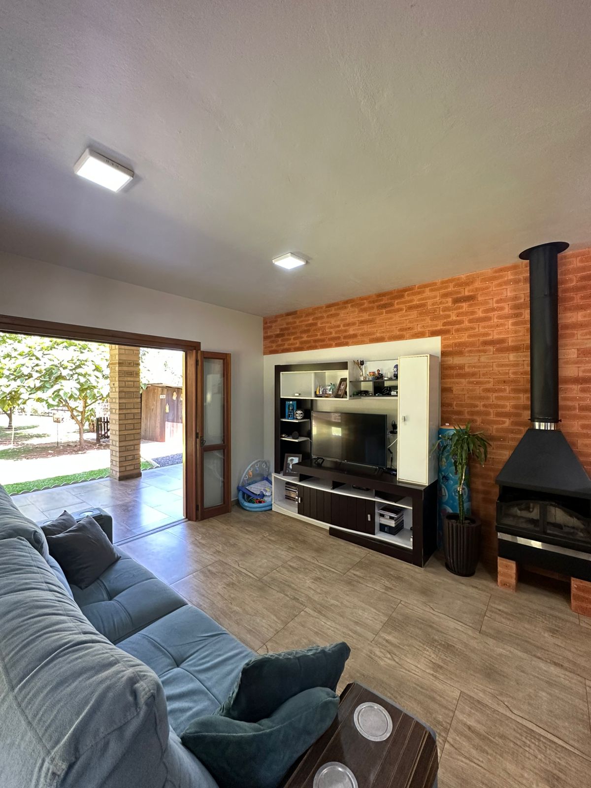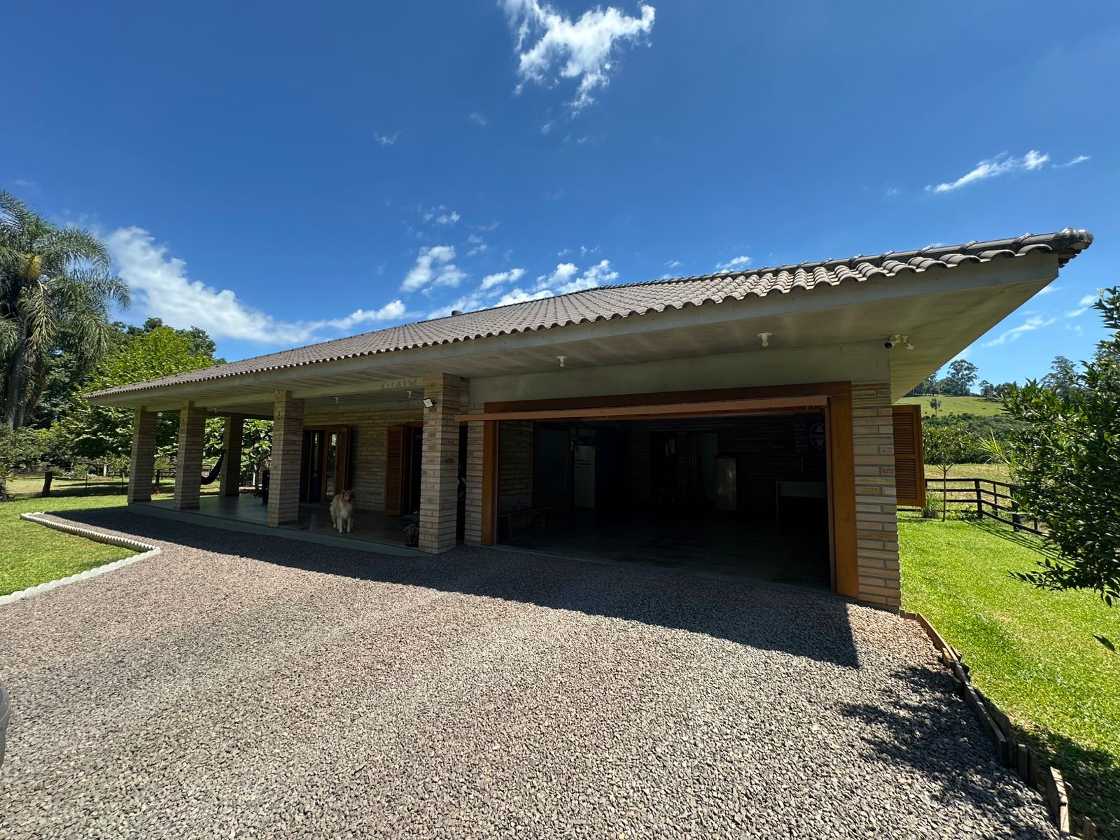 Casa toda em pedra gres, porcelanato, abertura de madeira alto padrão, cozinha/espaço gourmet e sala de estar jantar, 02 dormitórios( sendo 01 suíte) garagem para 02 carros, com churrasqueira, pia e lavabo. Área na extensão de praticamente toda casa, lindo jardim arborizado, com árvores frutíferas, galpãozinho e canil.