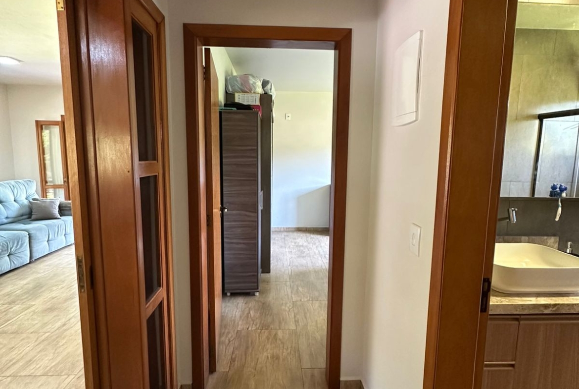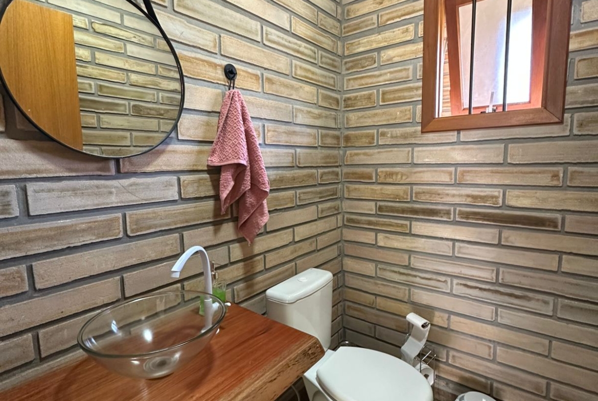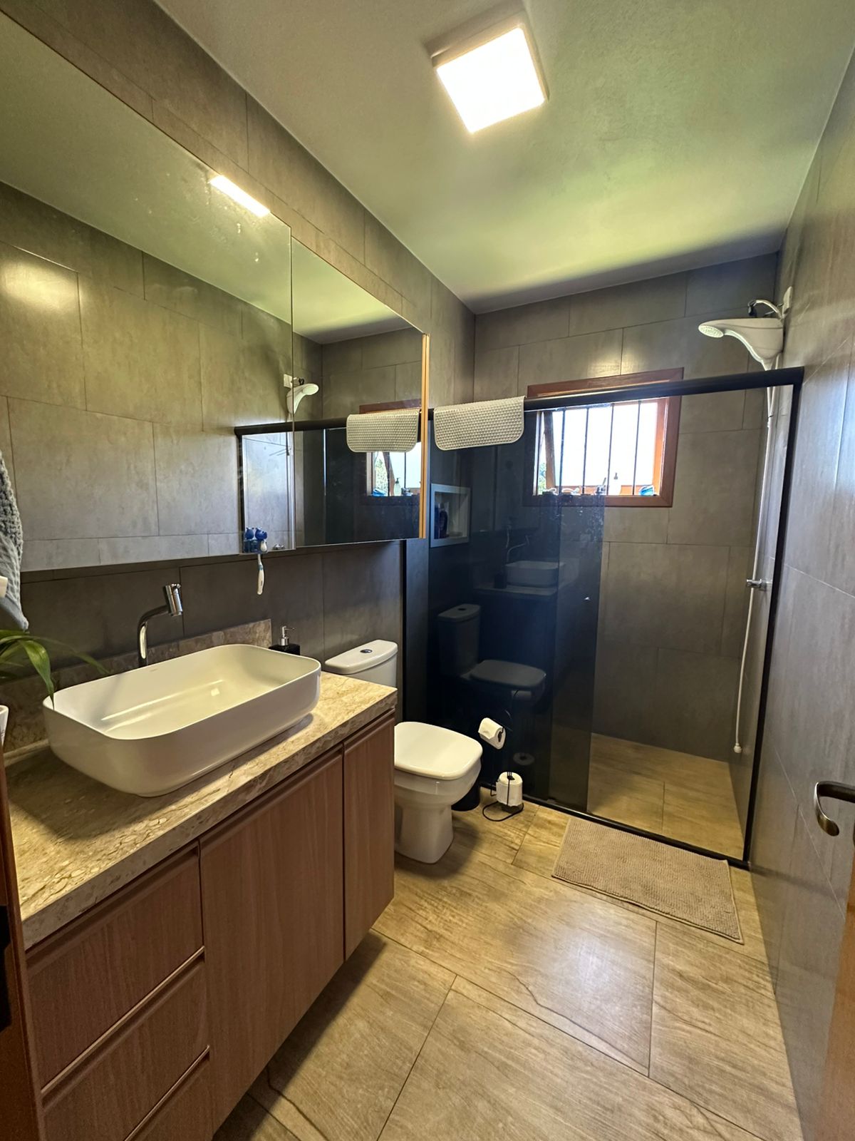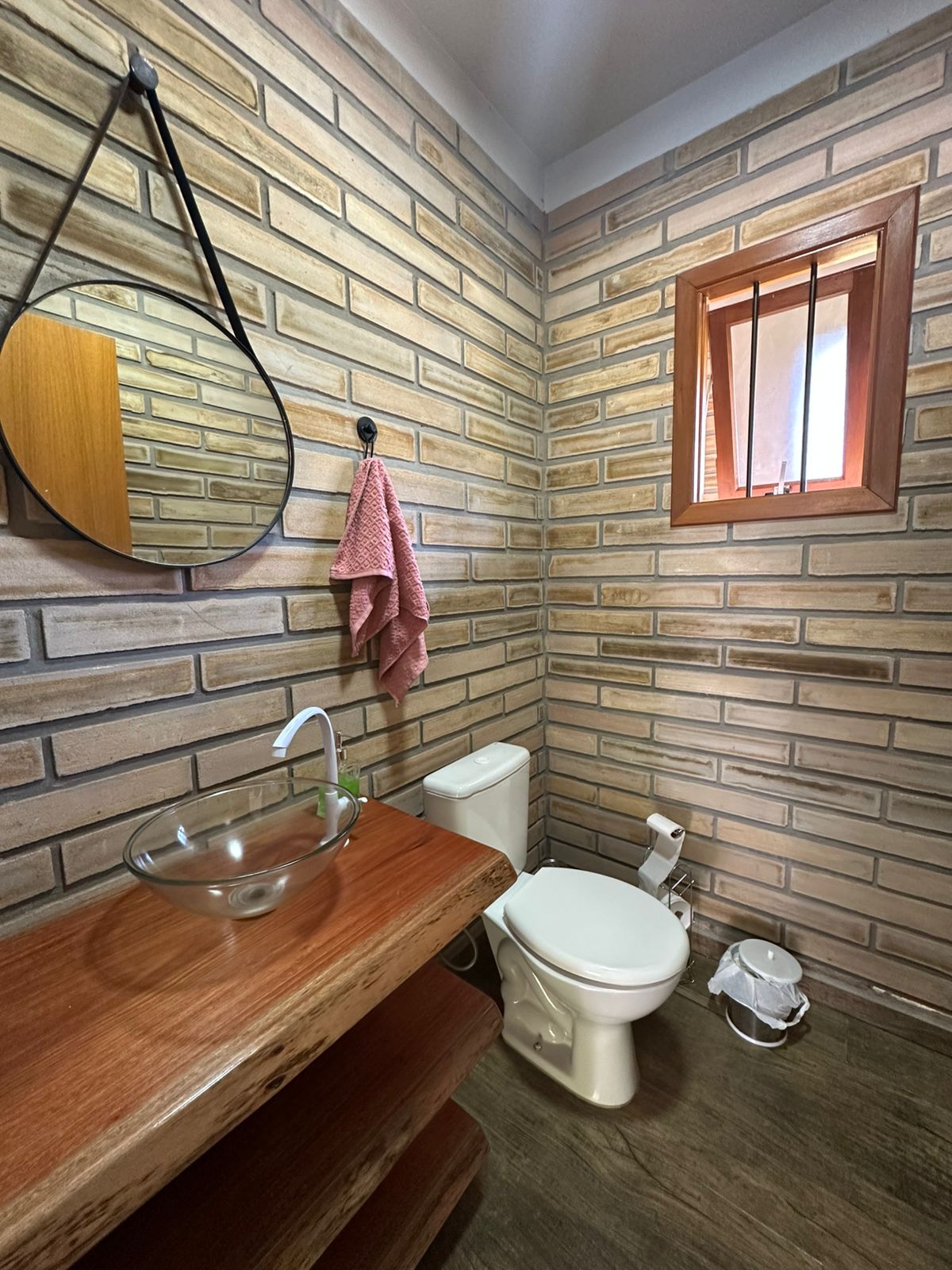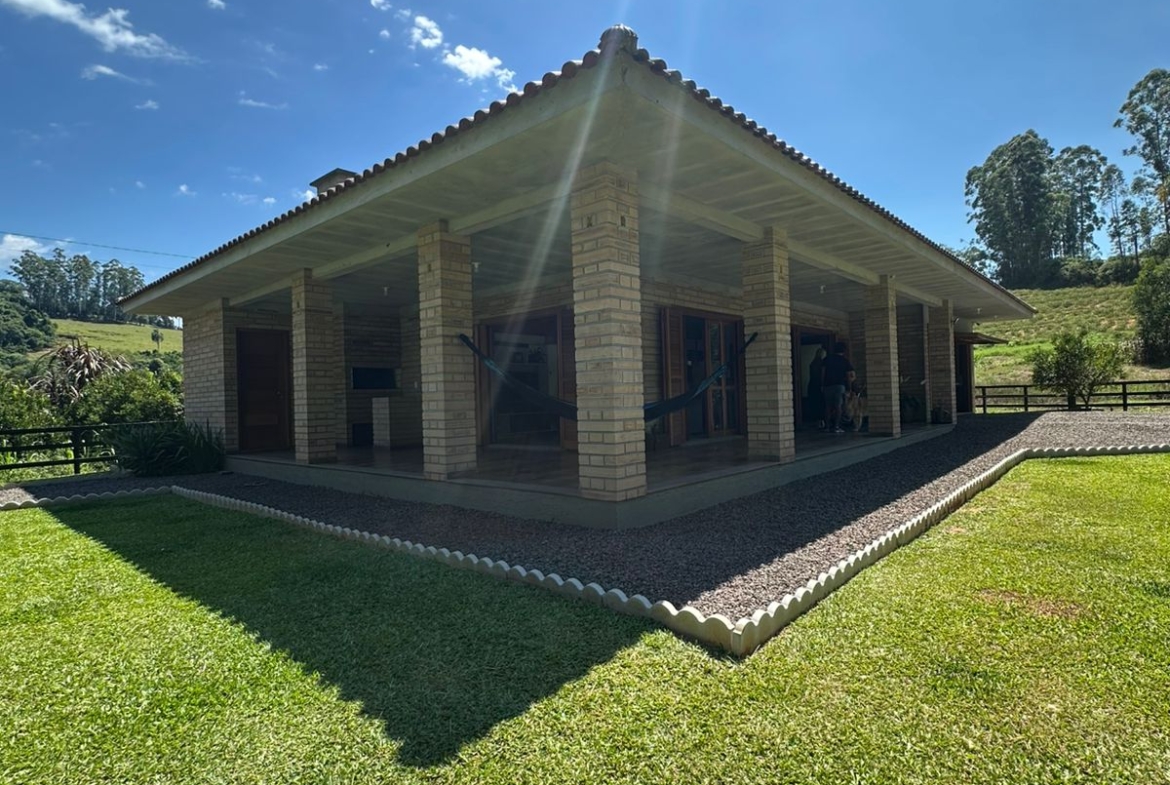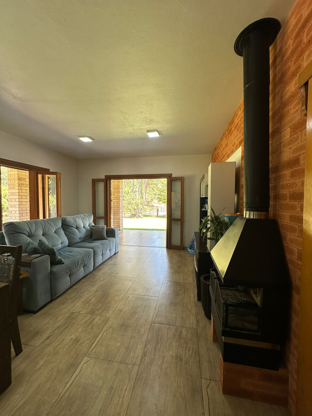 Casa toda em pedra gres, porcelanato, abertura de madeira alto padrão, cozinha/espaço gourmet e sala de estar jantar, 02 dormitórios( sendo 01 suíte) garagem para 02 carros, com churrasqueira, pia e lavabo. Área na extensão de praticamente toda casa, lindo jardim arborizado, com árvores frutíferas, galpãozinho e canil.