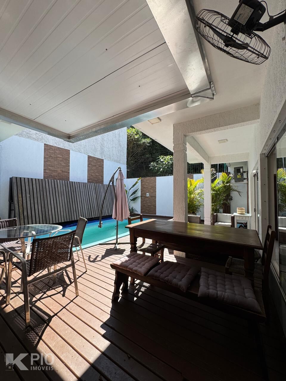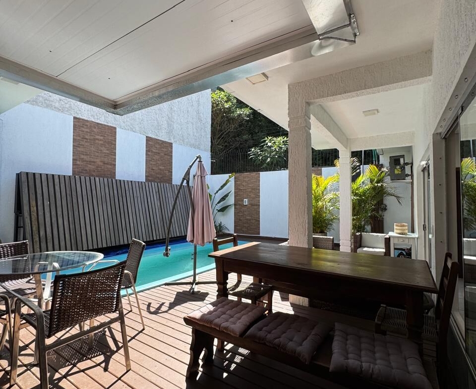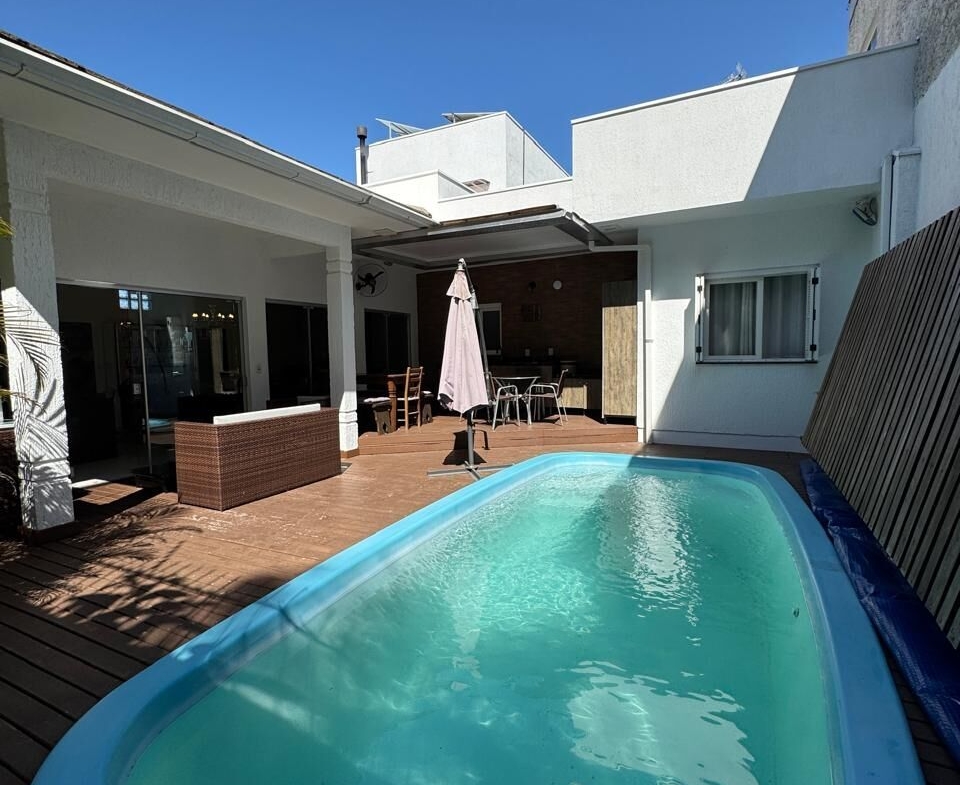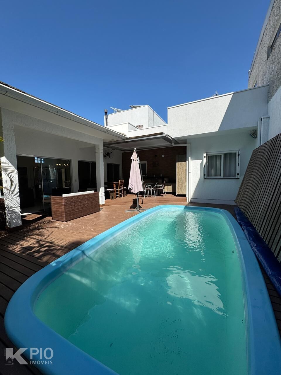 ✅ Piscina com aquecimento híbrido (solar + elétrico econômico) e deck retrátil em madeira e restante do deck em PVC
