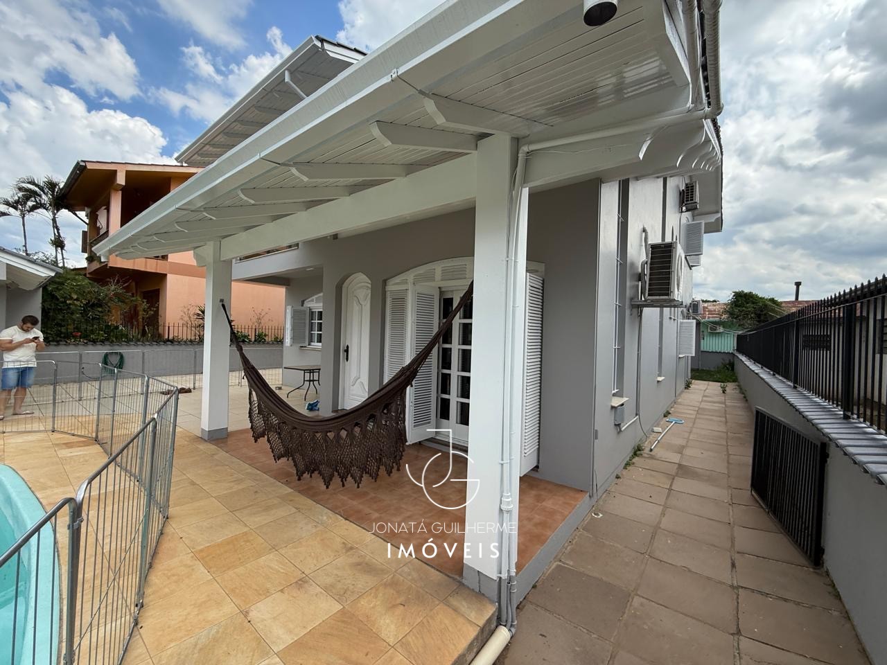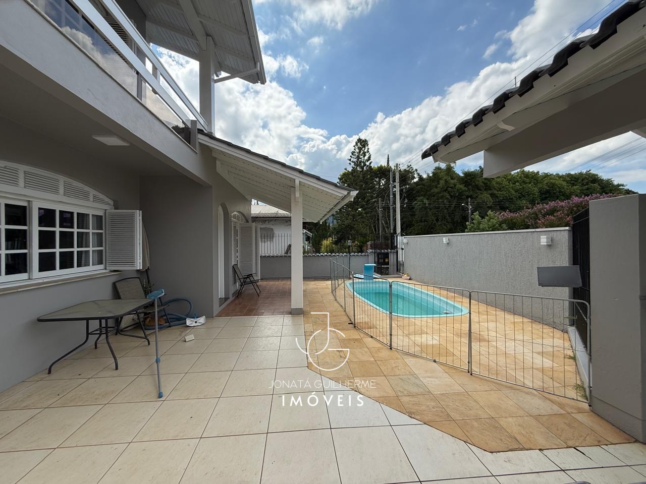 O imóvel possui piscina na parte frontal, pátio lateral e terreno totalmente cercado e murado, oferecendo segurança, privacidade e excelente área de lazer.