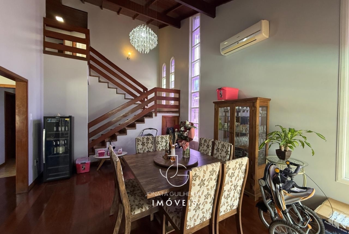 Esta residência de dois pavimentos combina conforto, espaço e arquitetura aconchegante, com belos detalhes em madeira e ambientes amplos que proporcionam elegância e bem-estar para toda a família.