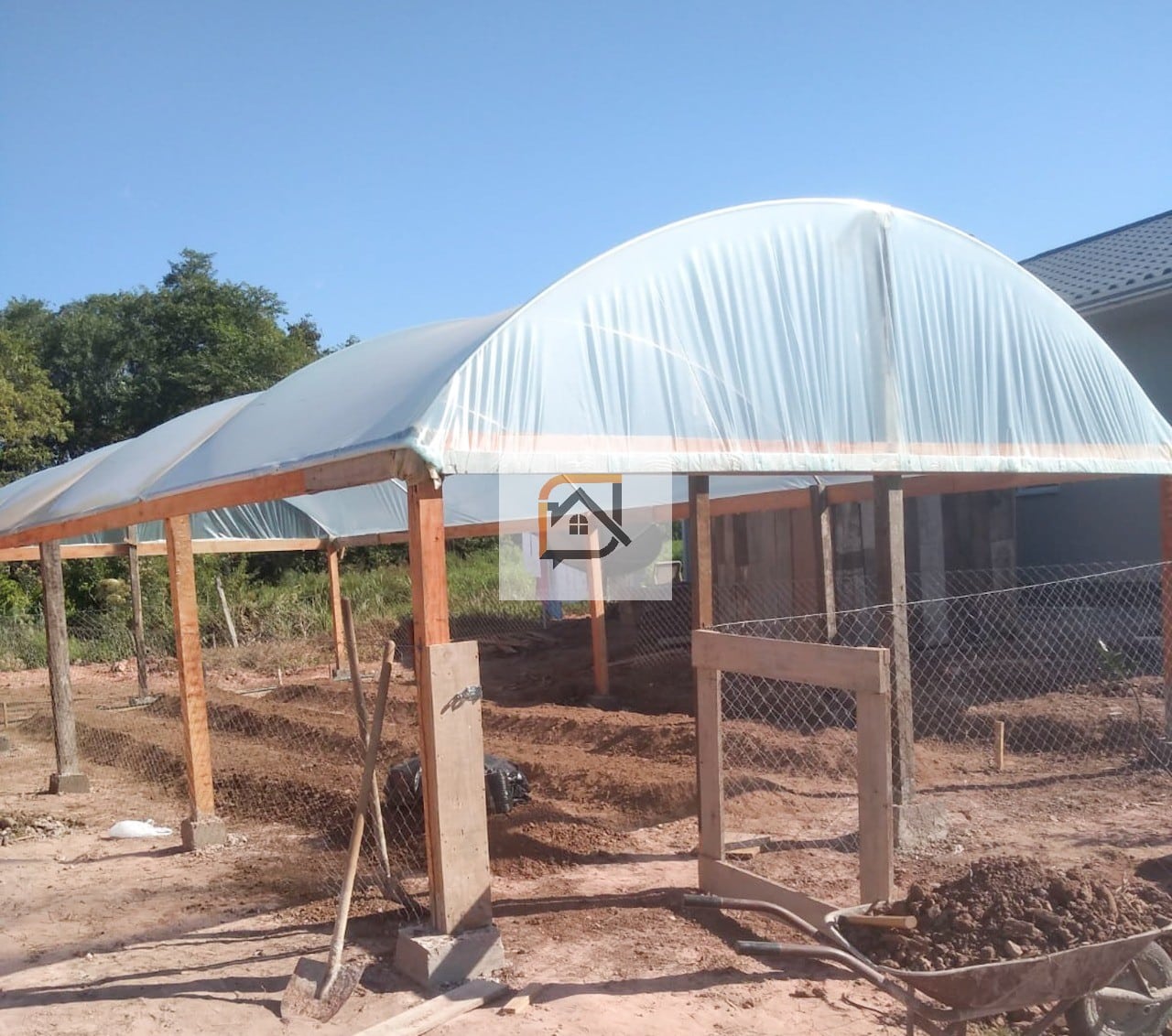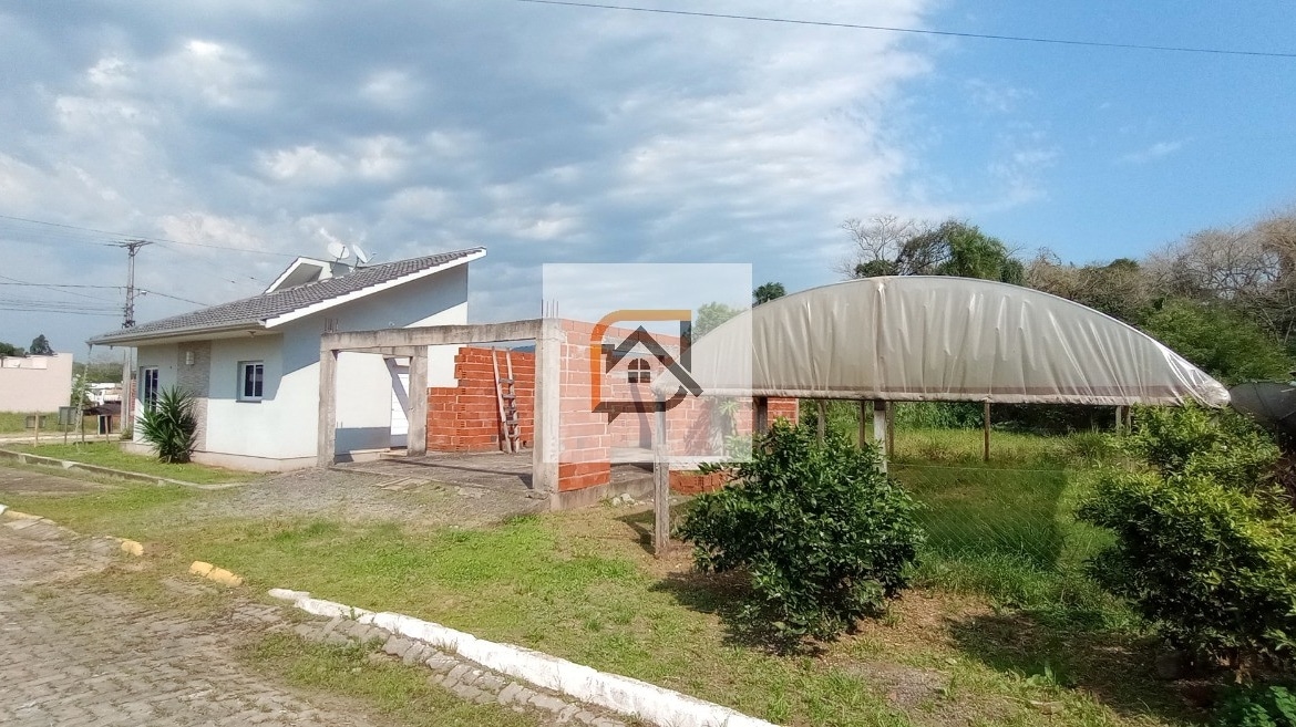 Aos fundos do terreno, há uma ampliação inacabada, possuindo projeto (que ficará à disposição do comprador) com 105m², garagem, dois dormitórios, lareira e churrasqueira.