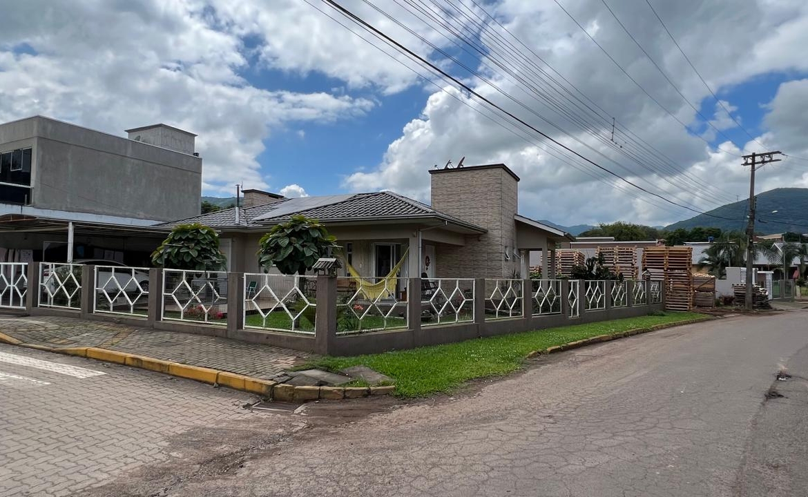 Casa de esquina no Vale Real no centro da cidade. Sala de estar/jantar, cozinha independente, área de serviço, 3 dormitórios sendo um suíte com varanda e banheiro social. Terreno de aprox. 370m² todo cercado. Possui lindo jardim, tem pergolado na frente para dois carros e garagem fechada com churrasqueira (hoje utilizada como outra sala). Aos fundos tem salão gourmet com churrasqueira e banheiro. Casa de 112m² + salão de festas de aprox. 50m². R$ 699.000,00 analisa imóvel na negociação e carro.