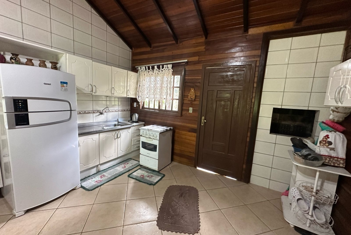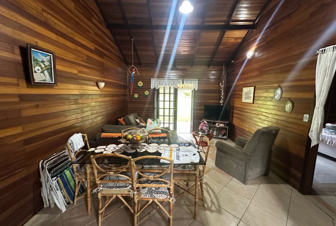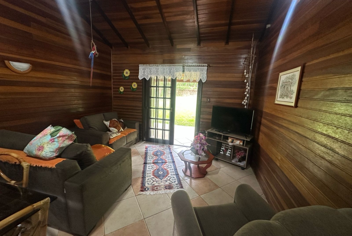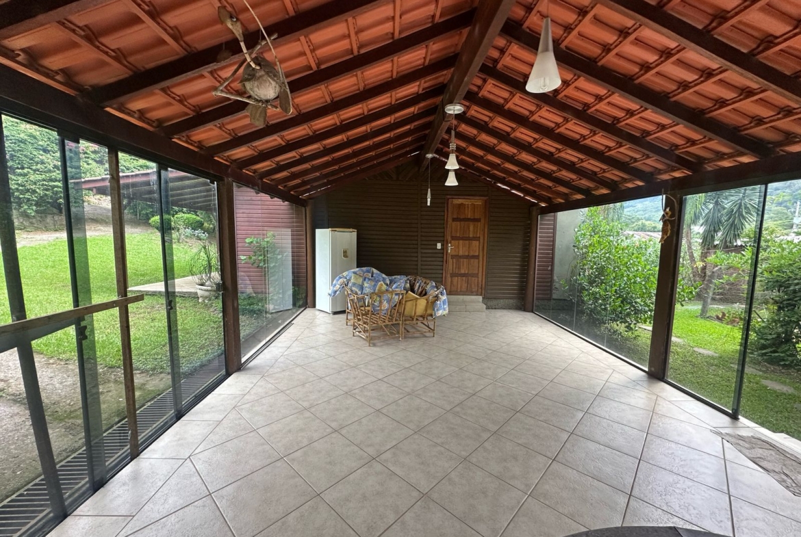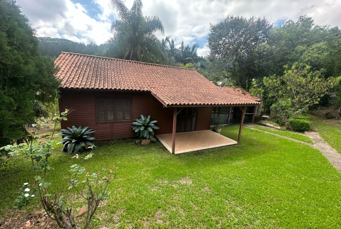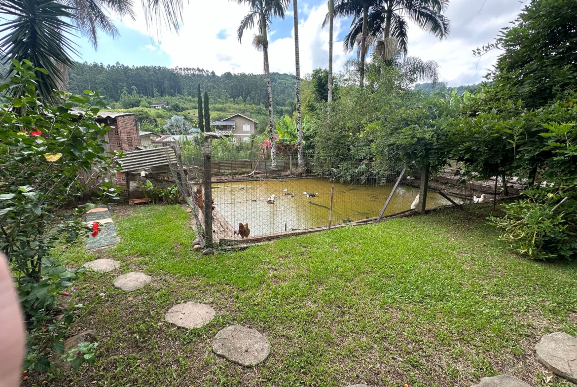 Imóvel possui uma frente de 30 metros de frente para o asfalto, uma casa com 2 dormitórios, sala, cozinha, banheiro e salão de festas com churrasqueira.