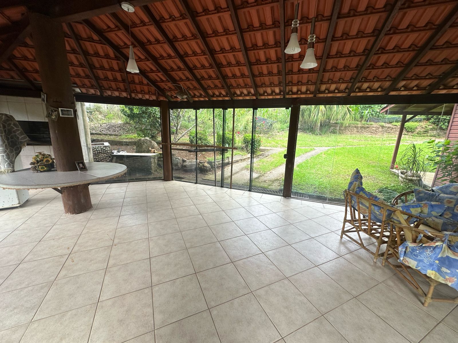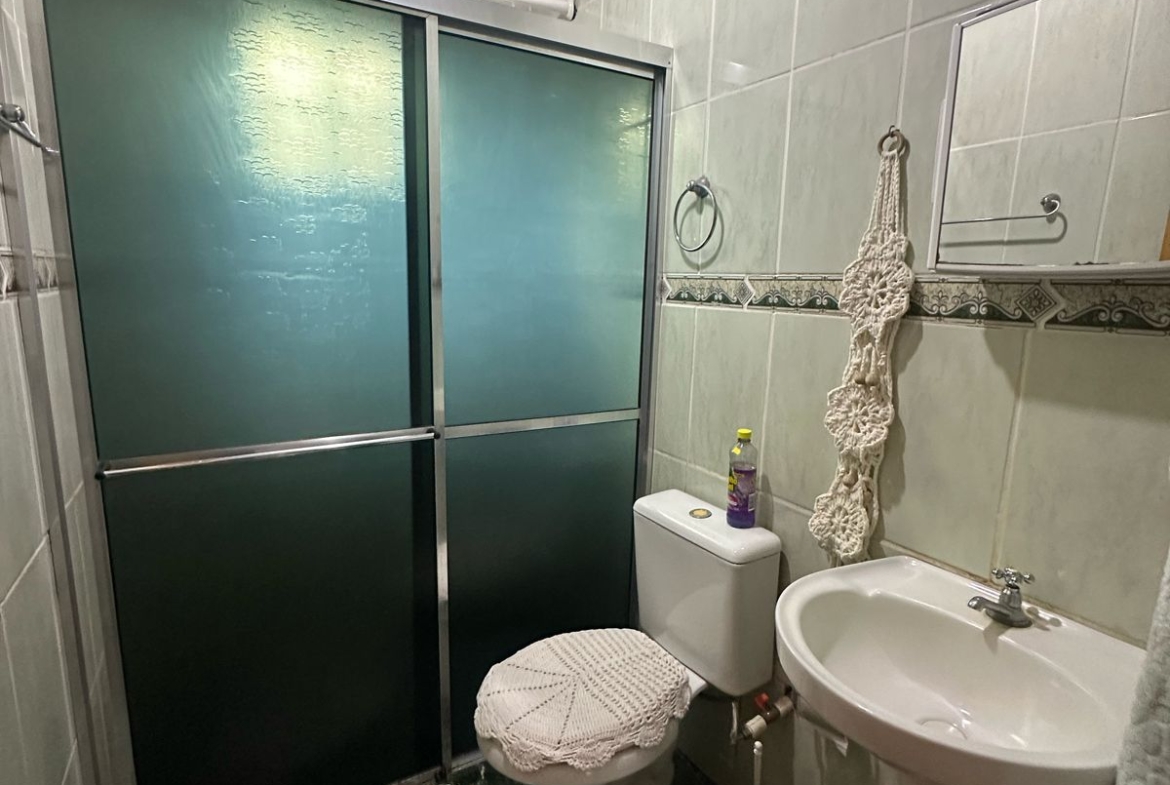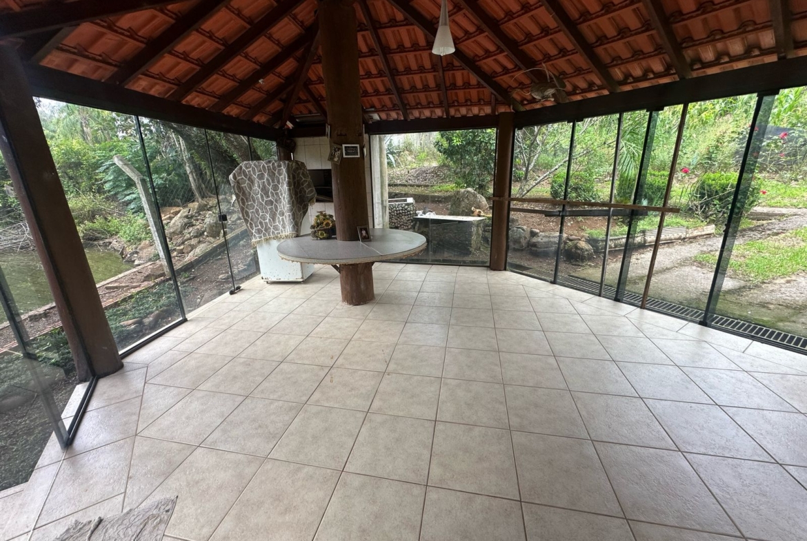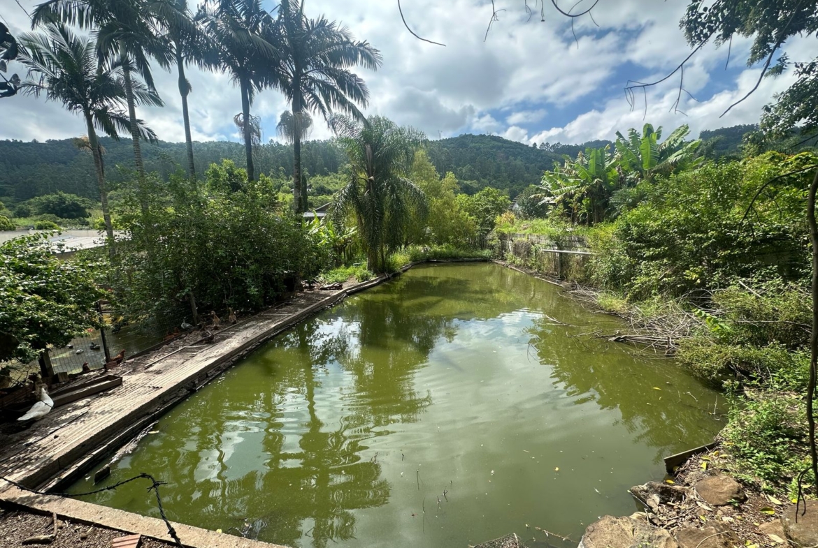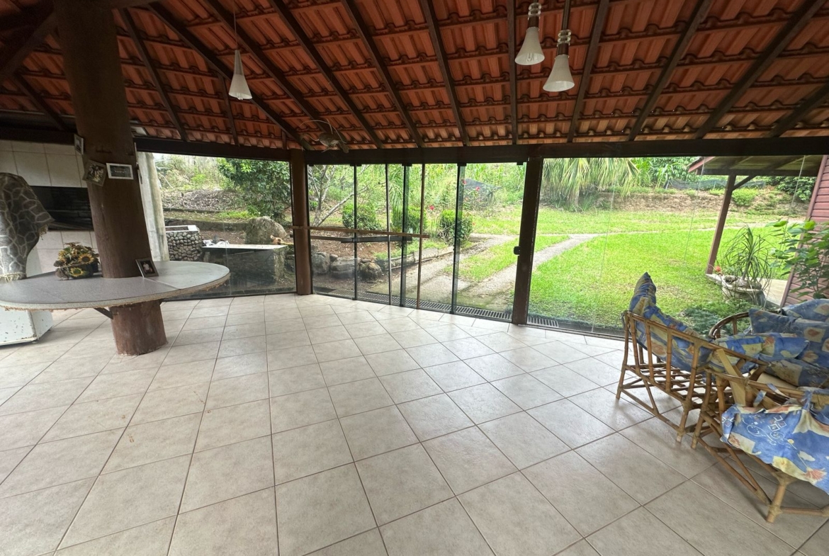 Imóvel possui uma frente de 30 metros de frente para o asfalto, uma casa com 2 dormitórios, sala, cozinha, banheiro e salão de festas com churrasqueira.