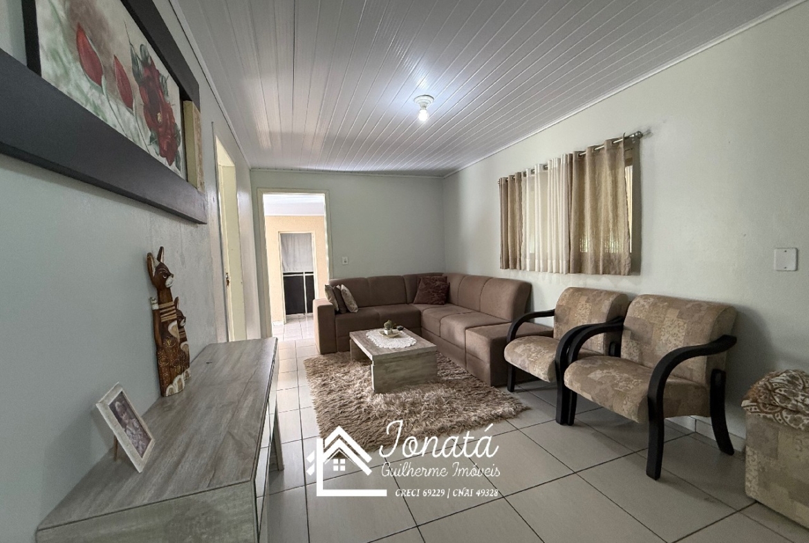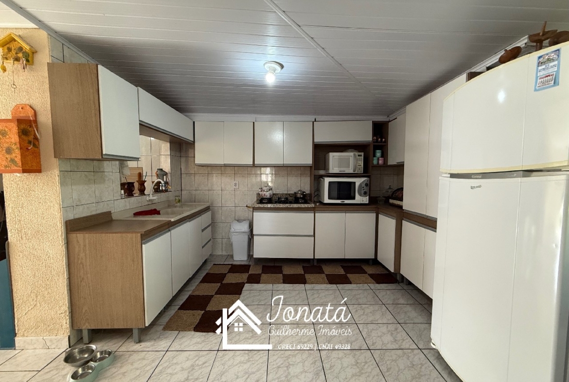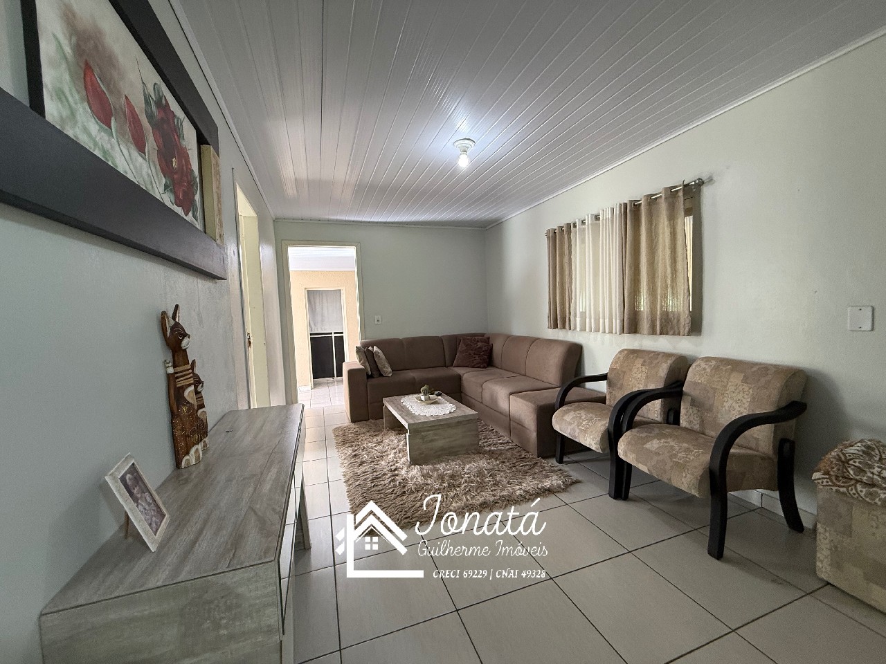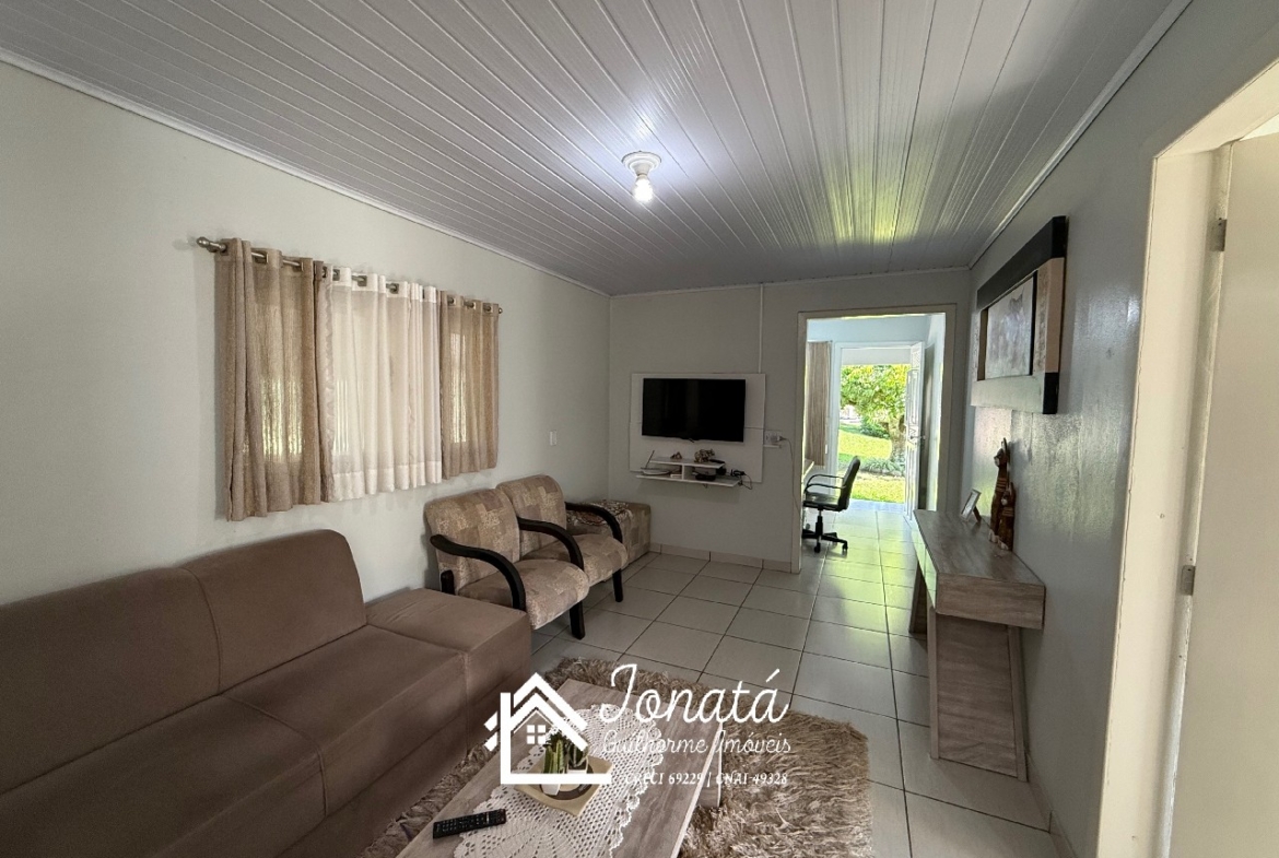 Casa ampla com 125m², 2 dormitórios, 1sala de estar ampla, escritório, sala de jantar, cozinha com móveis e churrasqueira, 1 banheiro social, área de serviço e garagem coberta para 2 veículos (uma delas fechada com portão).