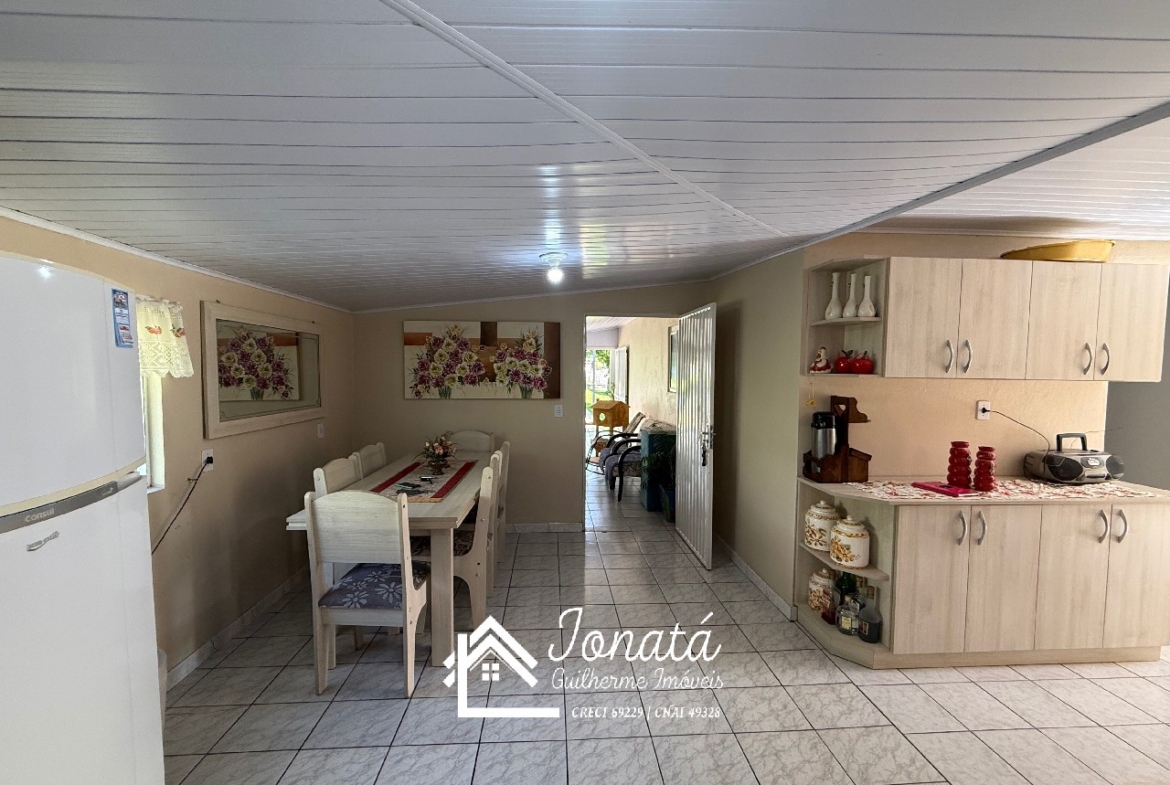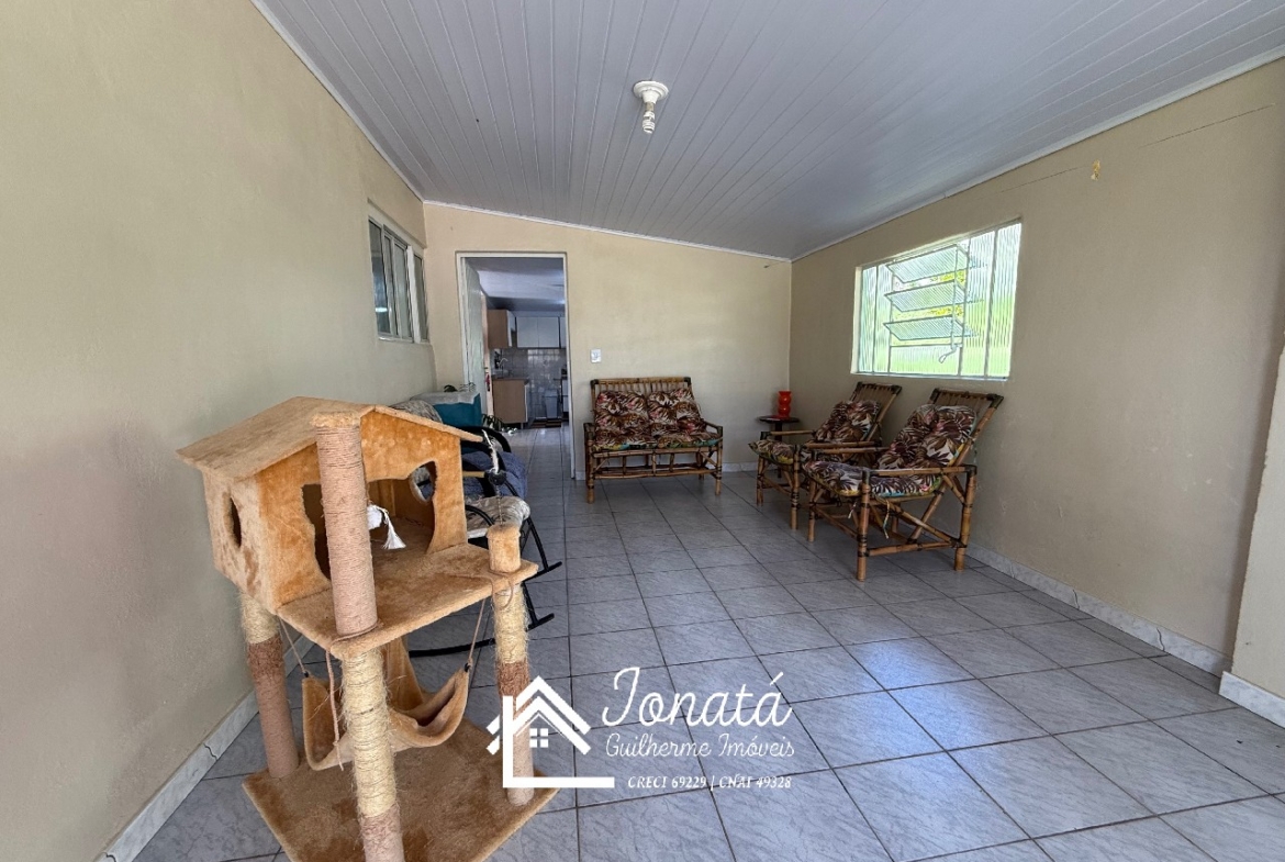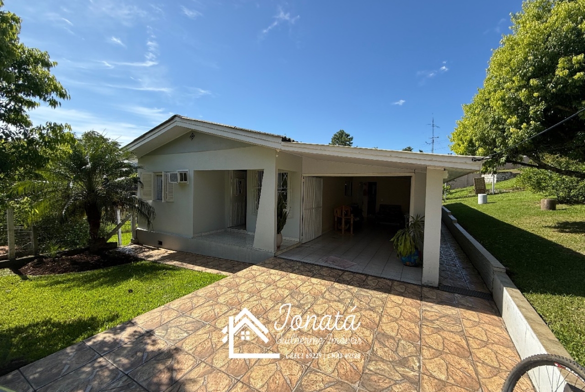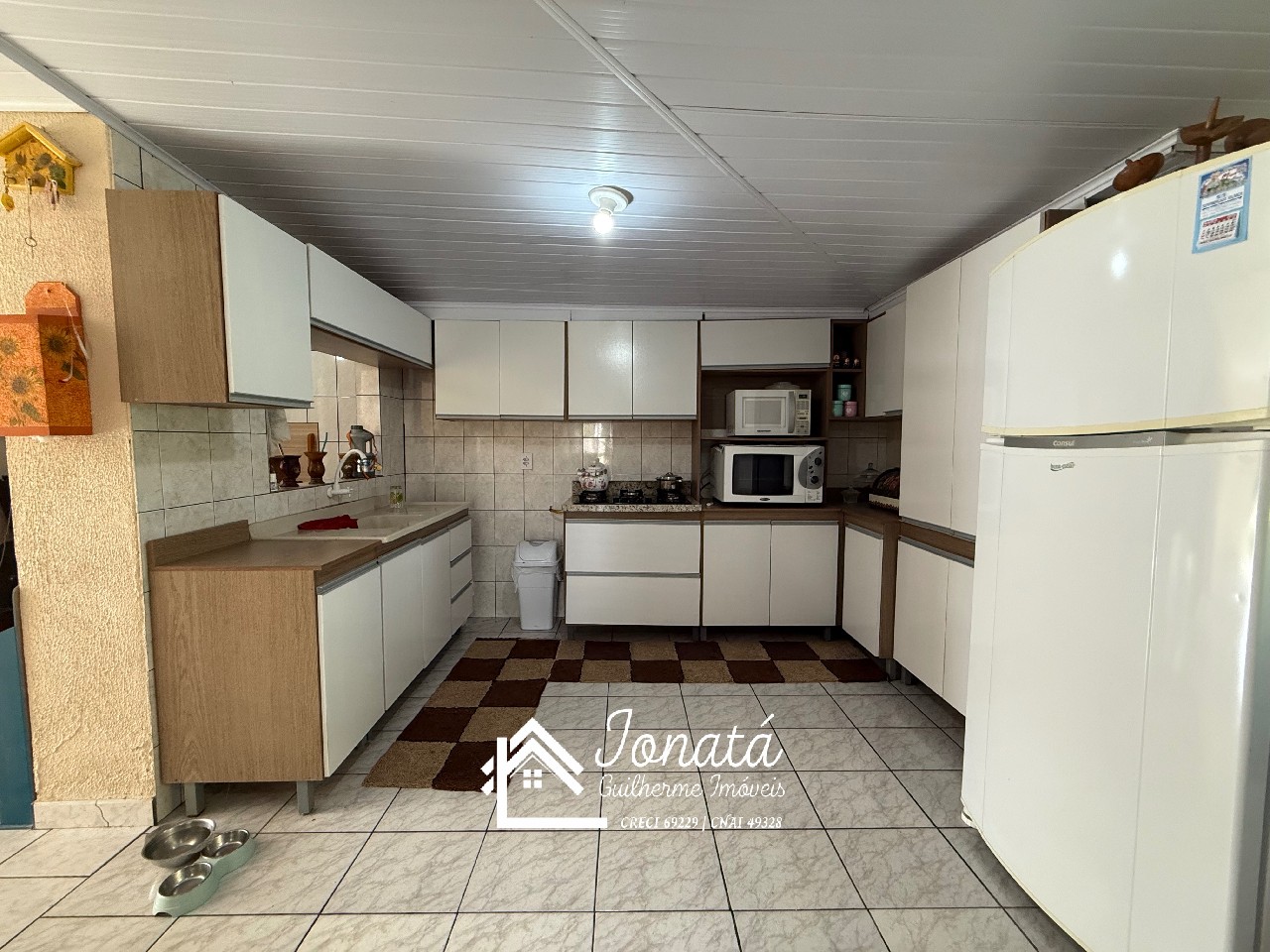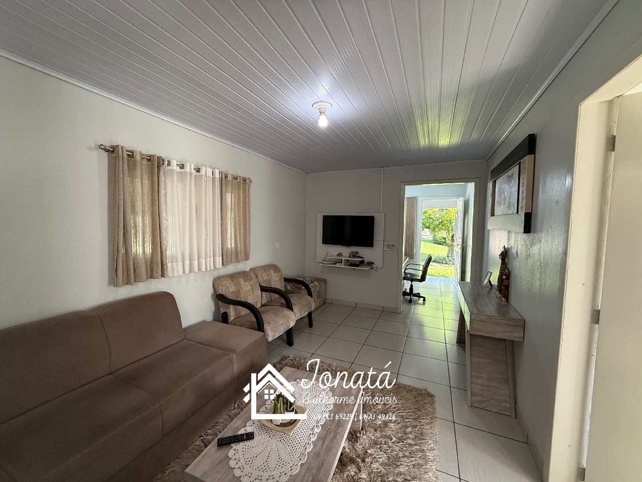 Casa ampla com 125m², 2 dormitórios, 1sala de estar ampla, escritório, sala de jantar, cozinha com móveis e churrasqueira, 1 banheiro social, área de serviço e garagem coberta para 2 veículos (uma delas fechada com portão).