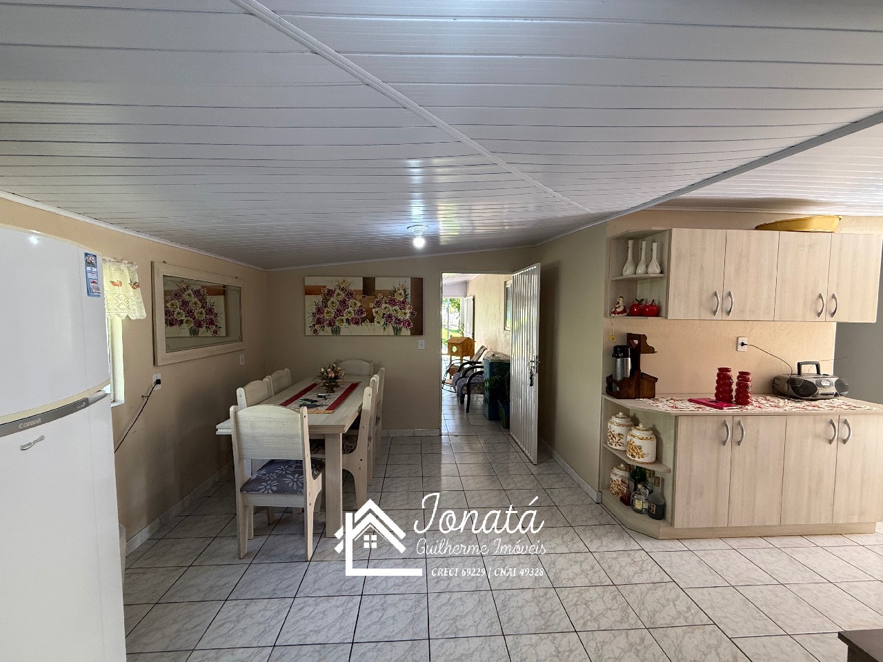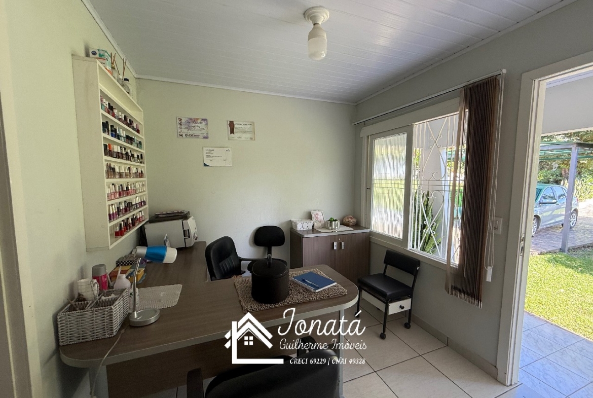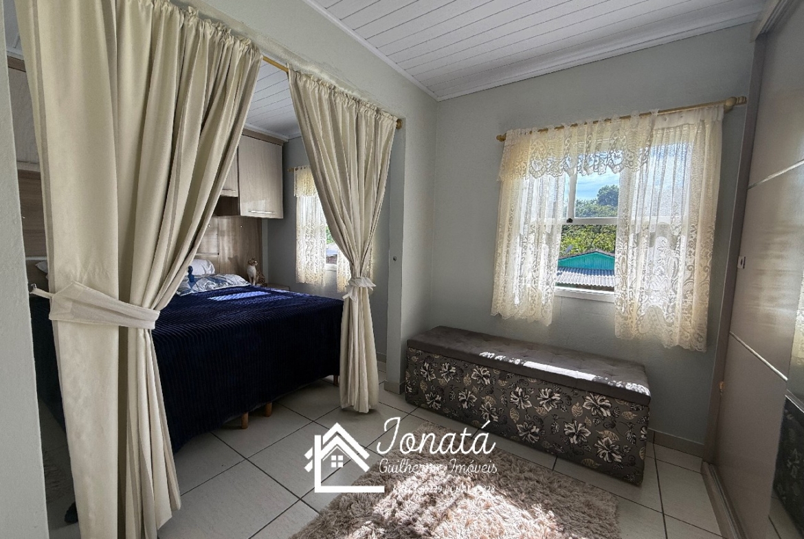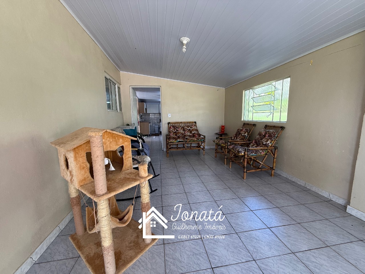 Casa ampla com 125m², 2 dormitórios, 1sala de estar ampla, escritório, sala de jantar, cozinha com móveis e churrasqueira, 1 banheiro social, área de serviço e garagem coberta para 2 veículos (uma delas fechada com portão).