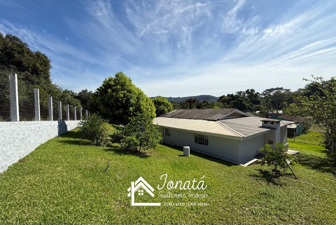 Possui terreno de 750m² de área total, com acesso todo asfaltado, toda cercada, portão eletrônico e poço artesiano. Aberturas em madeira, forro em pvc, e pátio amplo com gramado, árvores e flores.