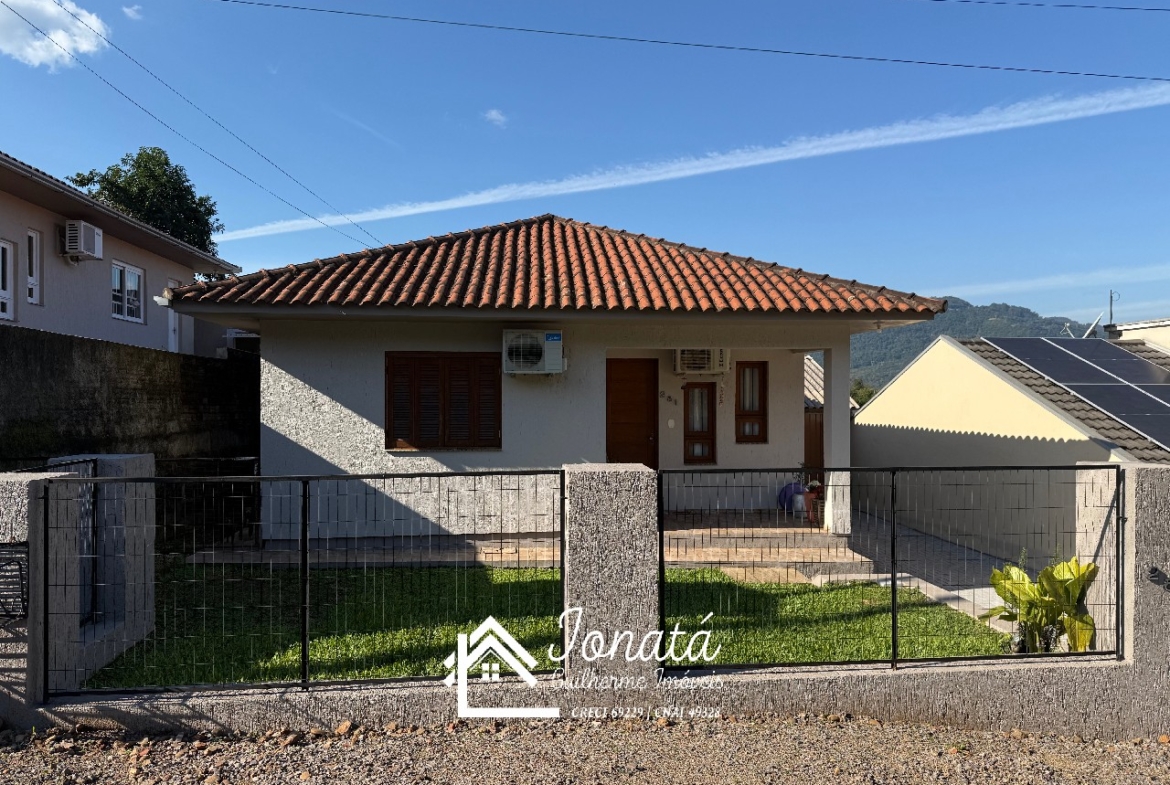 A casa possui 3 dormitórios, 2 banheiros, cozinha e sala amplas no conceito aberto, garagem ampla e deck nos fundos com bela vista. Aproximadamente com metragem de 159,32m² de área total.