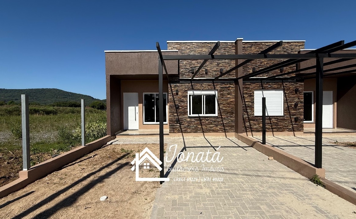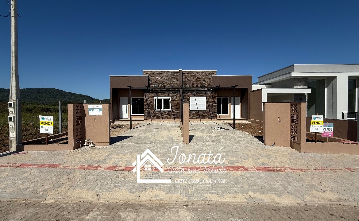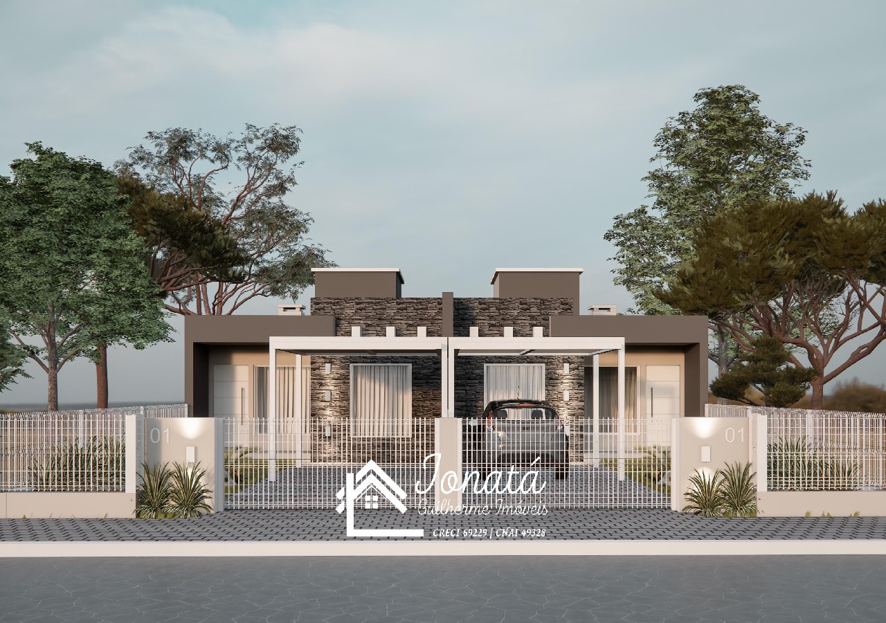 São duas casas com 3 dormitórios, 1 banheiro social, sala e cozinha no conceito aberto, área de serviço com churrasqueira, pátio frontal e nos fundos, cobertura para o carro e cercada.