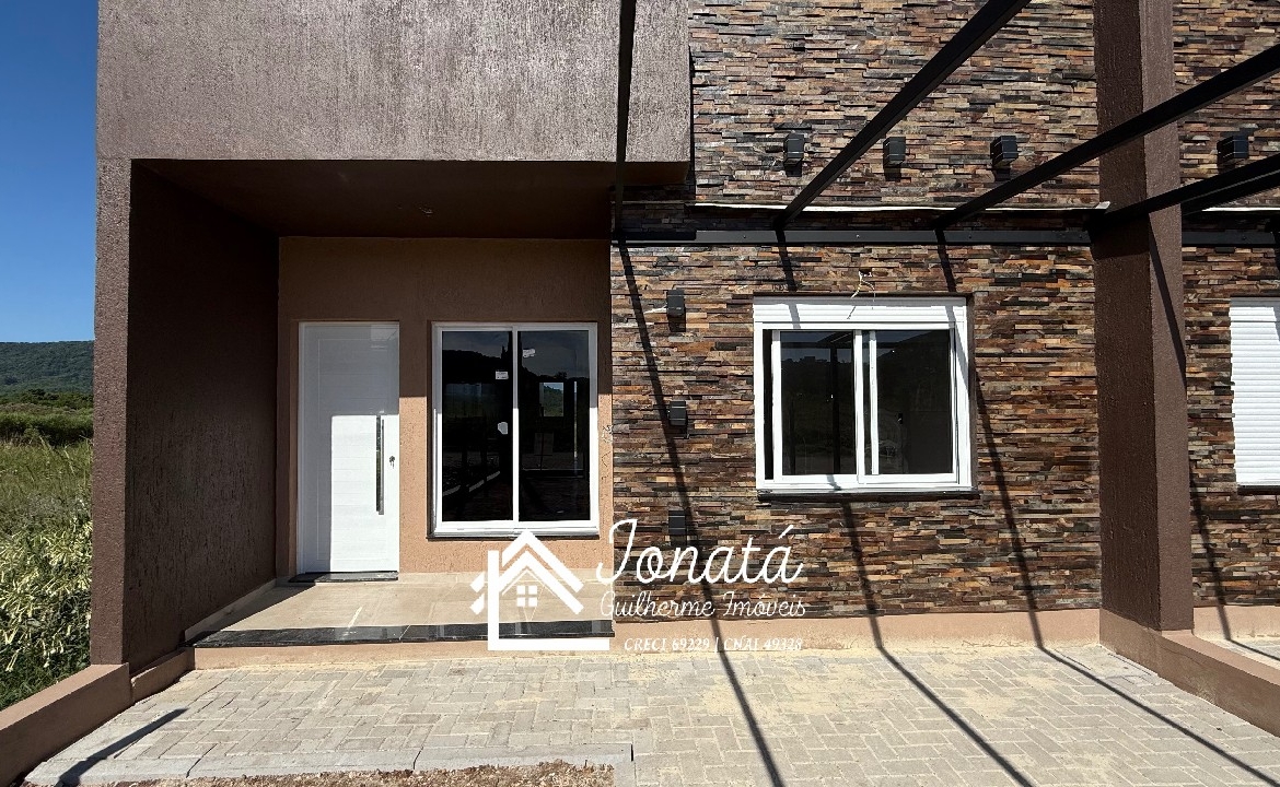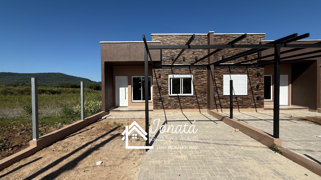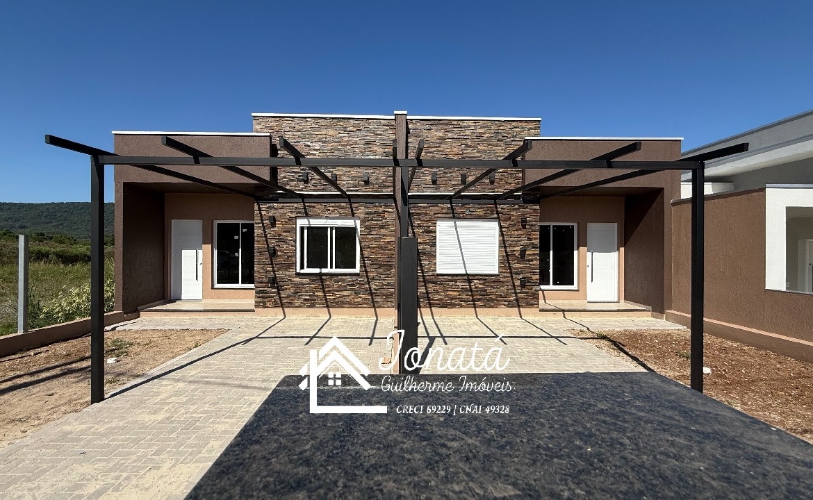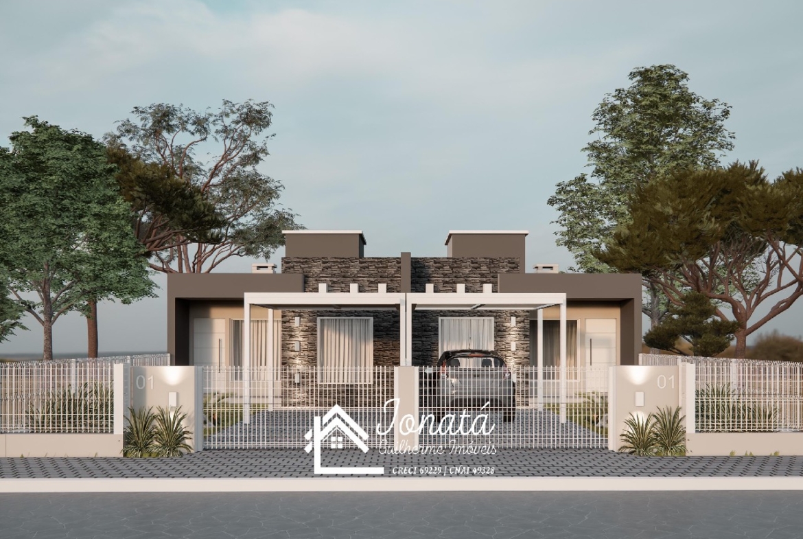 São duas casas com 3 dormitórios, 1 banheiro social, sala e cozinha no conceito aberto, área de serviço com churrasqueira, pátio frontal e nos fundos, cobertura para o carro e cercada.