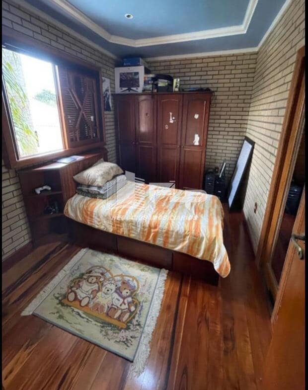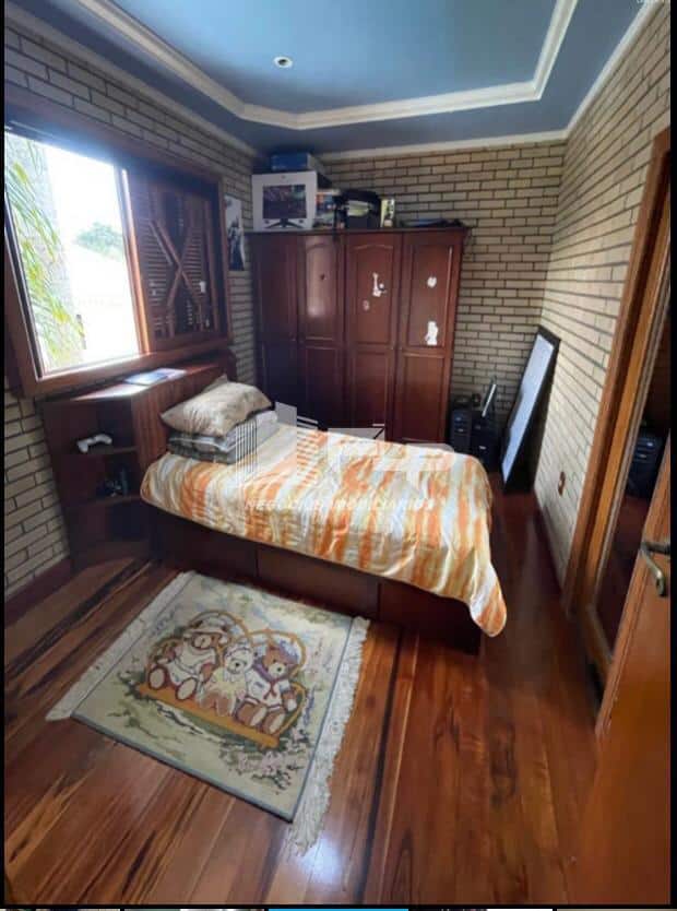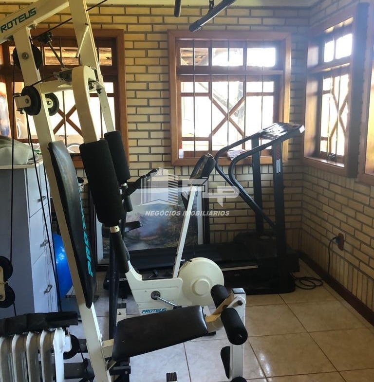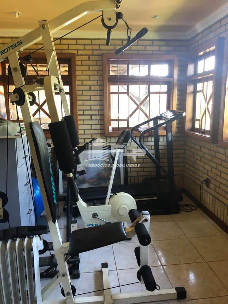 A casa possui uma excelente infra estrutura, oferecendo diferenciais como lareira, academia, boiler com aquecimento à gás, suíte e lavabo. Conta ainda com 5 quartos (dos quais 1 é suíte), 3 salas (sala de estar, jantar e sala de TV) e garagem ampla, para até 5 carros (3 vagas cobertas).