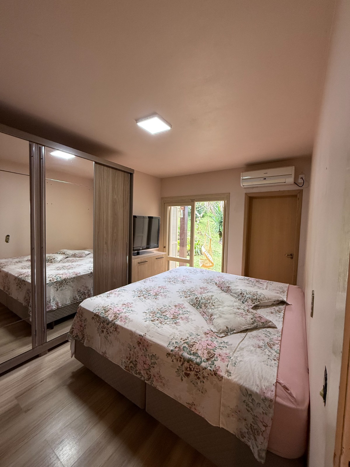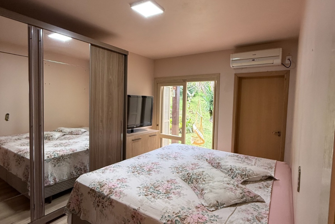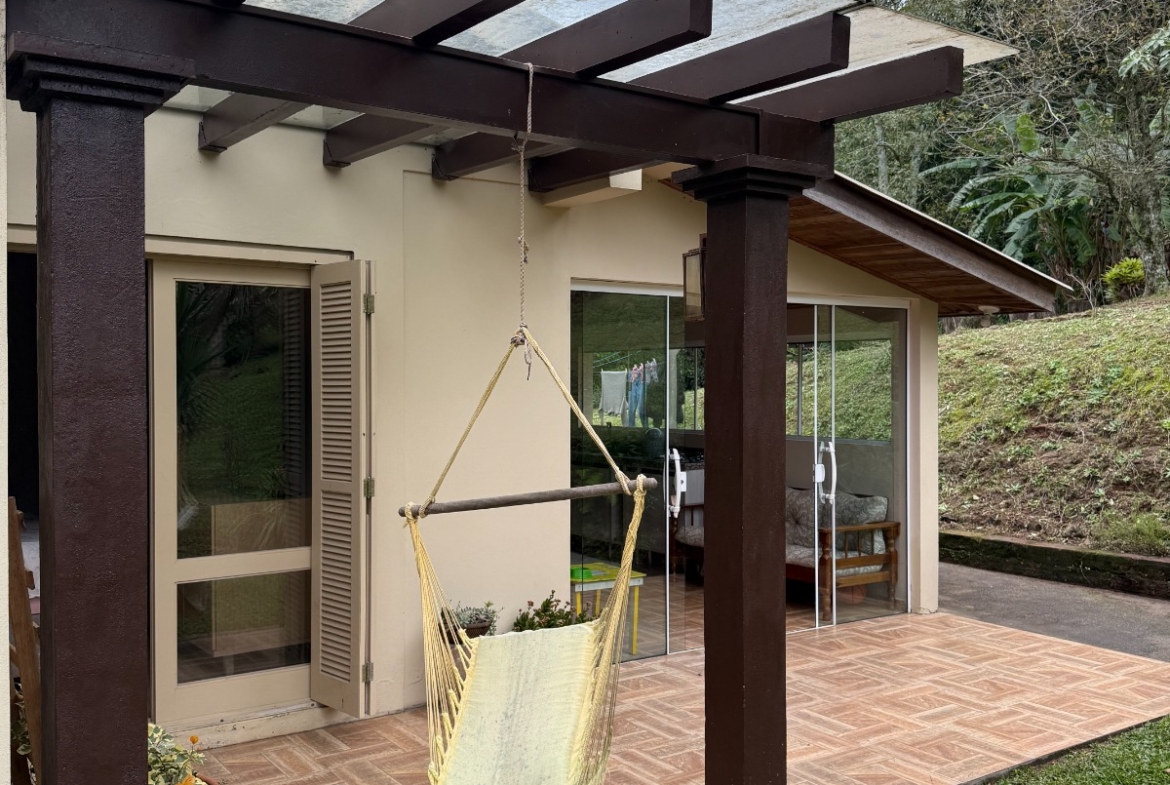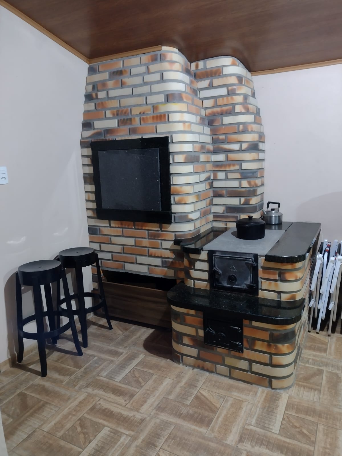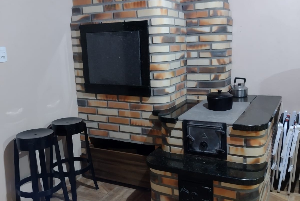 Ela tem 3 quartos, sendo um suíte. E o principal diferencial dela é um espaço gourmet com churrasqueira e forno à lenha integrado com o pátio.