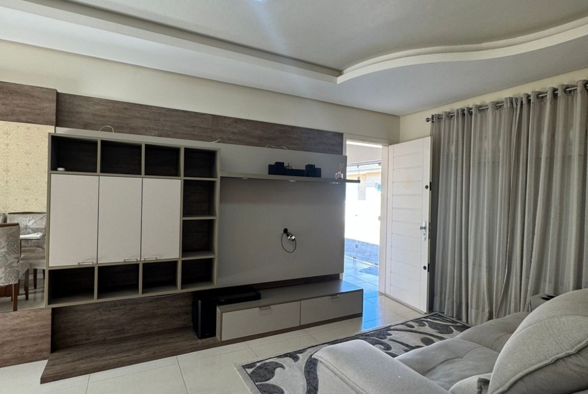 Casa semi mobiliada, com móveis sob medida em todos cômodos; São 02 dormitórios, sala/cozinha, área de serviço, banheiro e garagem com churrasqueira.