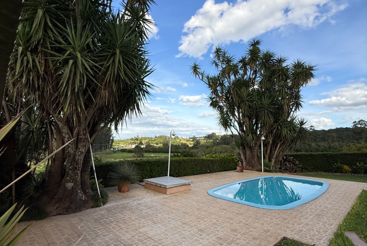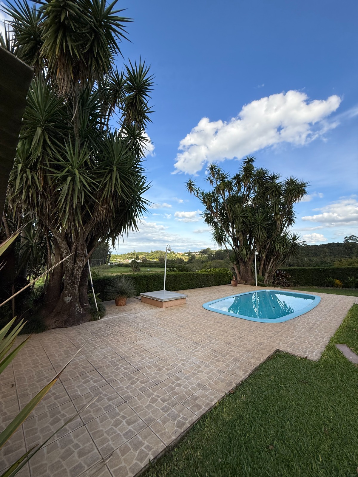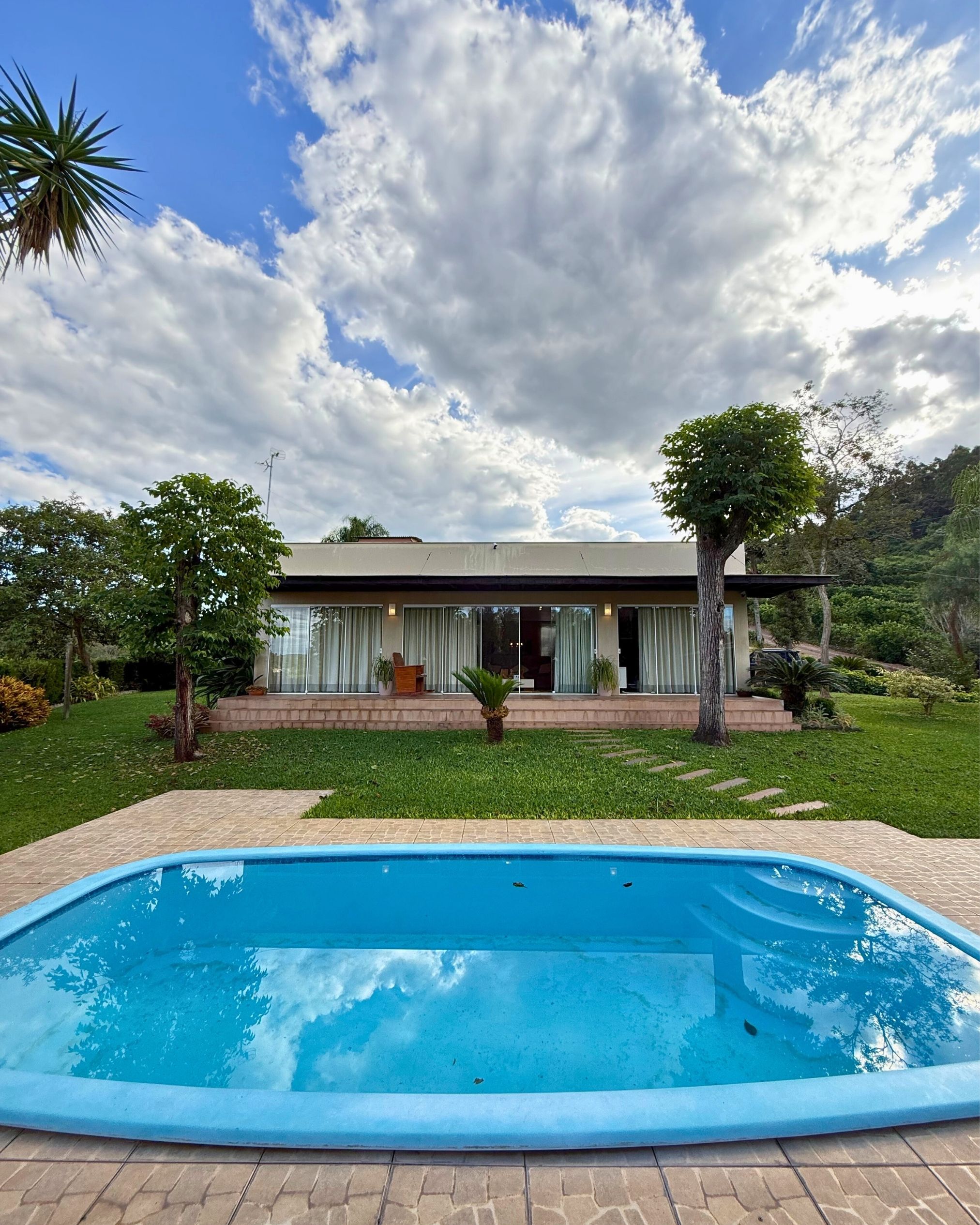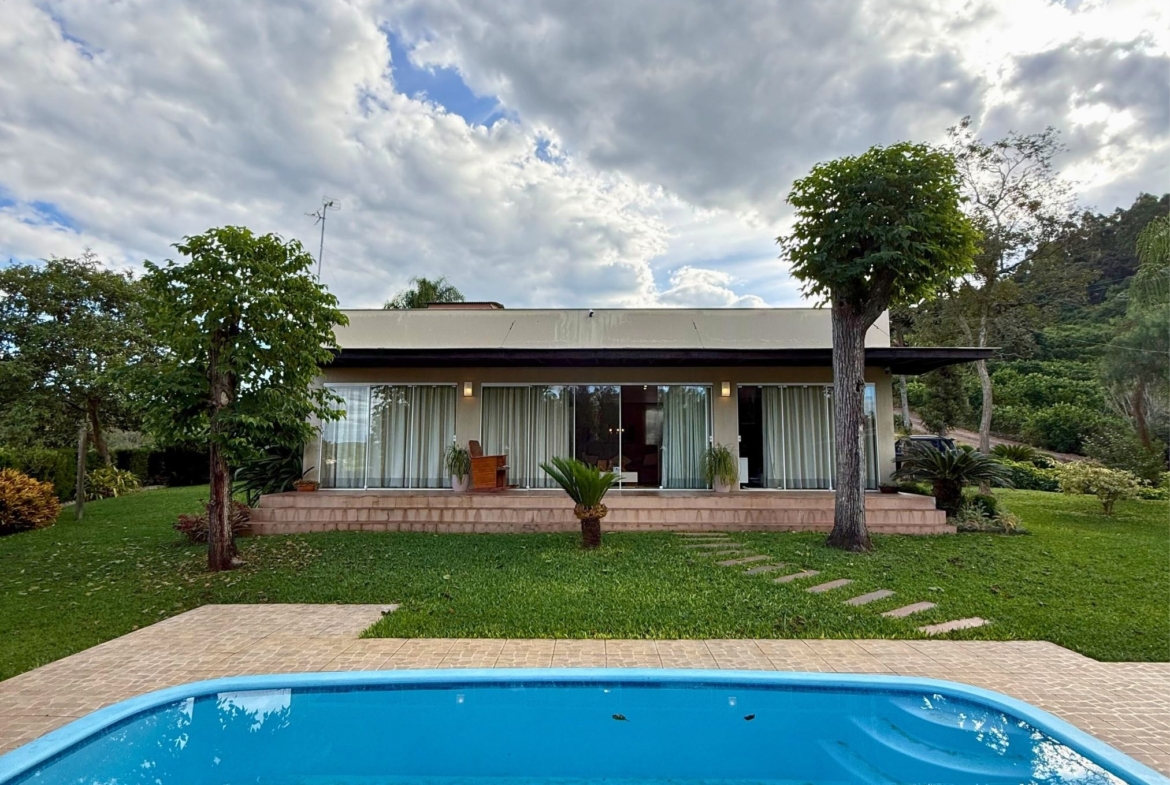 Uma casa moderna, mobiliada, com piscina aquecida, quiosque e uma área de terra de 22.123,00m² com árvores frutíferas, açudes e muita natureza.
