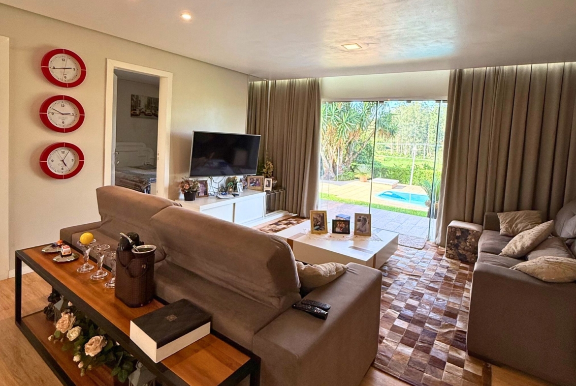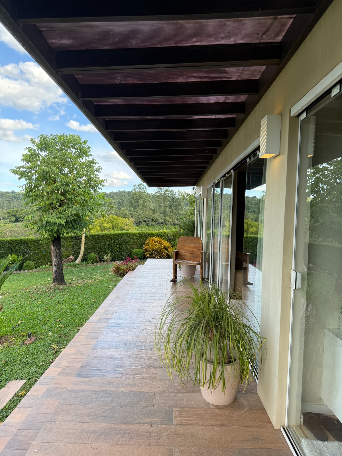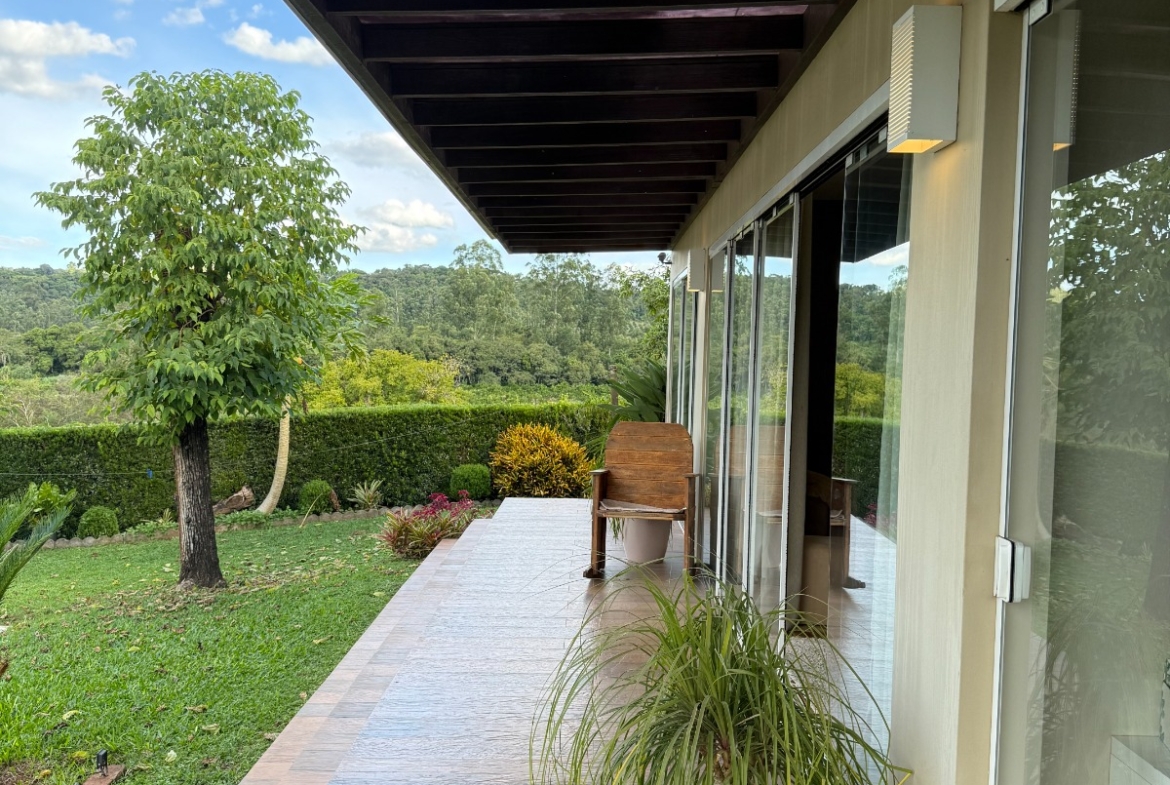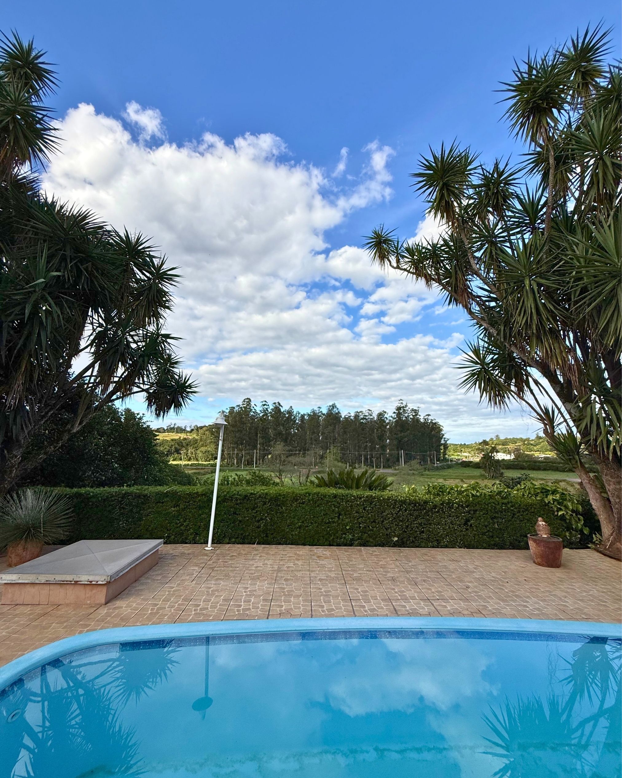 Uma casa moderna, mobiliada, com piscina aquecida, quiosque e uma área de terra de 22.123,00m² com árvores frutíferas, açudes e muita natureza.