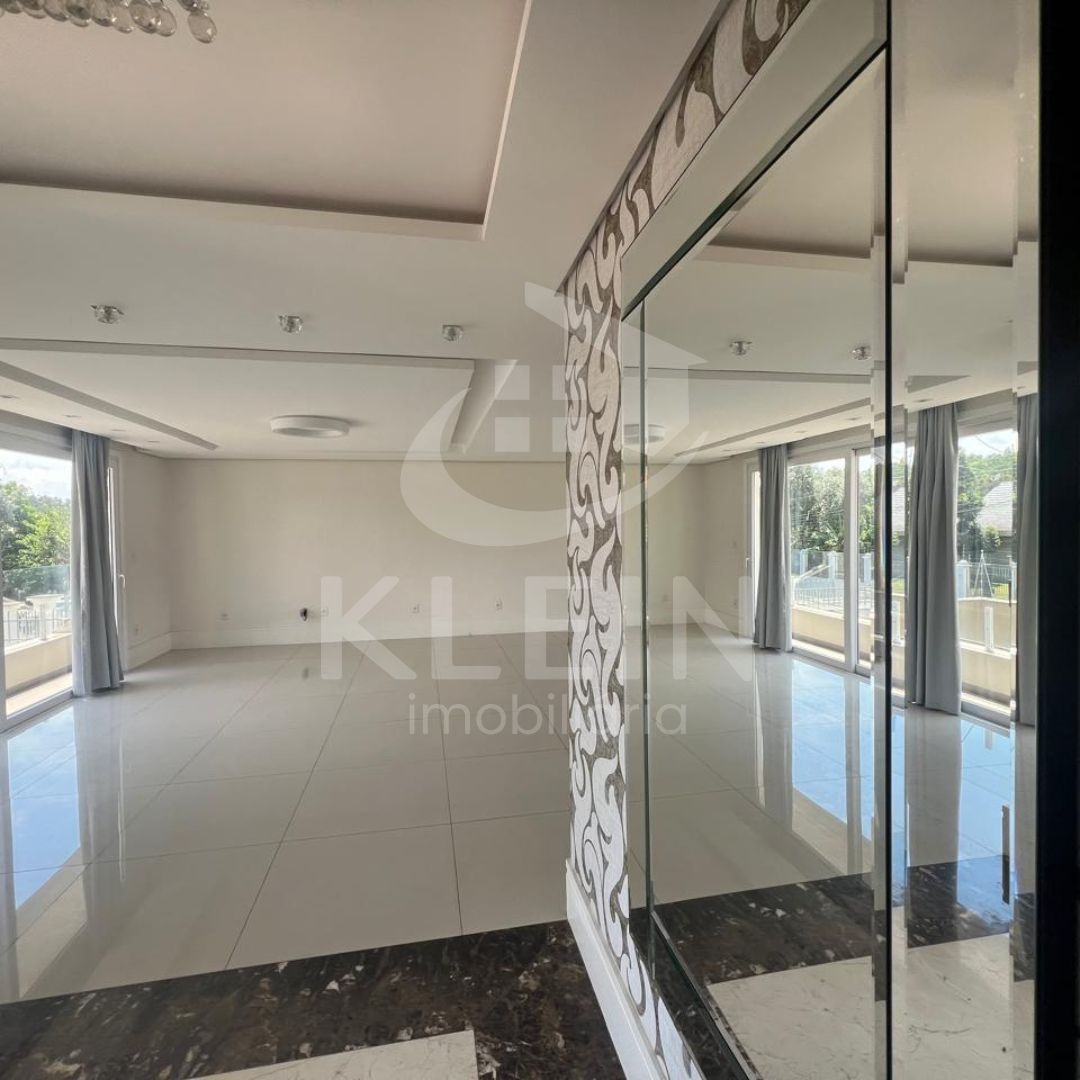 Andar principal com escritório, lavabo, sala de estar, sala de jantar, cozinha;