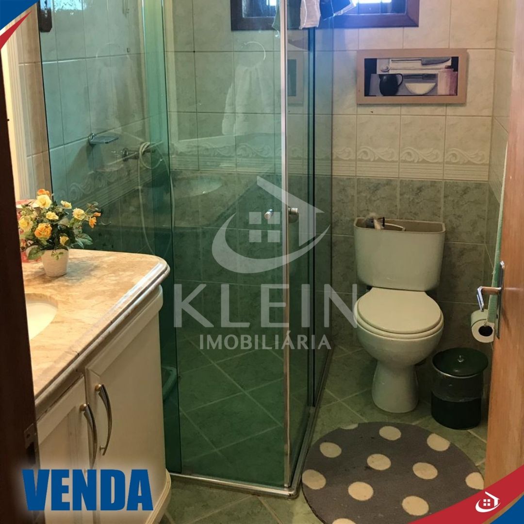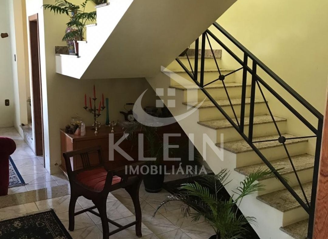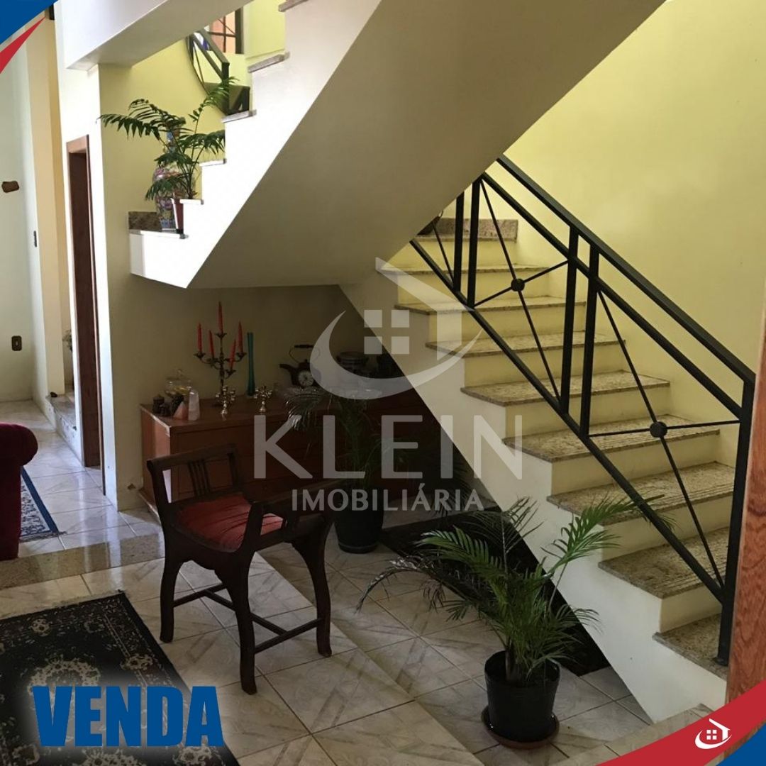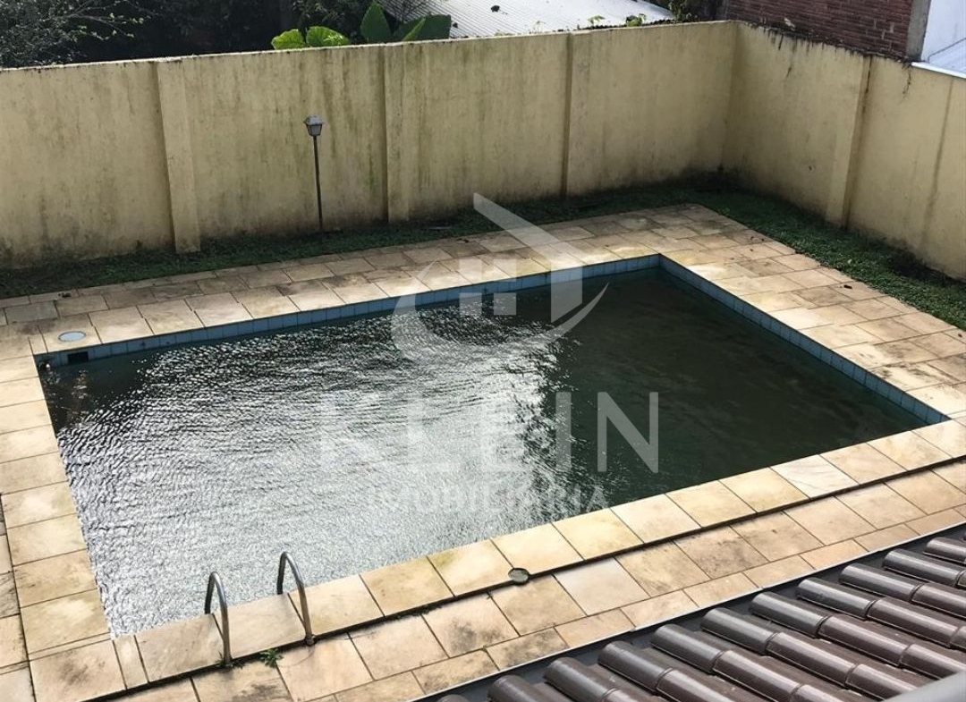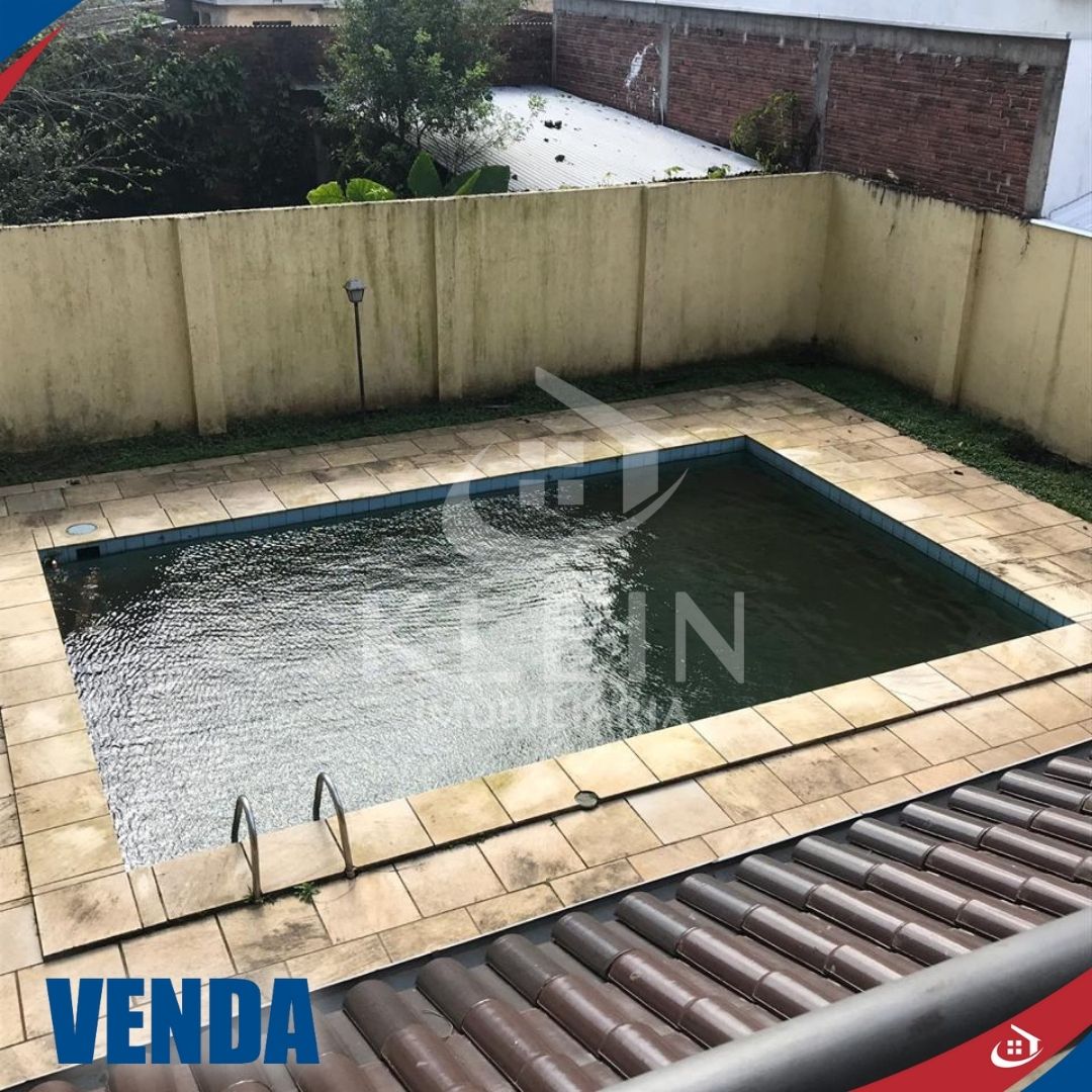 Casa com 4 dormitórios, sendo 1 suite, banheiro social no andar superior, banheiro social no andar térreo, sala, cozinha, lavanderia, garagem e piscina.