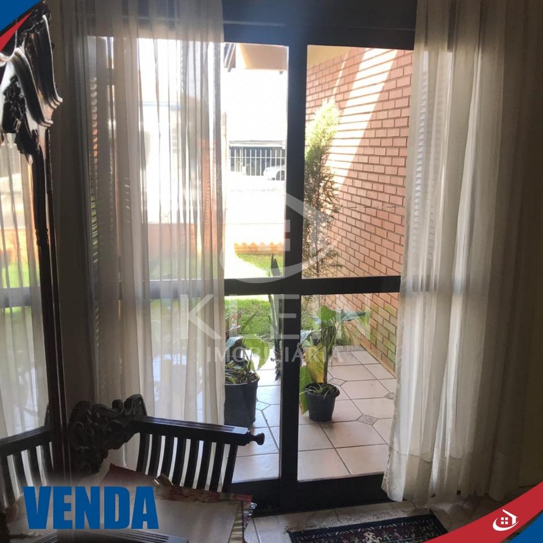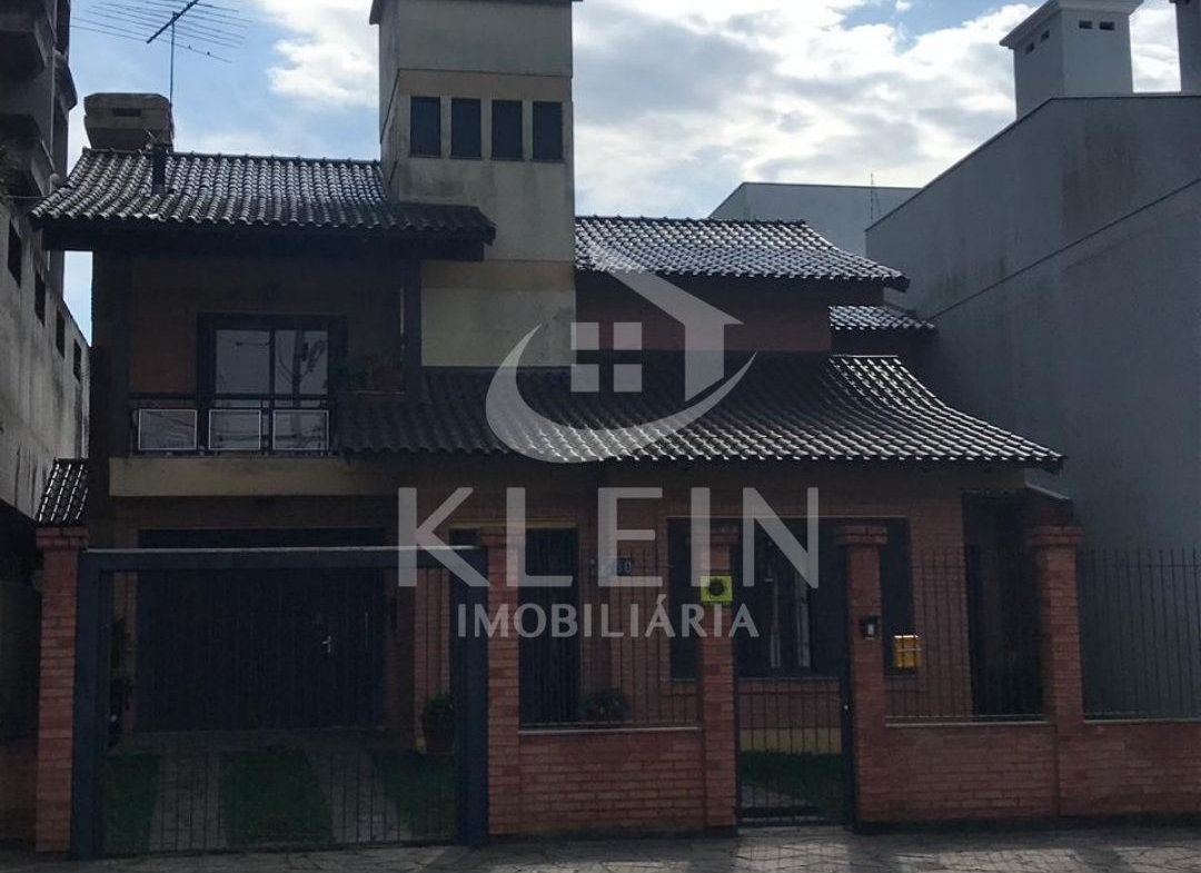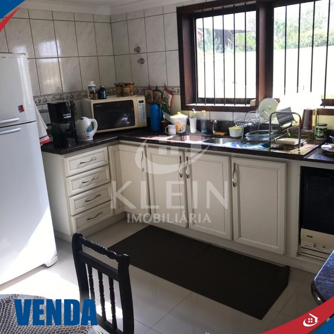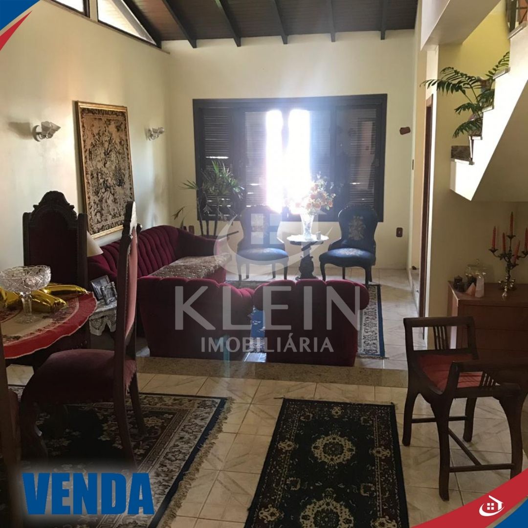 Casa com 4 dormitórios, sendo 1 suite, banheiro social no andar superior, banheiro social no andar térreo, sala, cozinha, lavanderia, garagem e piscina.