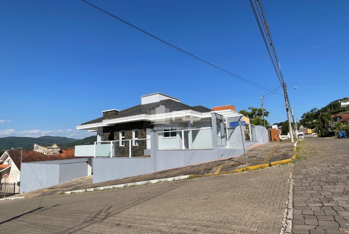 Uma residência nova, moderna e de alto padrão, localizada em uma esquina do Loteamento Colina, no Bairro Matiel — um dos endereços mais valorizados e desejados da Feliz.