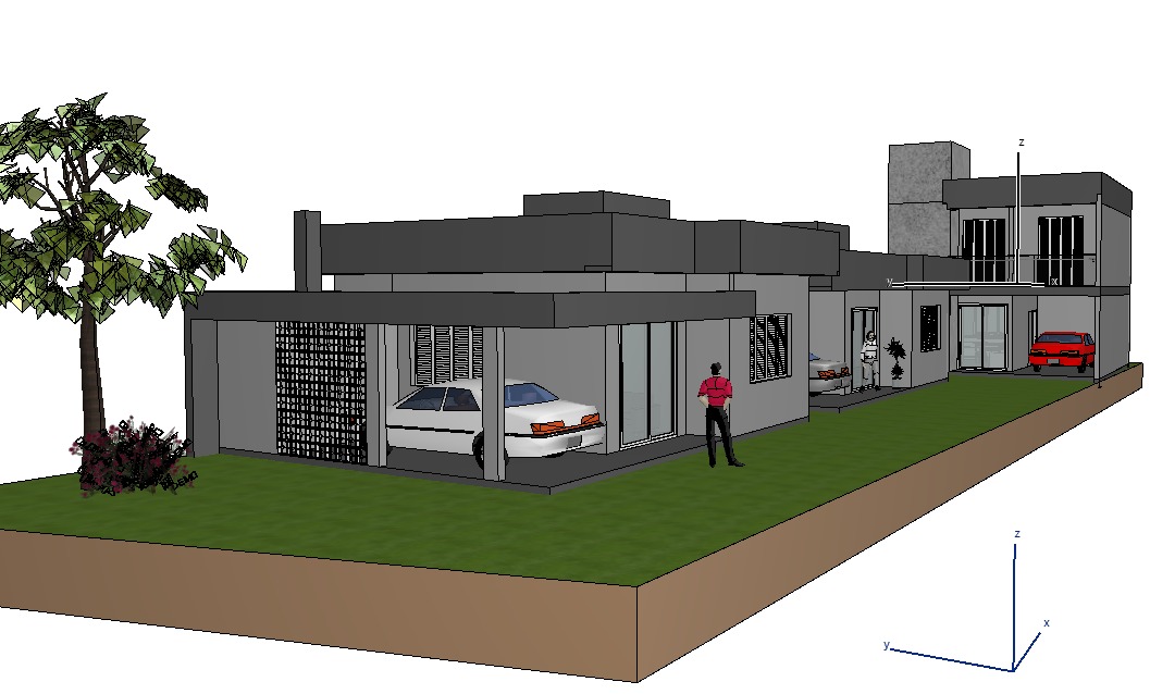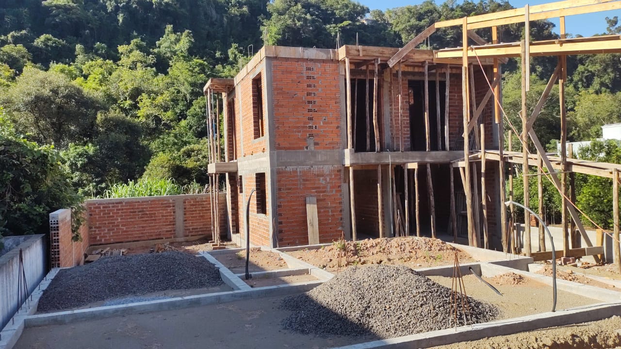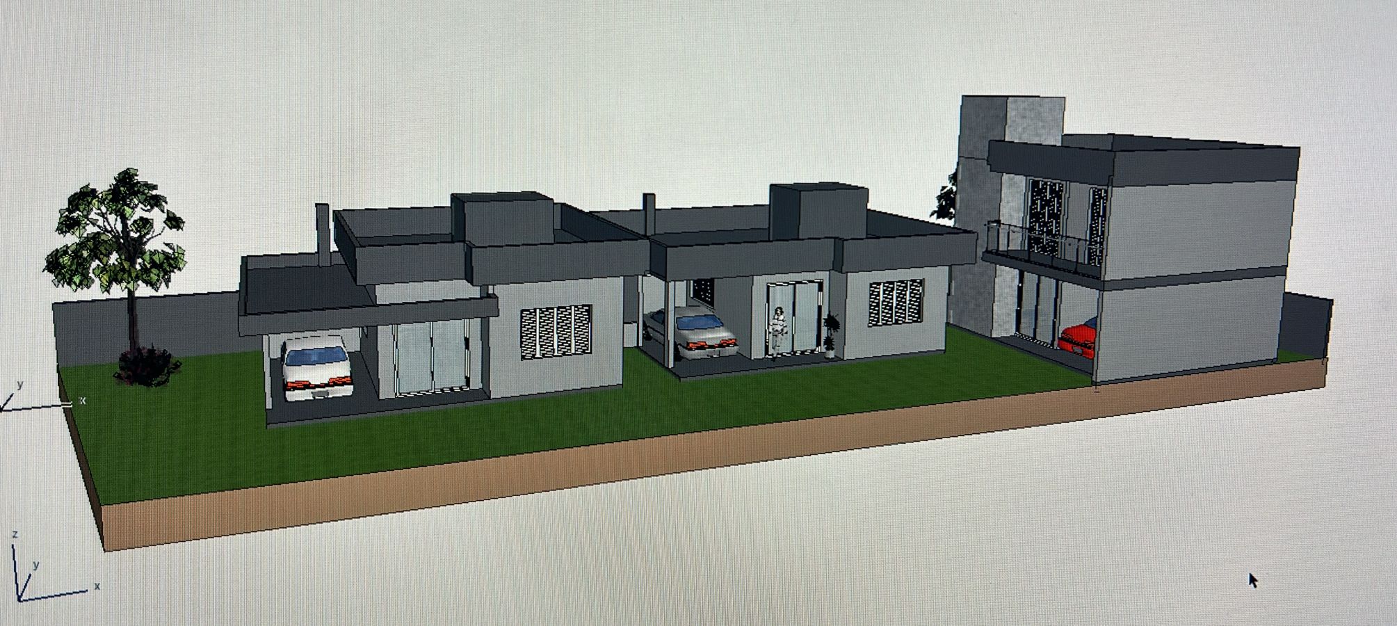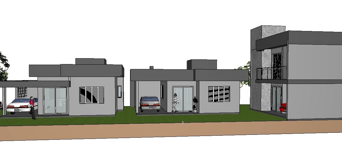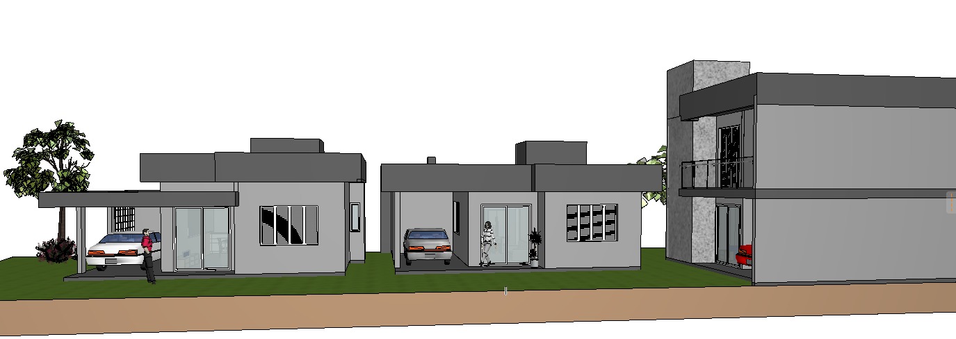 São ao total de 2 casas térreas com 75,74m2 de área construída e 1 sobrado de 2 Pavimentos com 106,74m2(fase inicial de construção), em um terreno de meio.