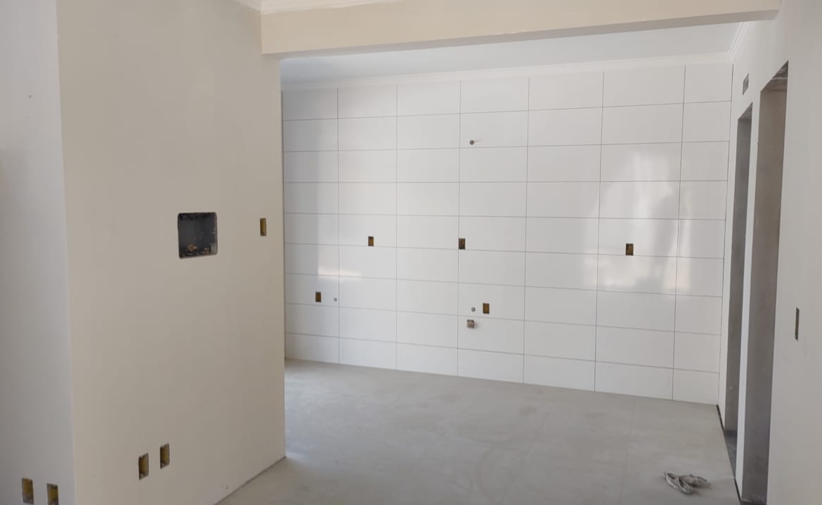 cada casa é composta de= 2 dormitórios, sala e cozinha integradas, um banheiro, área de serviço, churrasqueira, uma vaga de garagem coberta.