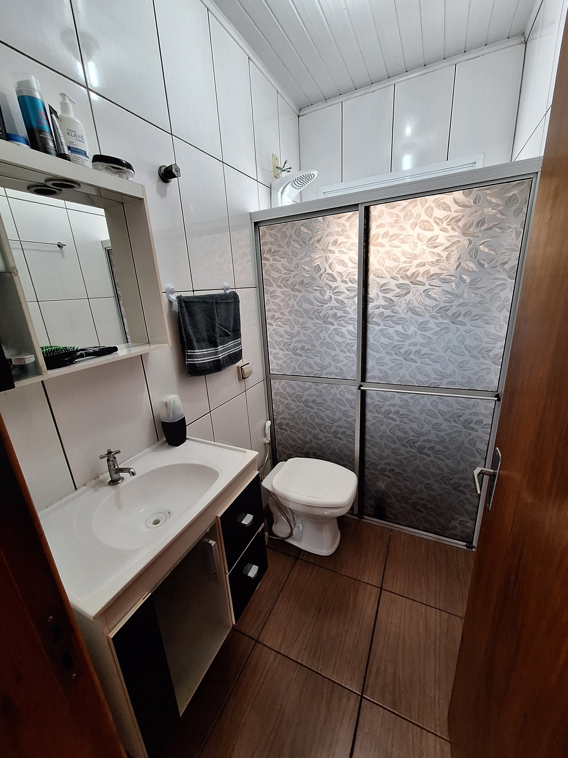 Casa sobre pilotese com sala, cozinha, 2 dormitórios, banheiro e varanda. Terreno com 12 x 30 = 360m2