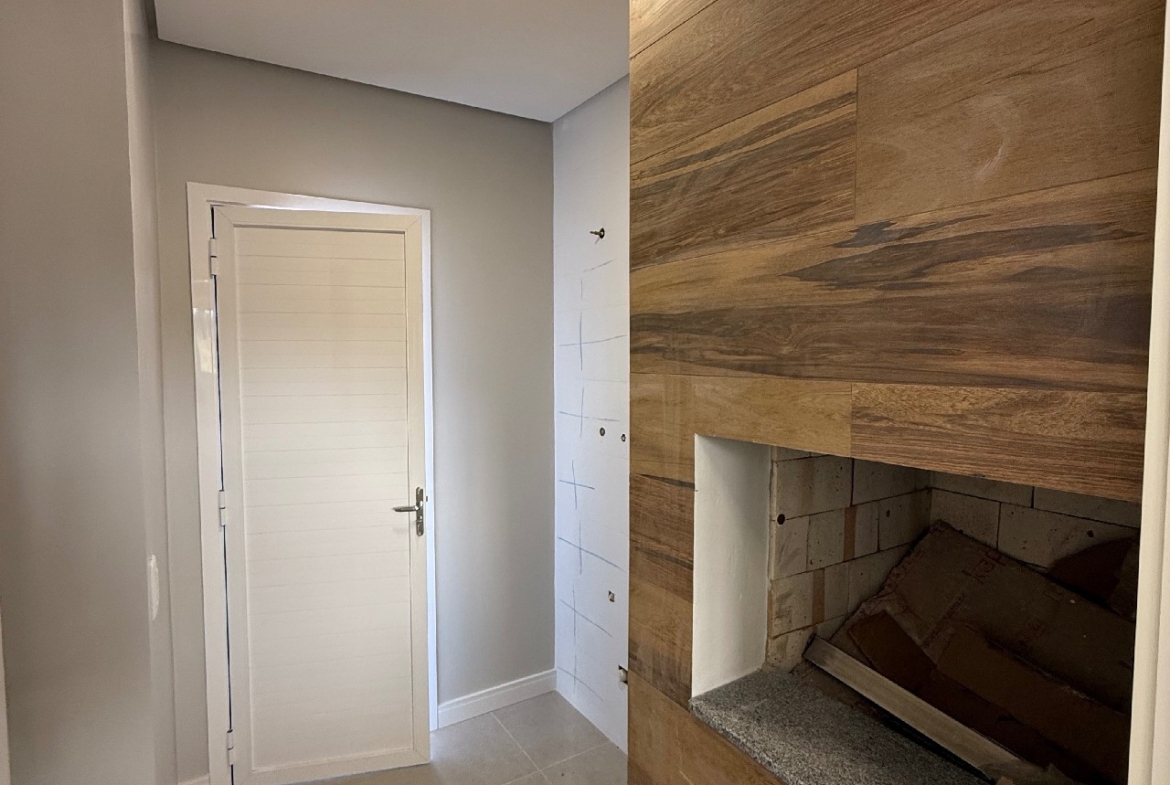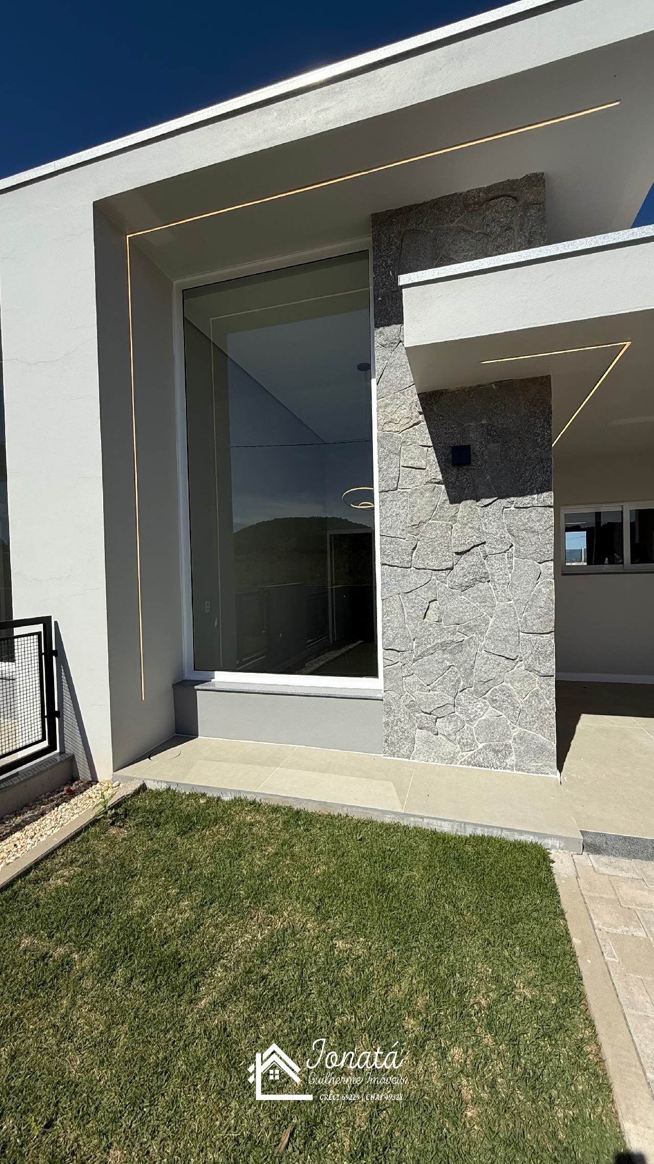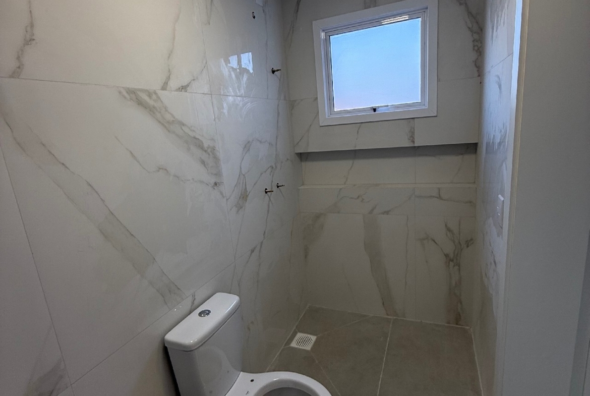 Estrutura fortificada com sapatas, gesso e calfinagem, piso em porcelanato, espera para água quente, sala com pé direito alto e churrasqueira. Grade e portões instalados.