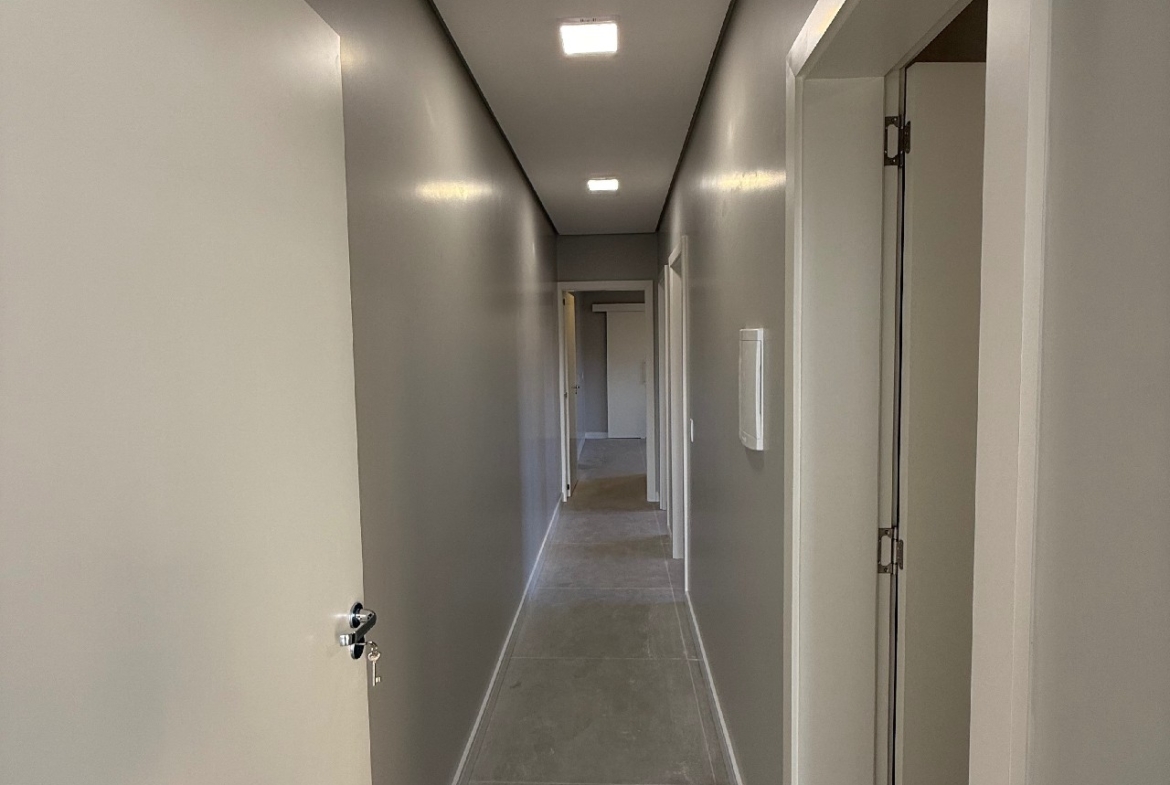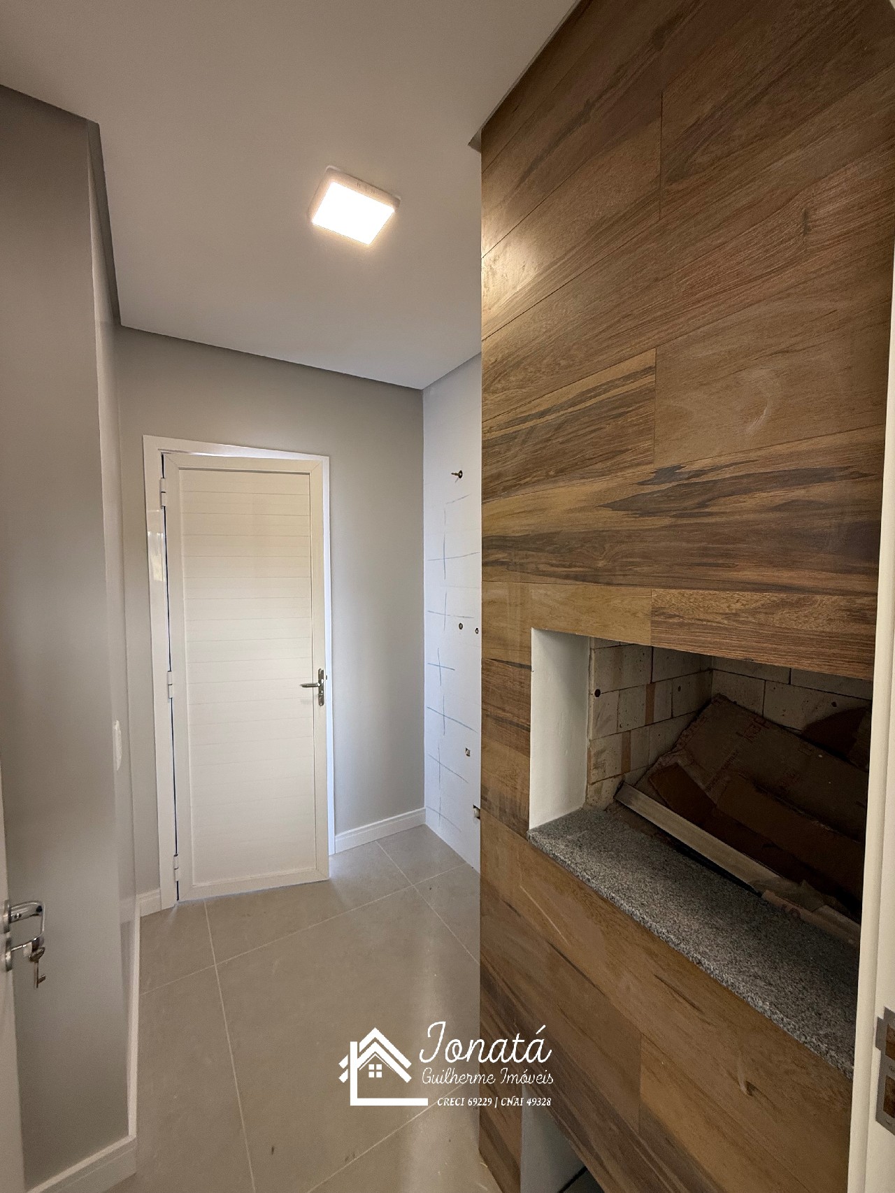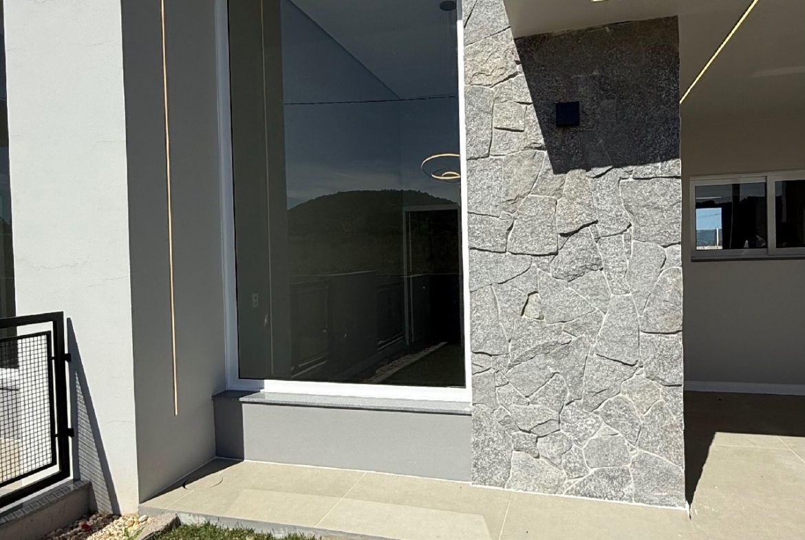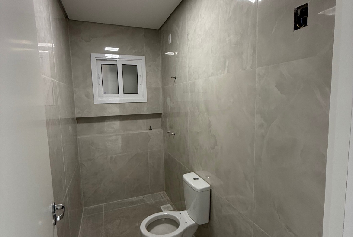 Estrutura fortificada com sapatas, gesso e calfinagem, piso em porcelanato, espera para água quente, sala com pé direito alto e churrasqueira. Grade e portões instalados.