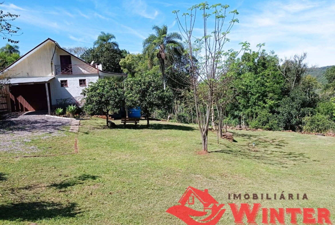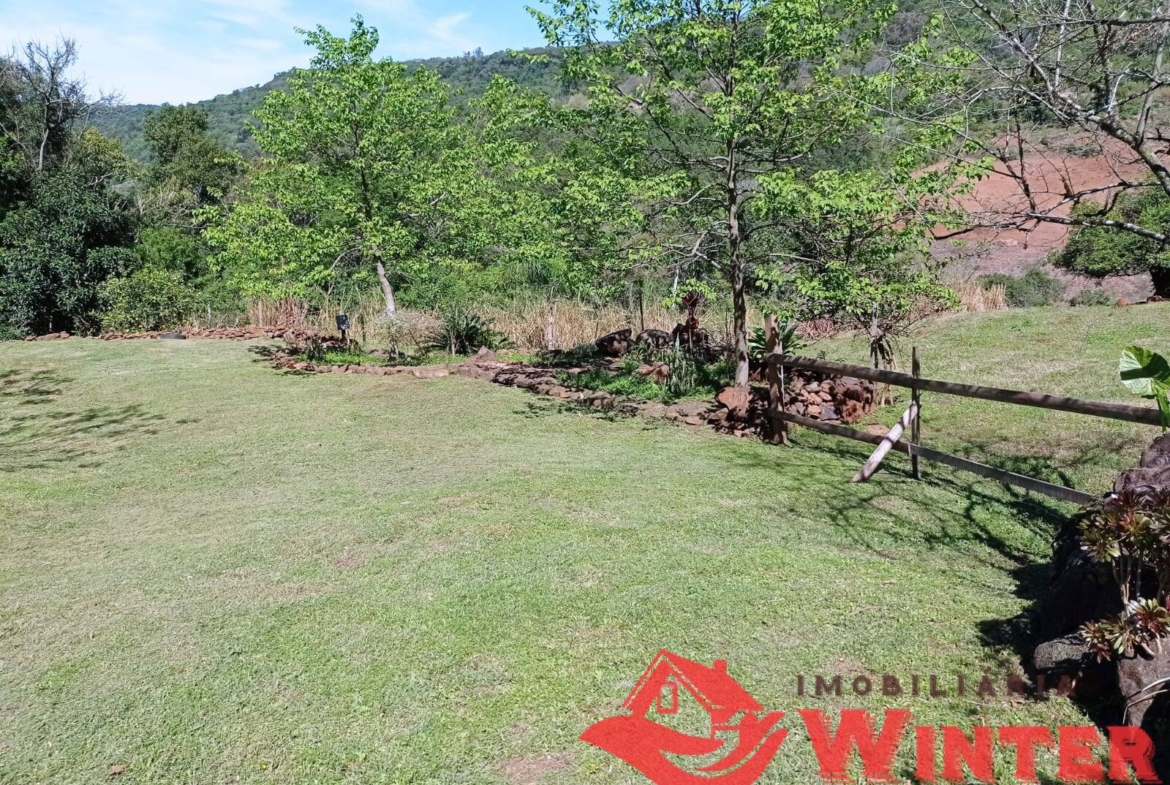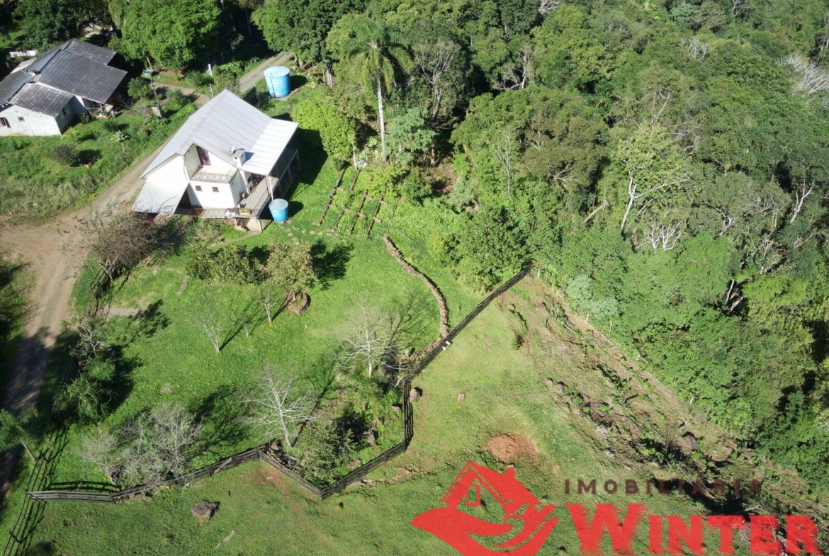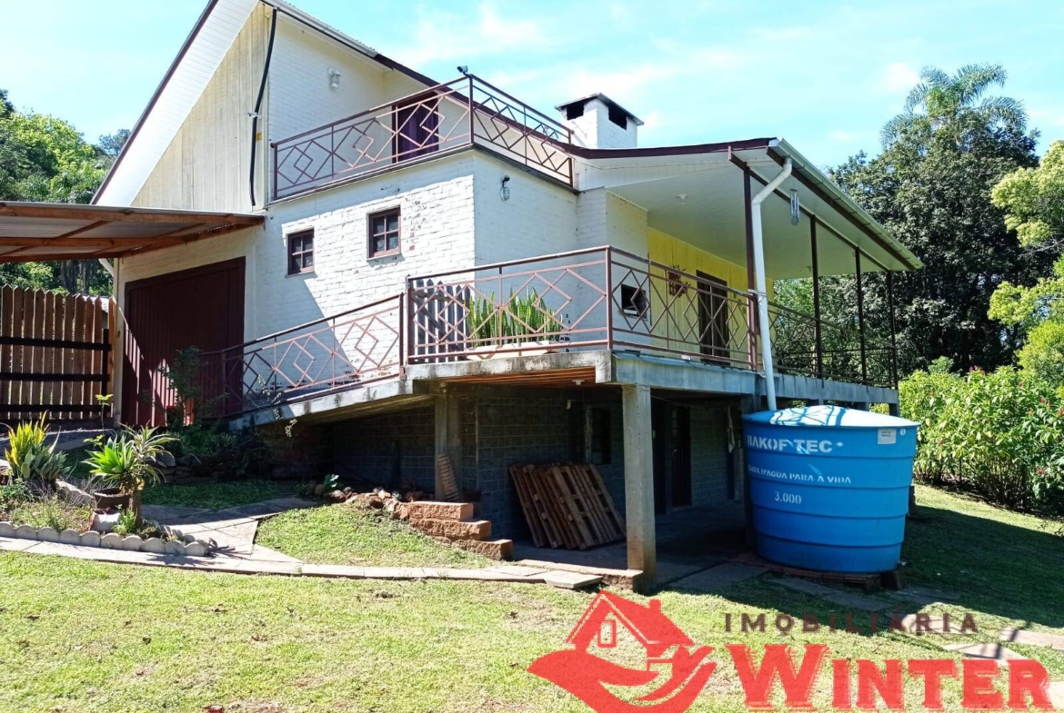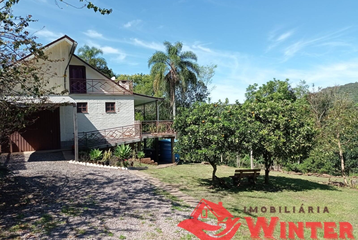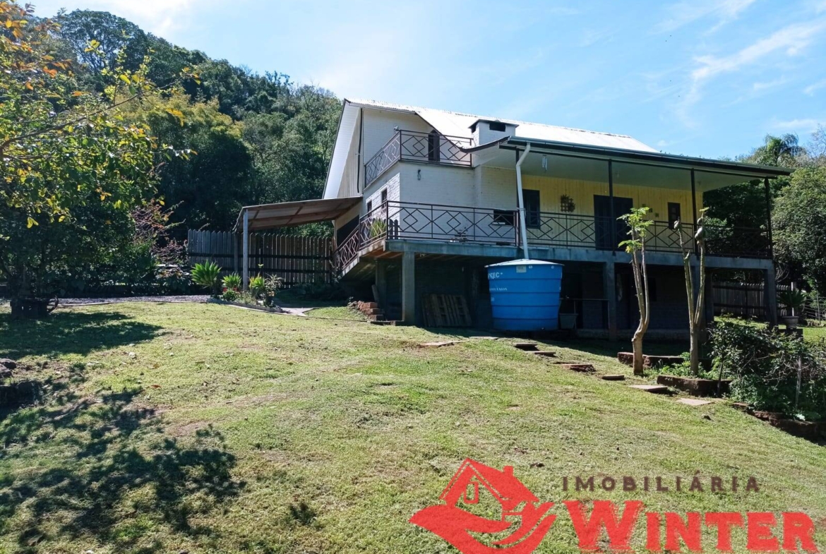 Casa mista com cerca de 170m², distribuídos entre sala/cozinha com fogão campeiro, 2 quartos com possibilidade de mais 1 dormitórios ou sala no andar superior, área de serviço, ampla varanda com churrasqueira e linda vista, banheiro, porão (para guardar utensílios, ferramentas, lenha,fazer adega, etc), garagem fechada e coberta para 1 carro.