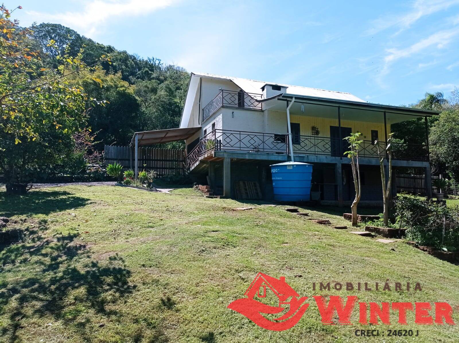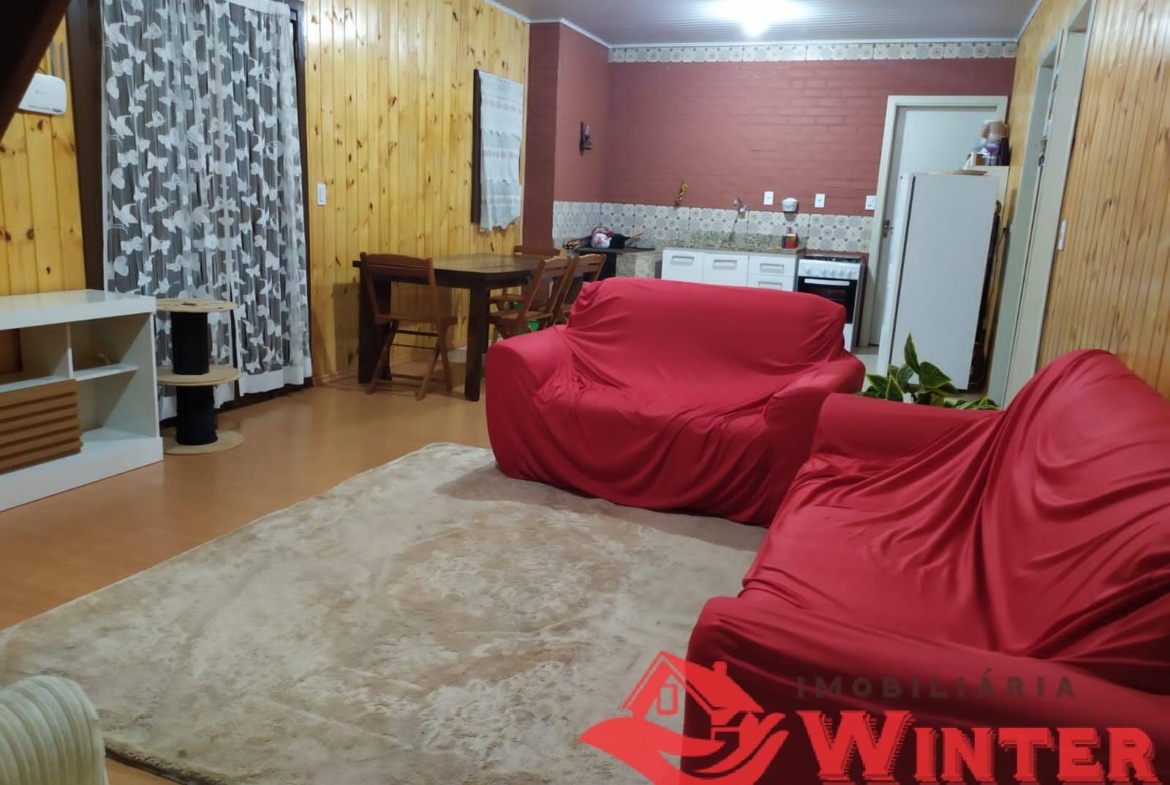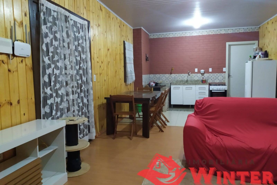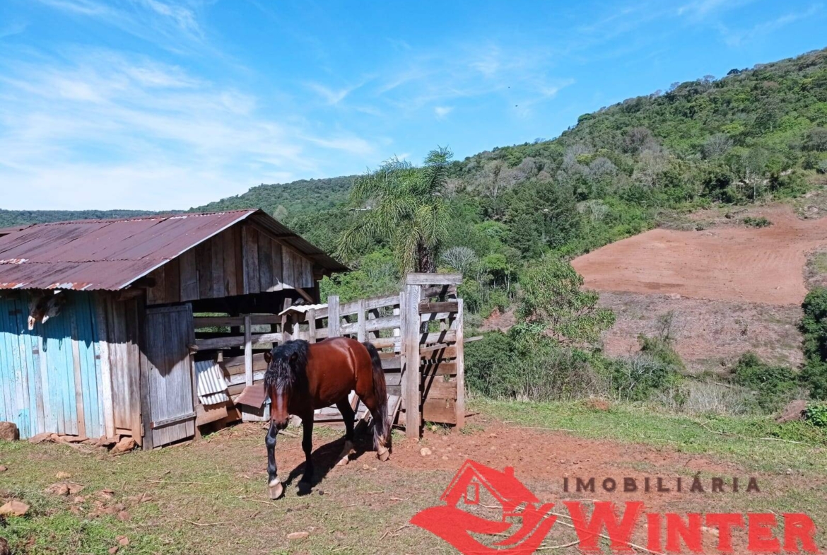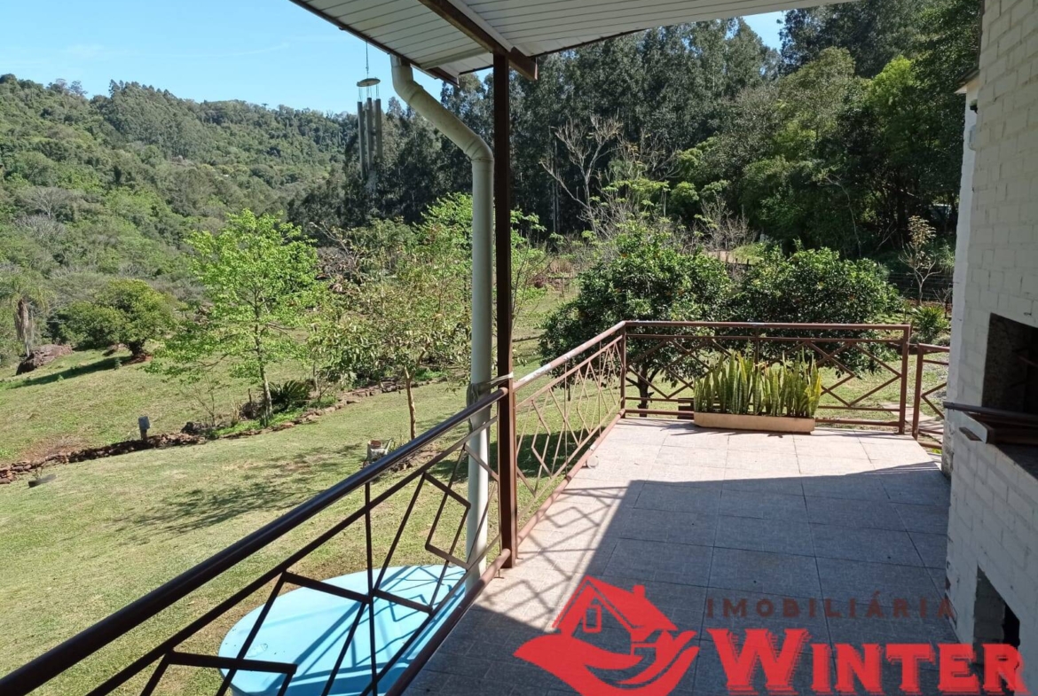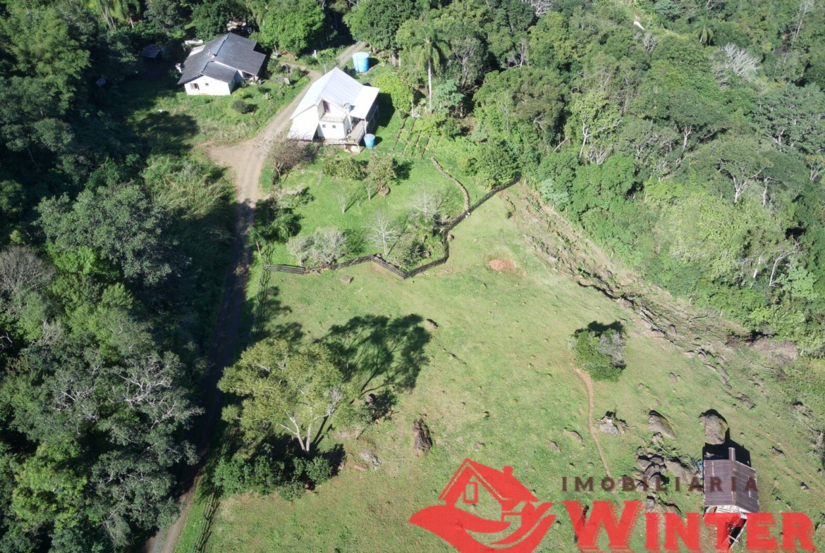 Casa mista com cerca de 170m², distribuídos entre sala/cozinha com fogão campeiro, 2 quartos com possibilidade de mais 1 dormitórios ou sala no andar superior, área de serviço, ampla varanda com churrasqueira e linda vista, banheiro, porão (para guardar utensílios, ferramentas, lenha,fazer adega, etc), garagem fechada e coberta para 1 carro.