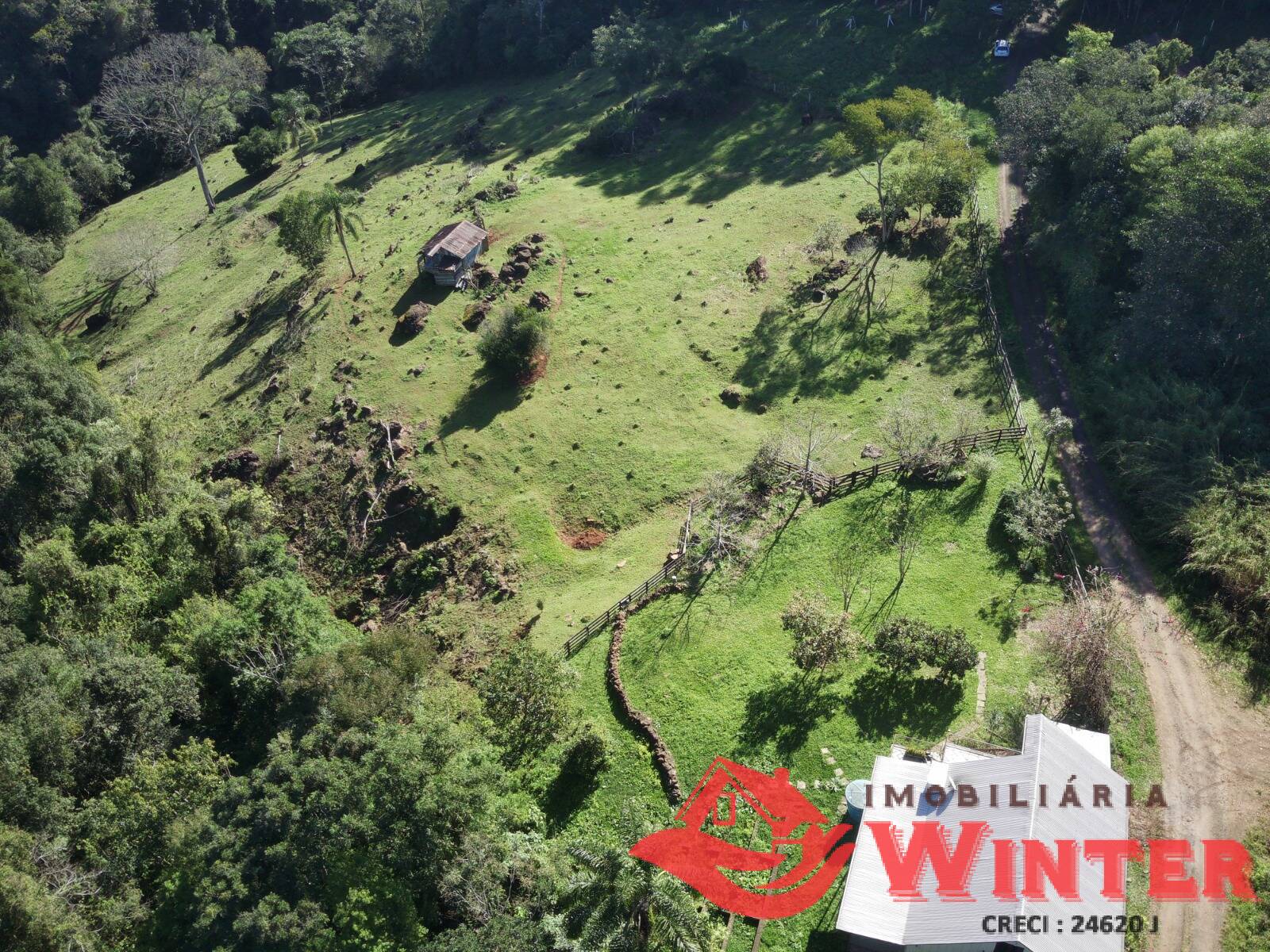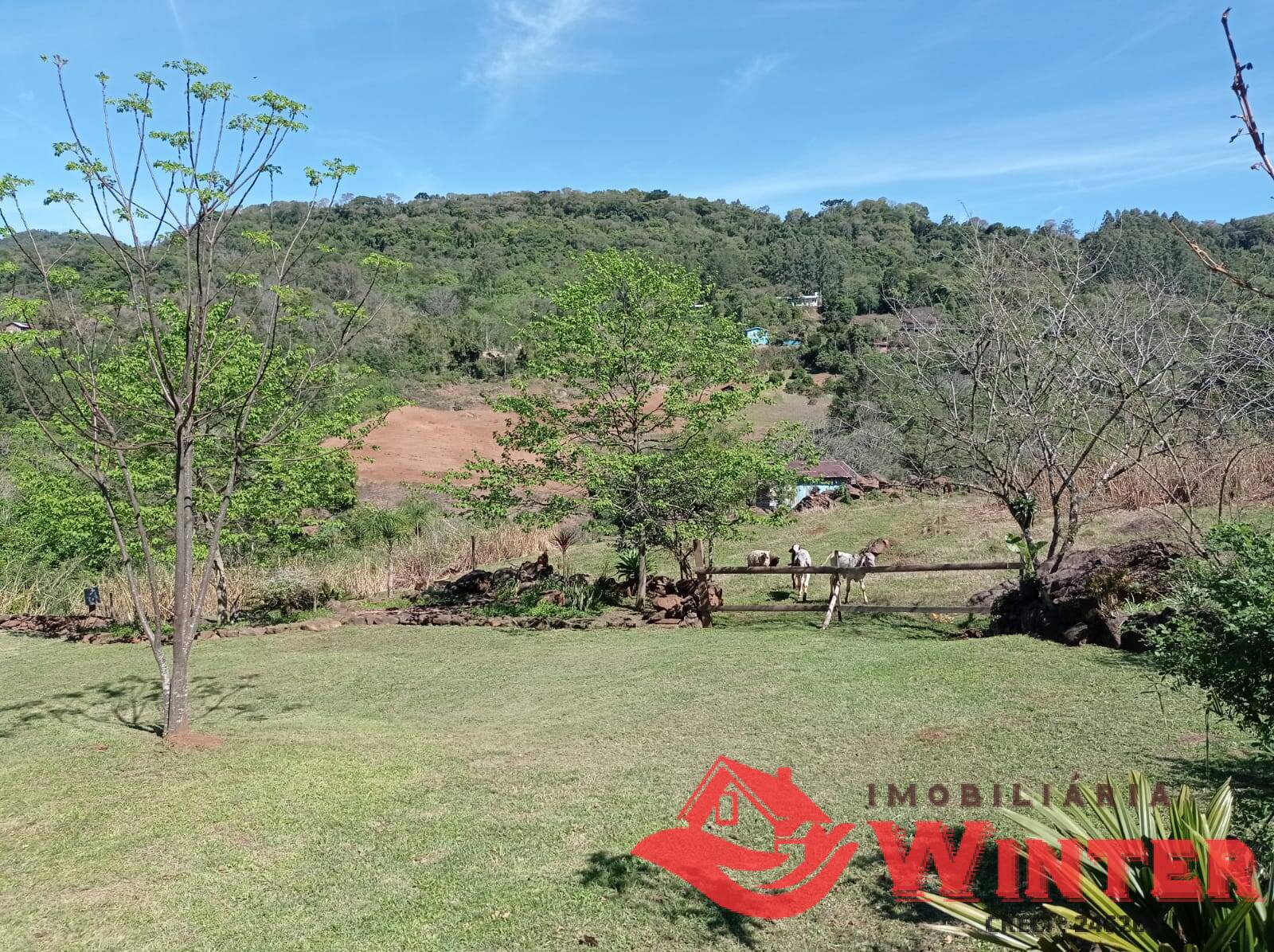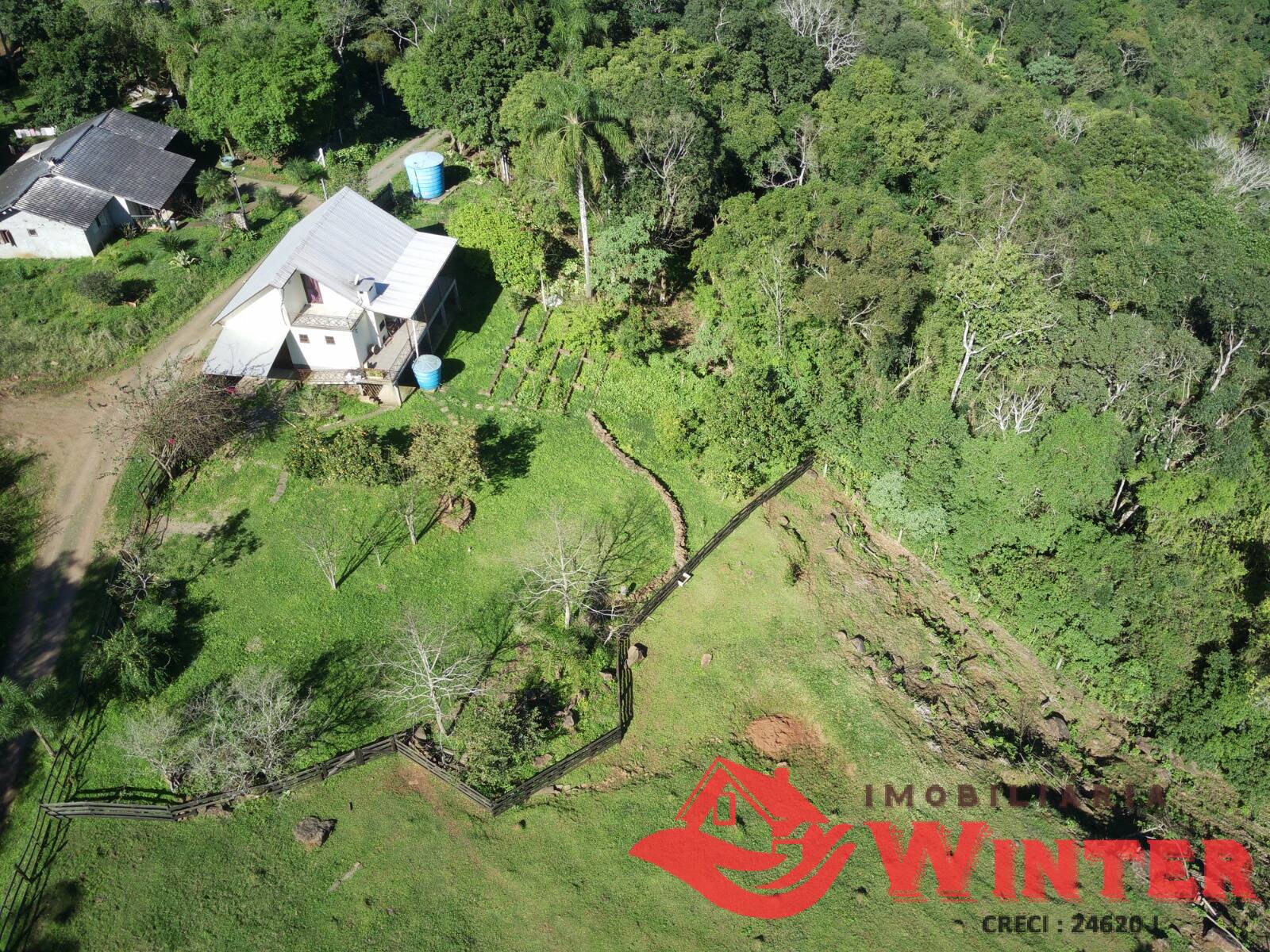 Linda propriedade toda cercada em meio a natureza.