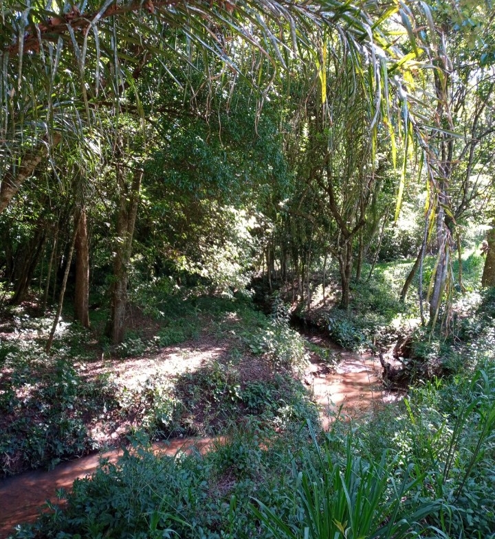 Diversas árvores frutíferas, riacho, fonte de água mineral, com pH 7,00 e poço artesiano.